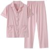 Verano Nuevo Pantalón de Manga Corta Cárdigan Holgado Talla Grande Algodón Puro Pull-Up Pijama para Mujer Ropa de Casa Cómodo Traje de Algodón