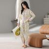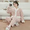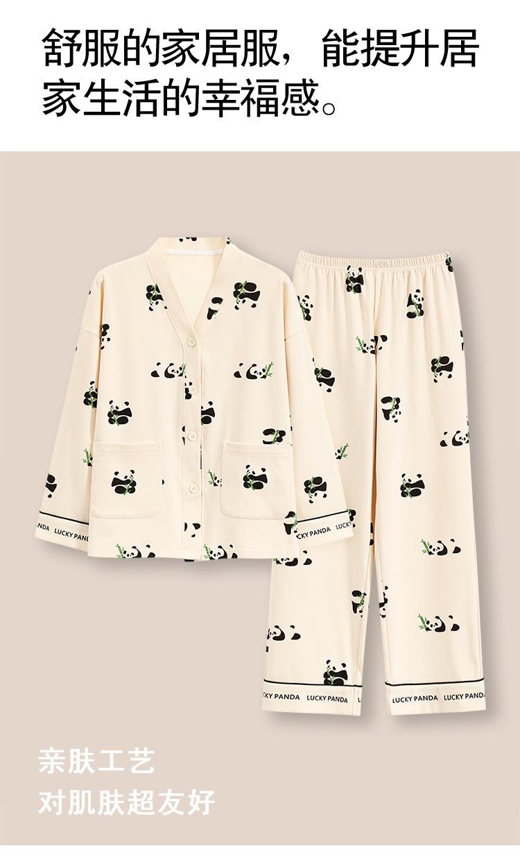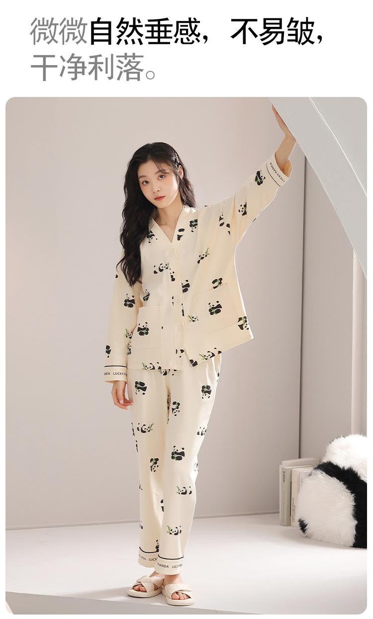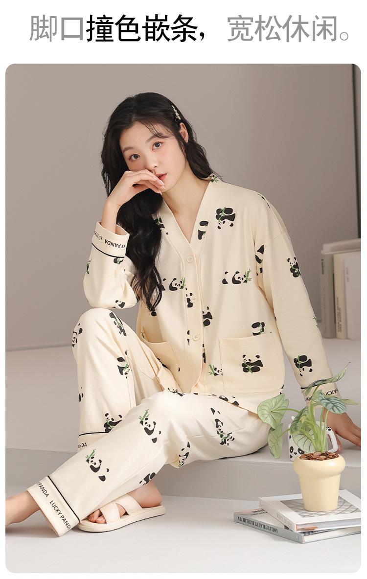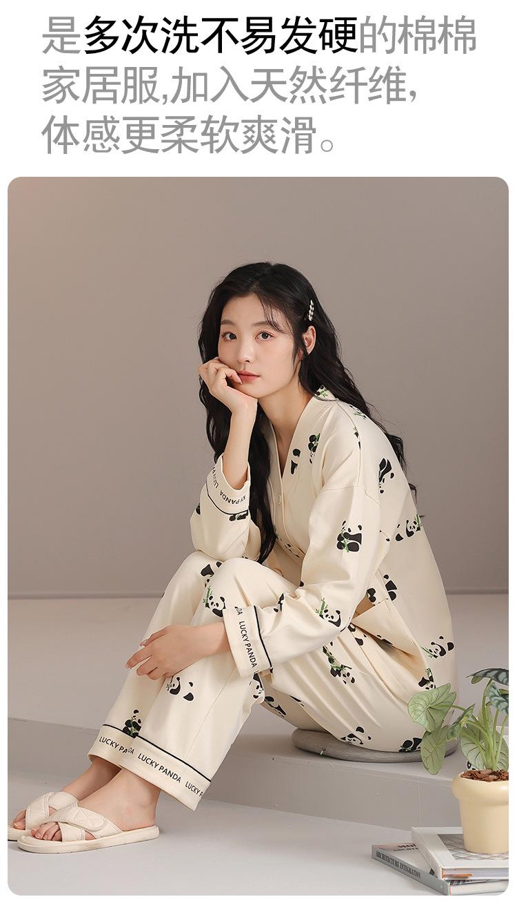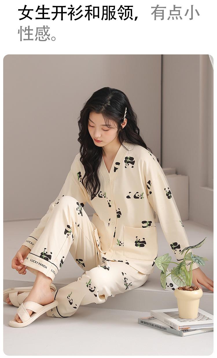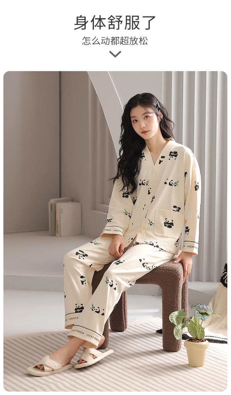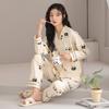 Pijamas Nuevos de Primavera y Otoño para Mujer Antibacterianos Algodón Puro Kimono Cuello en V Manga Larga Otoño e Invierno Dulce Conjunto de Ropa de Casa de Dibujos Animados