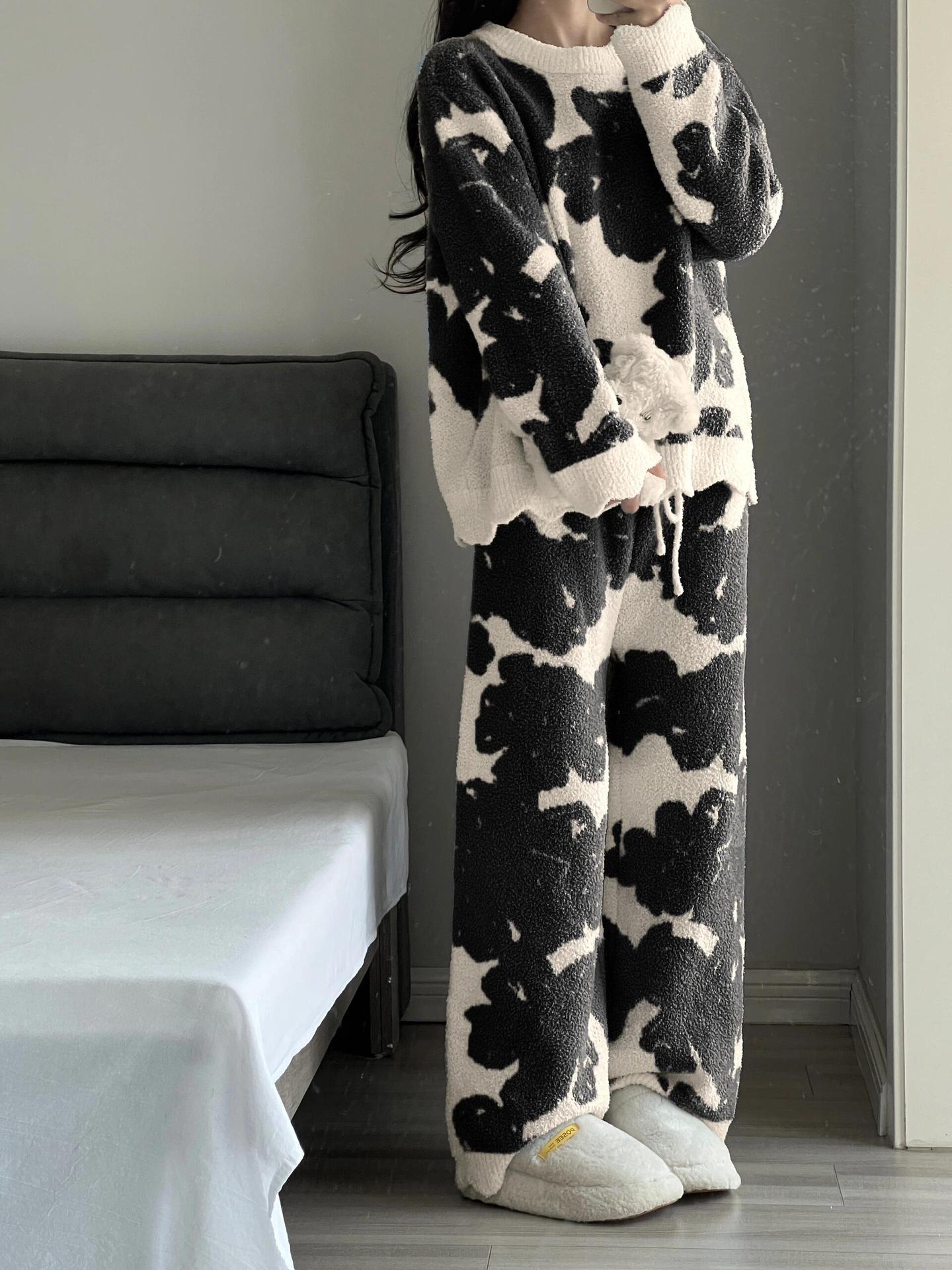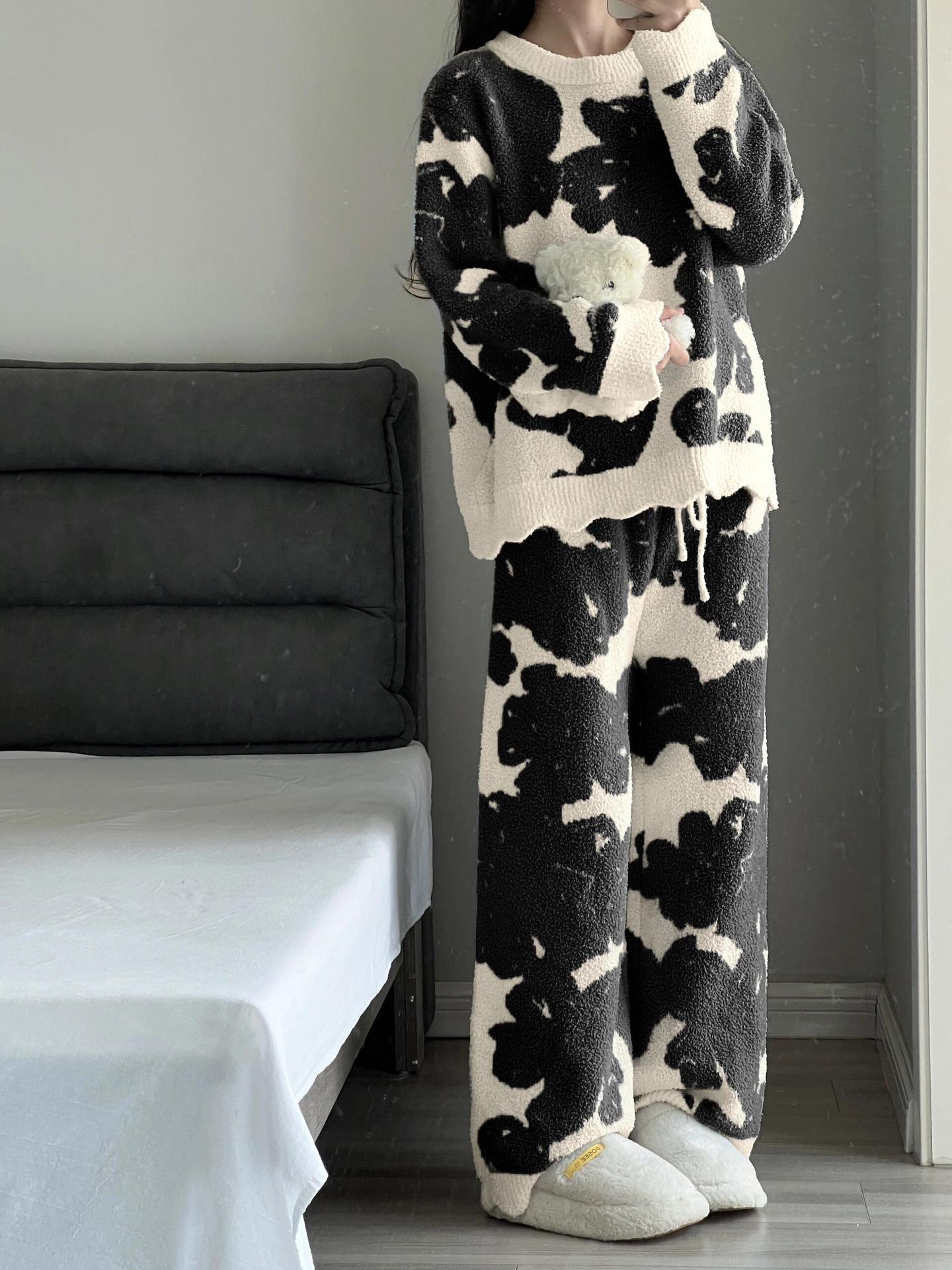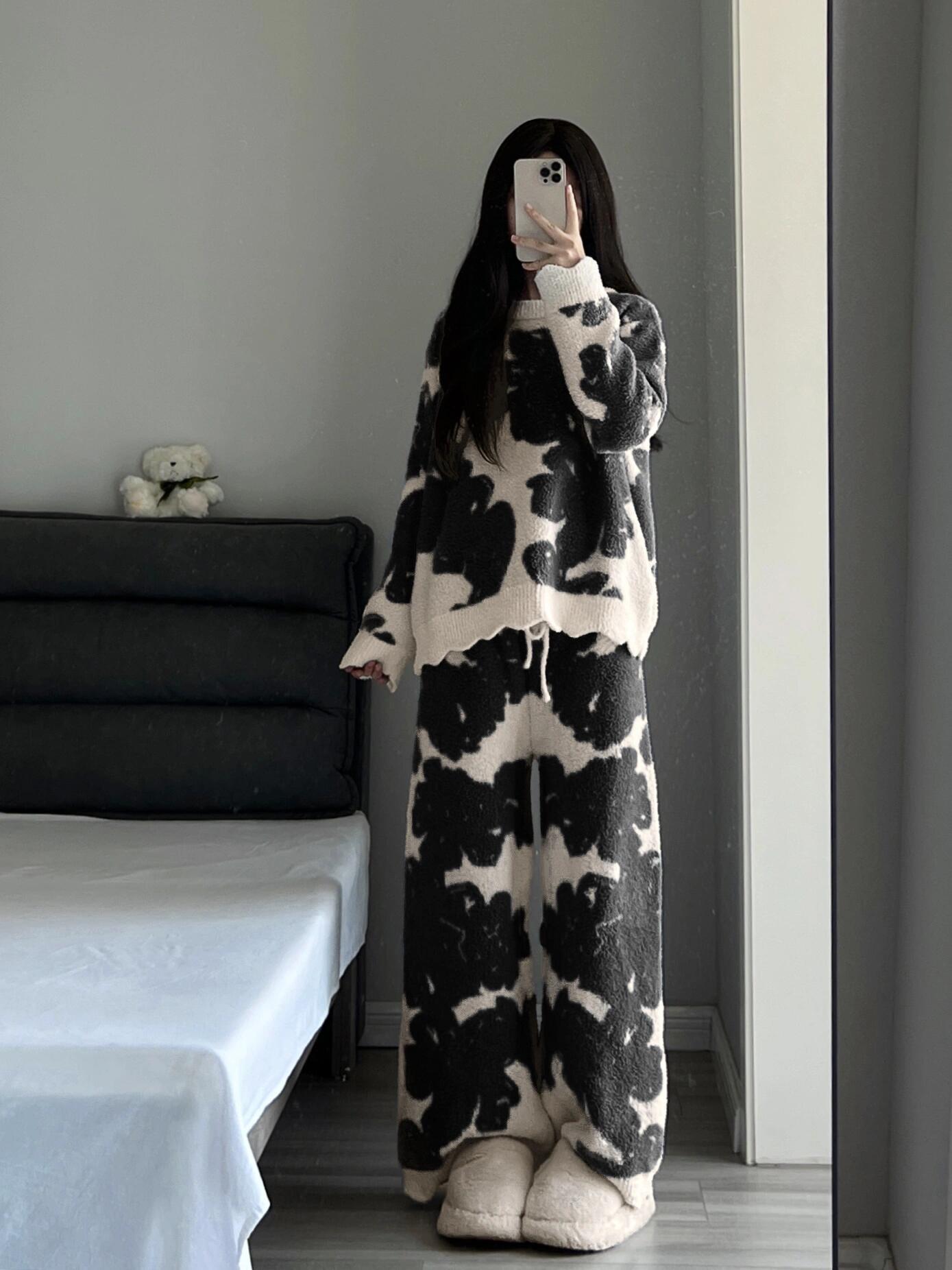 Pijama de terciopelo medio de diseño coreano de alta gama para mujer, otoño/invierno, talla grande, forro polar, grueso, cálido, de punto, para el hogar.