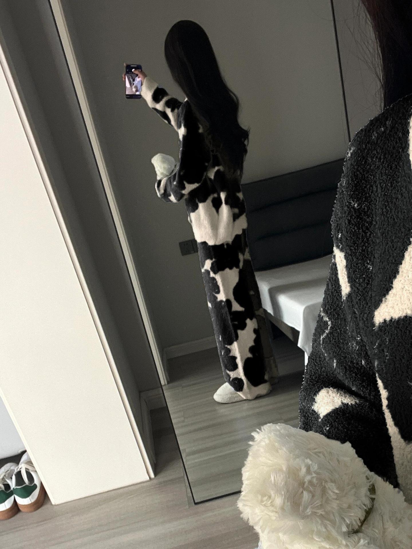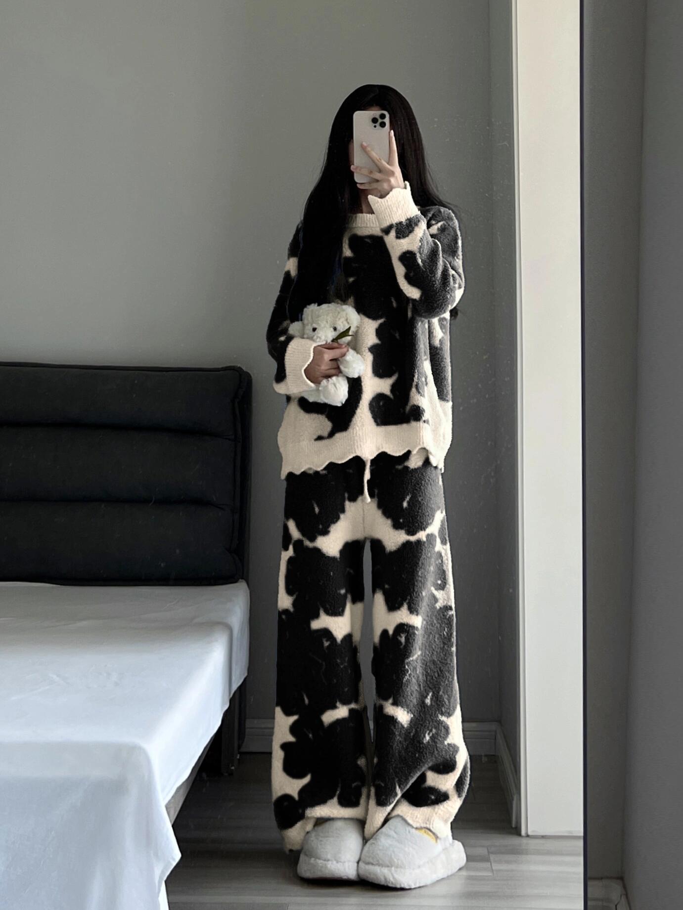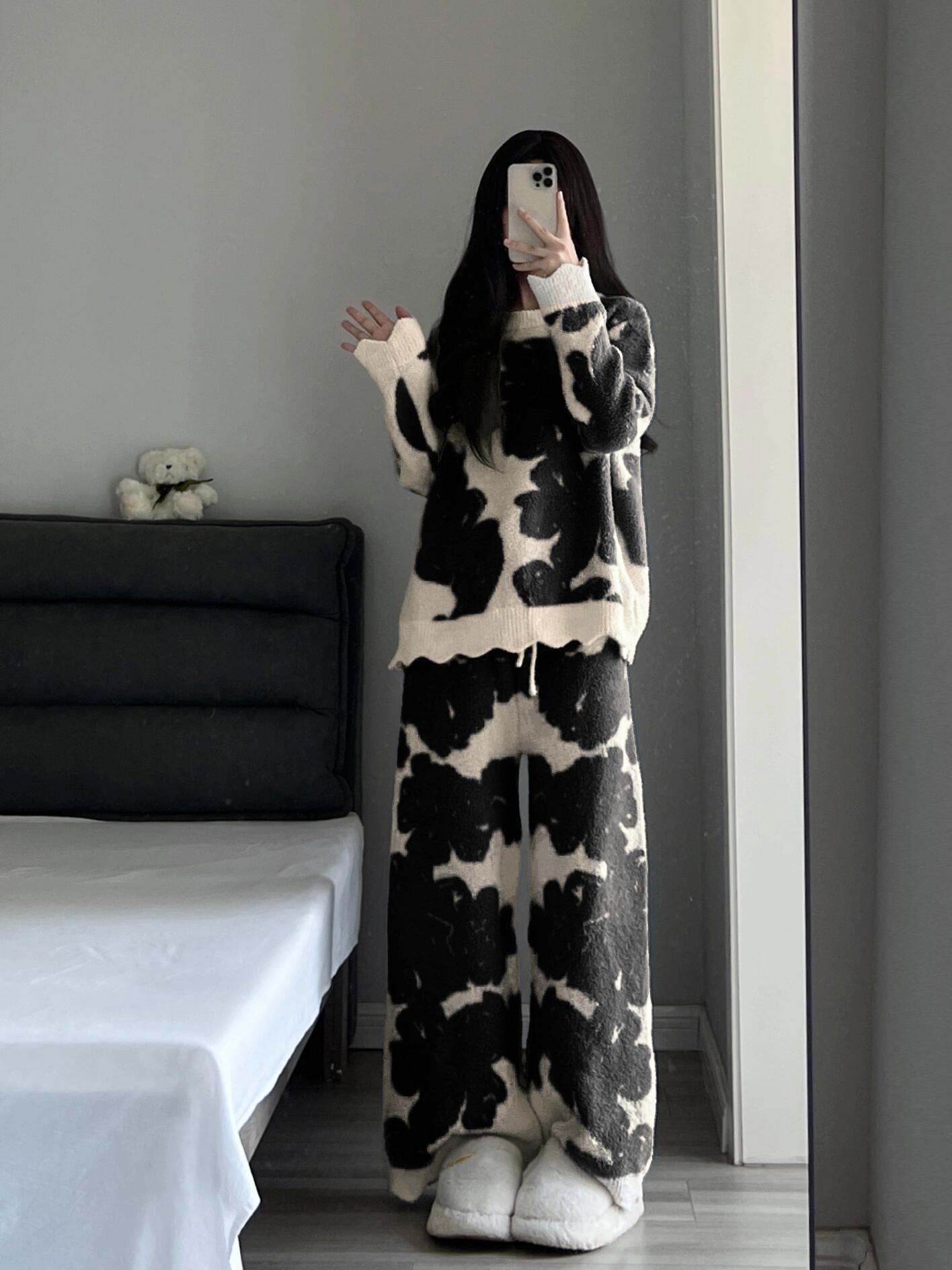 Pijama de terciopelo medio de diseño coreano de alta gama para mujer, otoño/invierno, talla grande, forro polar, grueso, cálido, de punto, para el hogar.