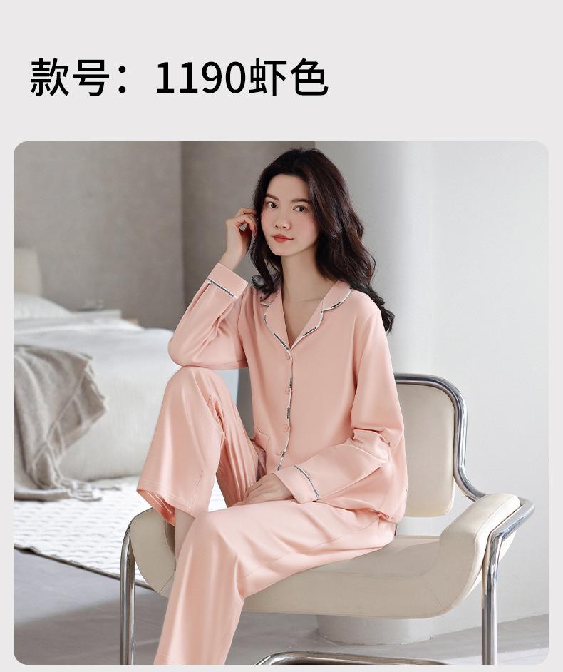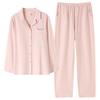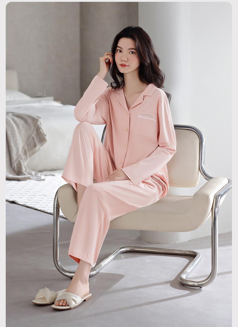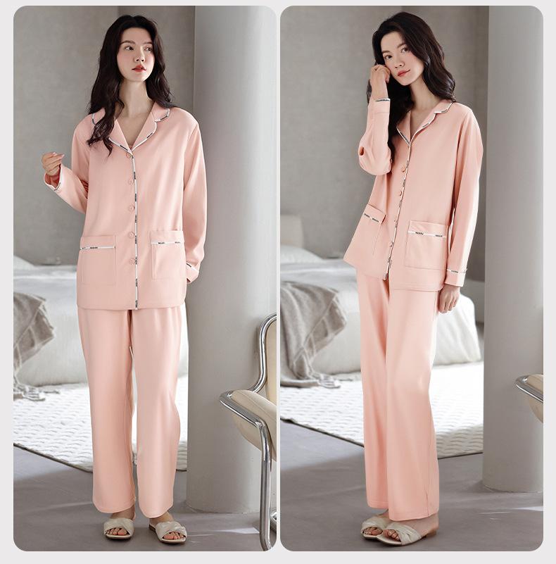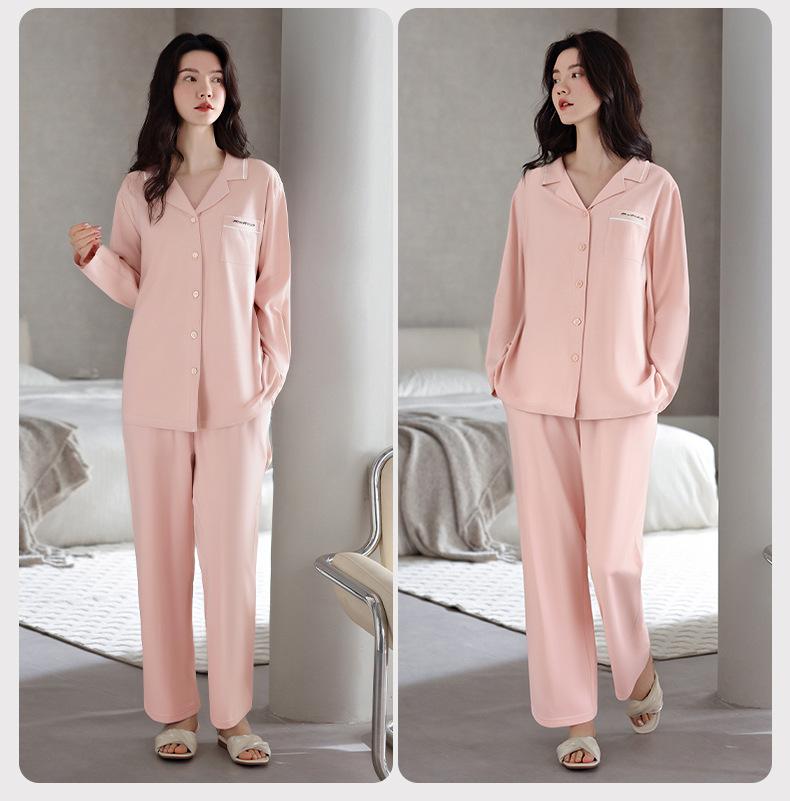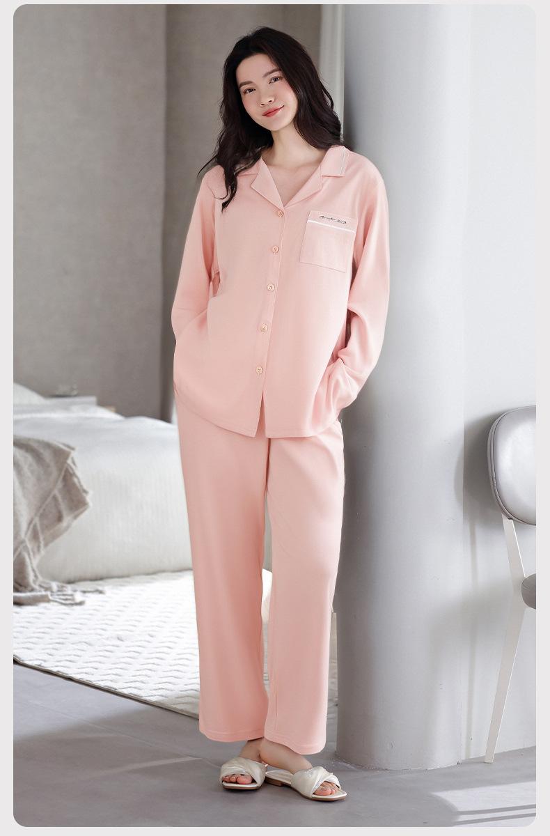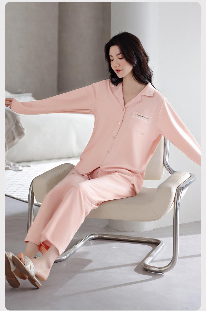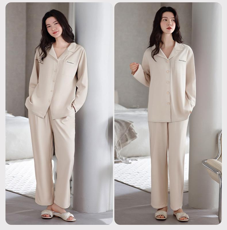 Pijamas de Algodón Puro para Primavera y Otoño para Mujer Manga Larga Pantalón Largo Solapa Color Sólido 2025 Nuevo Conjunto Dulce Cómodo para Estar en Casa