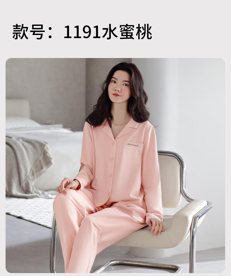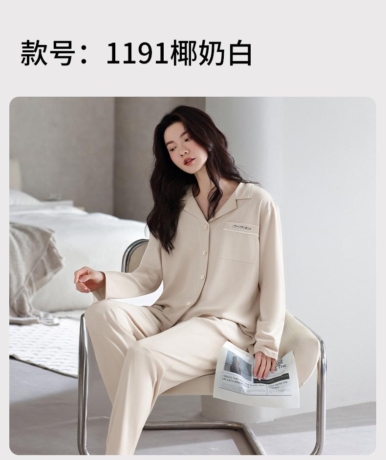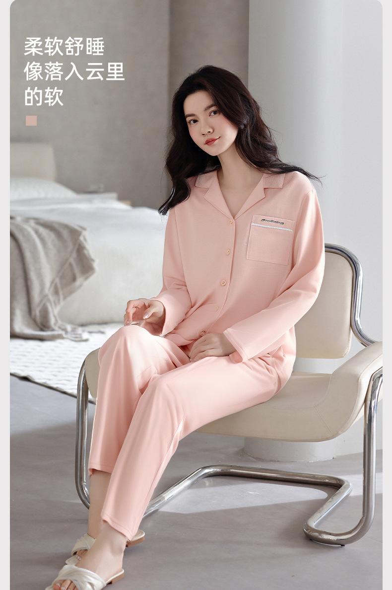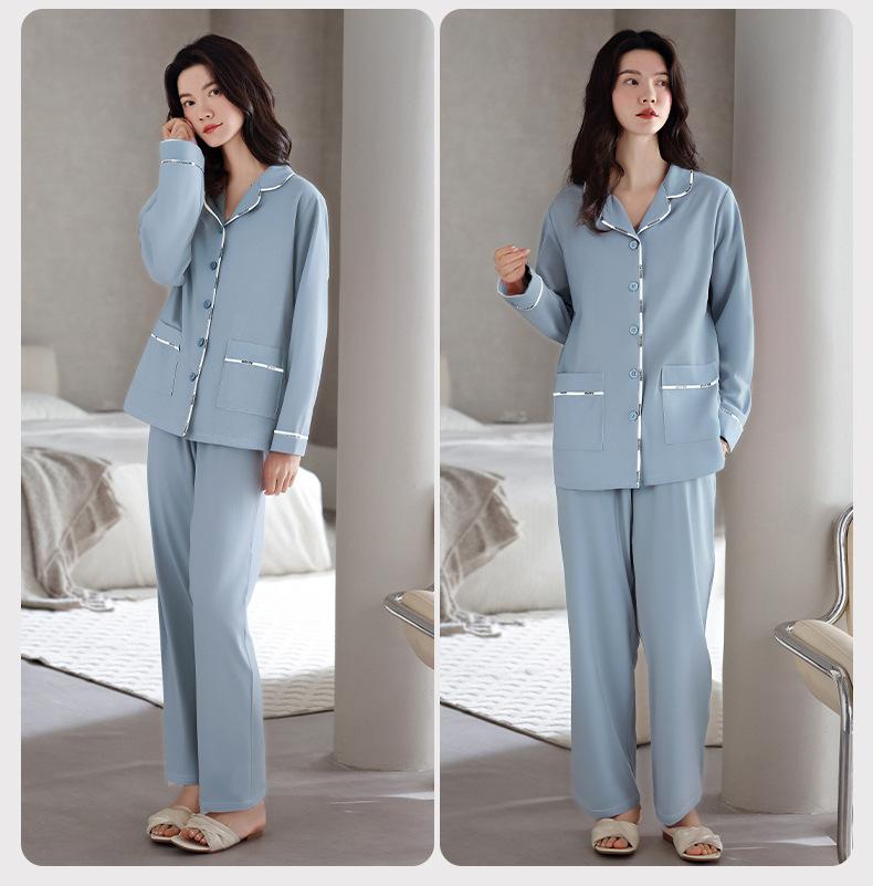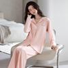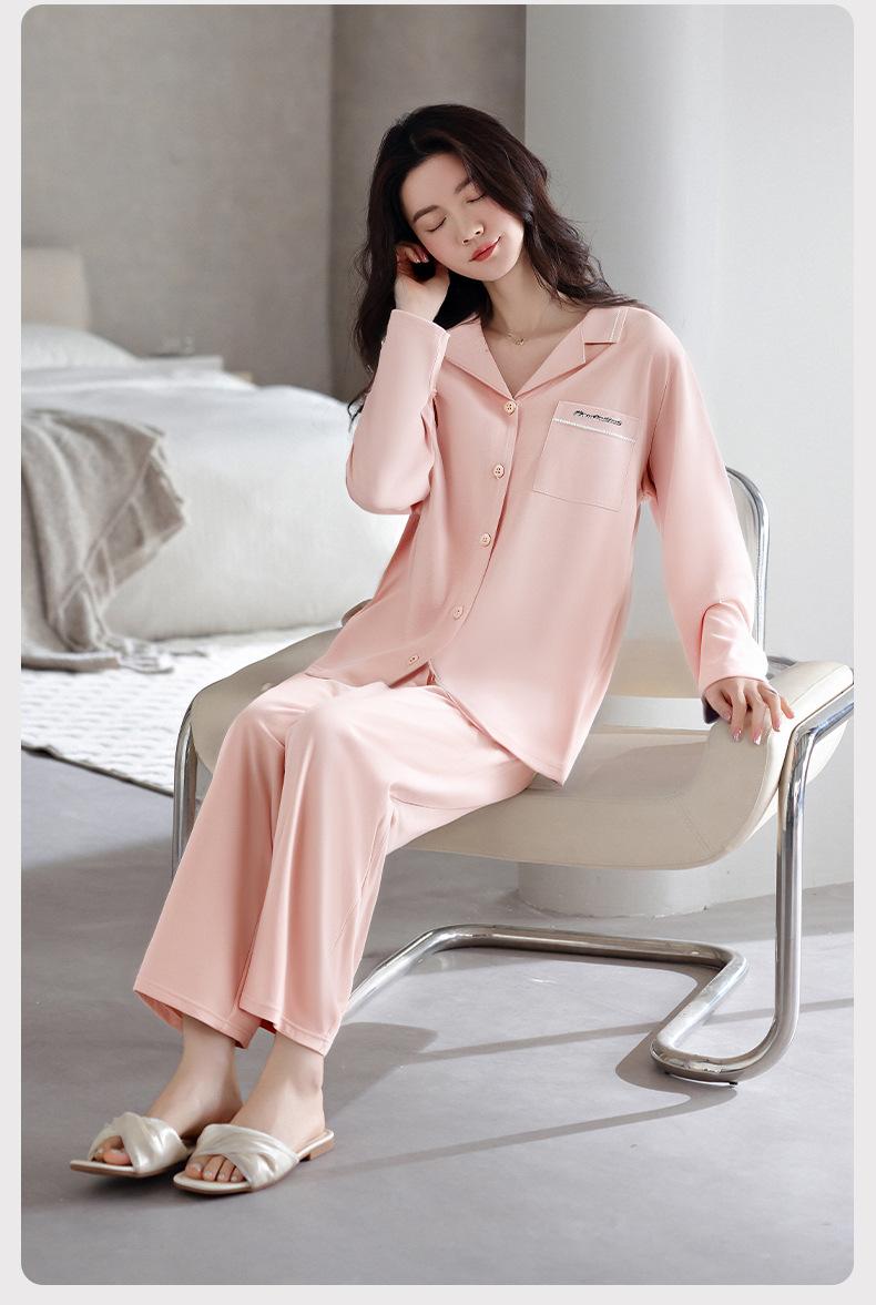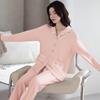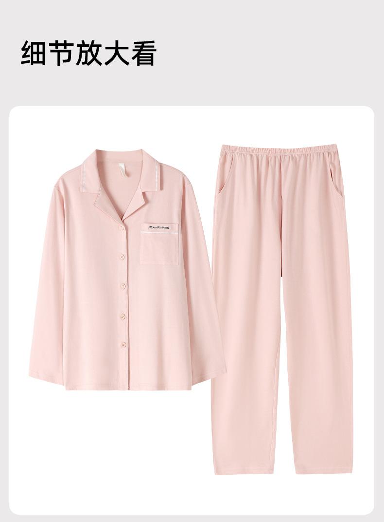 Pijamas de Algodón Puro para Primavera y Otoño para Mujer Manga Larga Pantalón Largo Solapa Color Sólido 2025 Nuevo Conjunto Dulce Cómodo para Estar en Casa