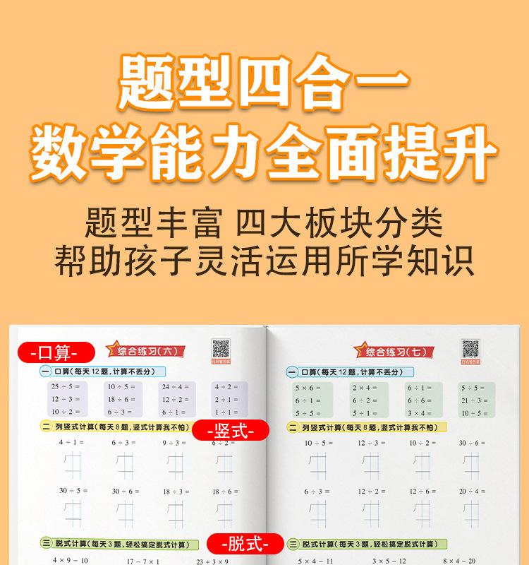 2025 Nuevo Entrenamiento Especial de Matemáticas de Primaria Grados Uno Dos Tres Aritmética Mental Cálculo Vertical Orden de Operaciones Problemas de Aplicación Cuatro en Uno