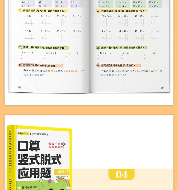 Grade 2 [Second Semester] Mental Calculation Vertical Calculation Step-by-Step Application Problems Four-in-One