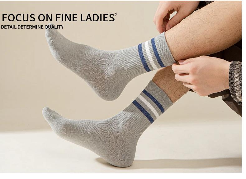 Compra Calcetines para Hombre Otoño e Invierno Calcetines de Media Caña a Rayas Deportivos de Algodón Transpirables Absorbentes del Sudor Primavera y Otoño Estudiante Modernos Versátiles Calcetines para Hombre al por mayor en Joom.pro