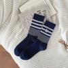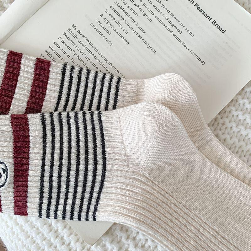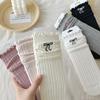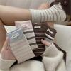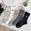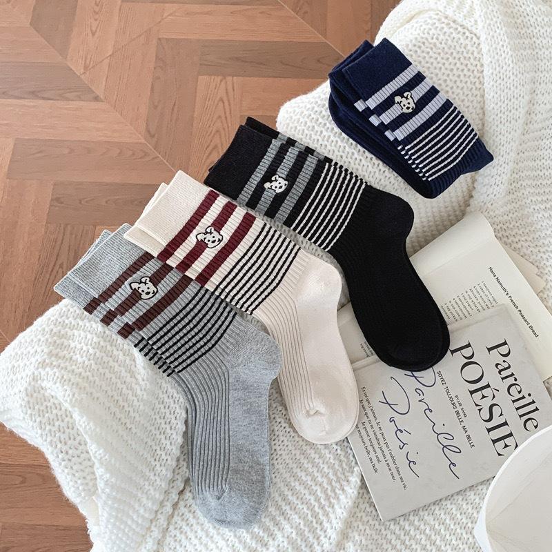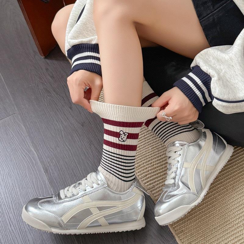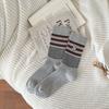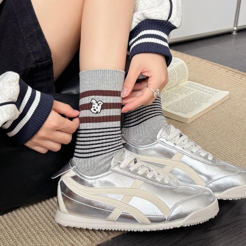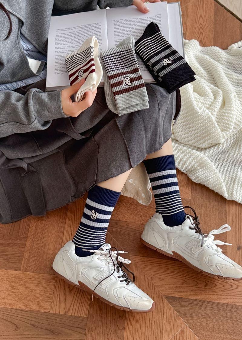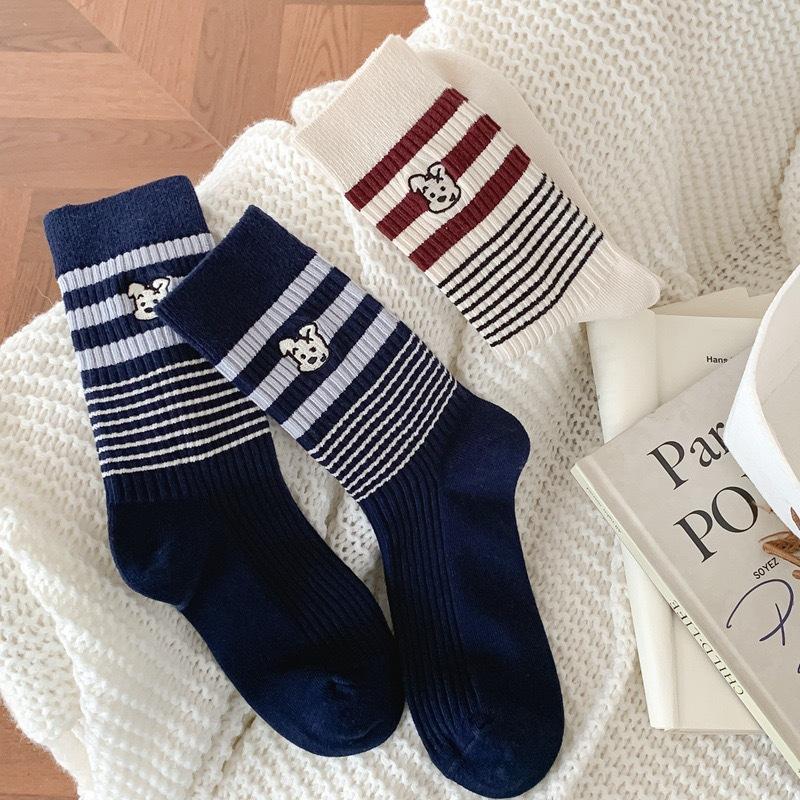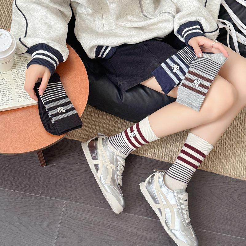 Otoño e invierno nuevos calcetines de felpa de media caña con bordado de rayas de cachorro para mujer, estilo coreano, calcetines para mujer, doble aguja, mismo estilo de Xiaohongshu, calcetines de influencer