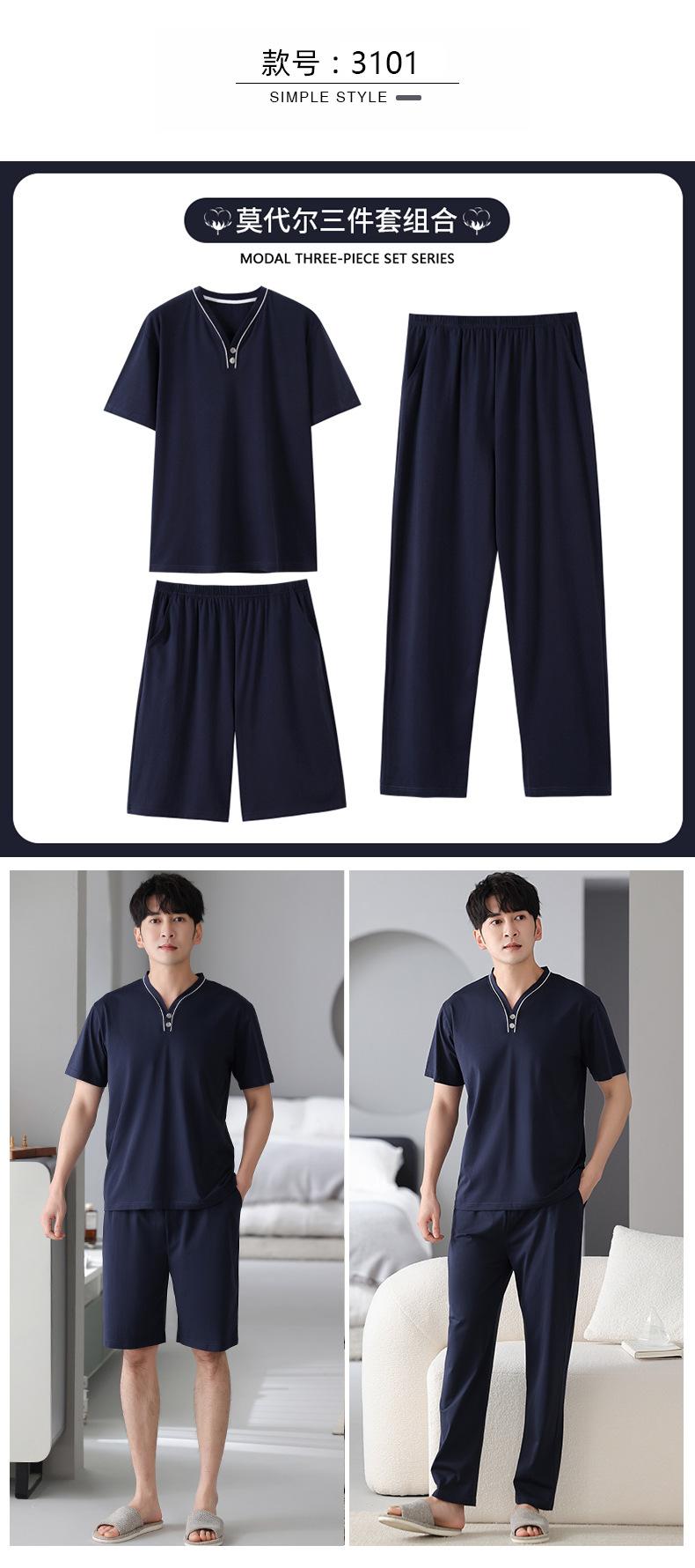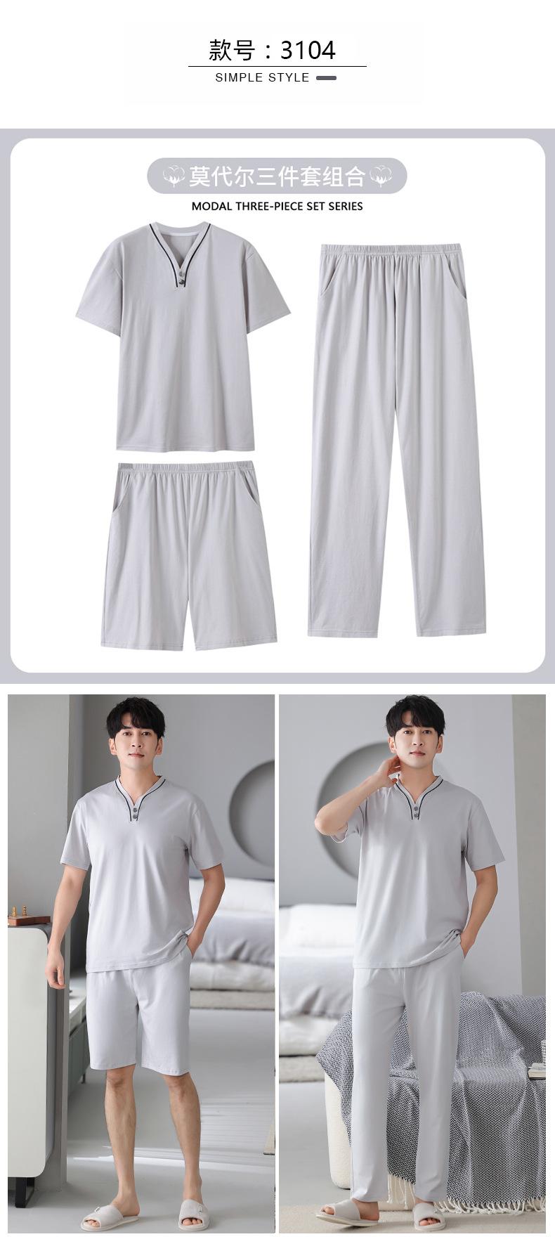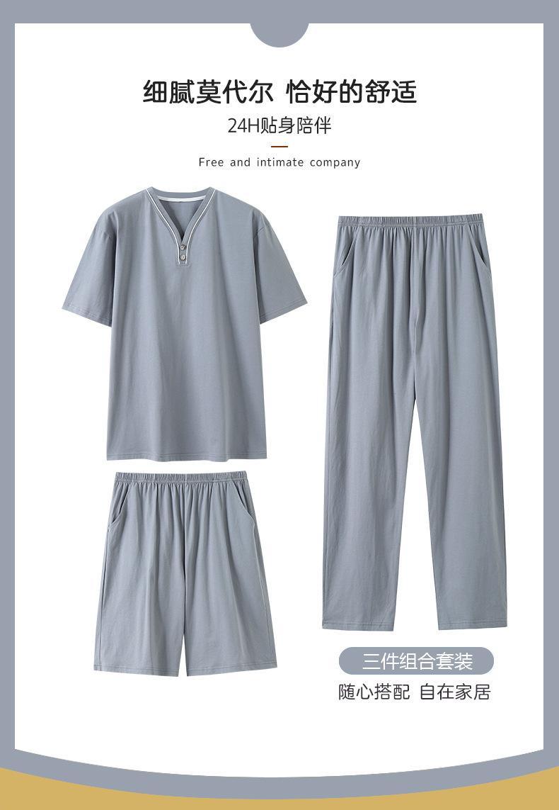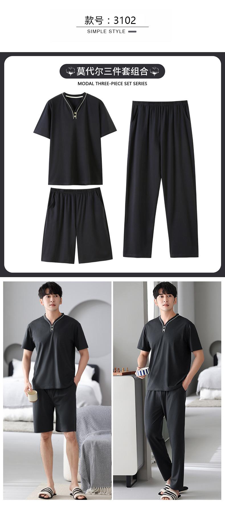 Pijama para Hombre Verano Modal Manga Corta Pantalones para Hombre Verano Delgado Casual Verano Manga Media Ropa para el Hogar Conjunto de Tres Piezas