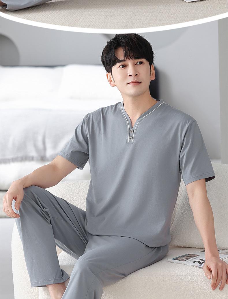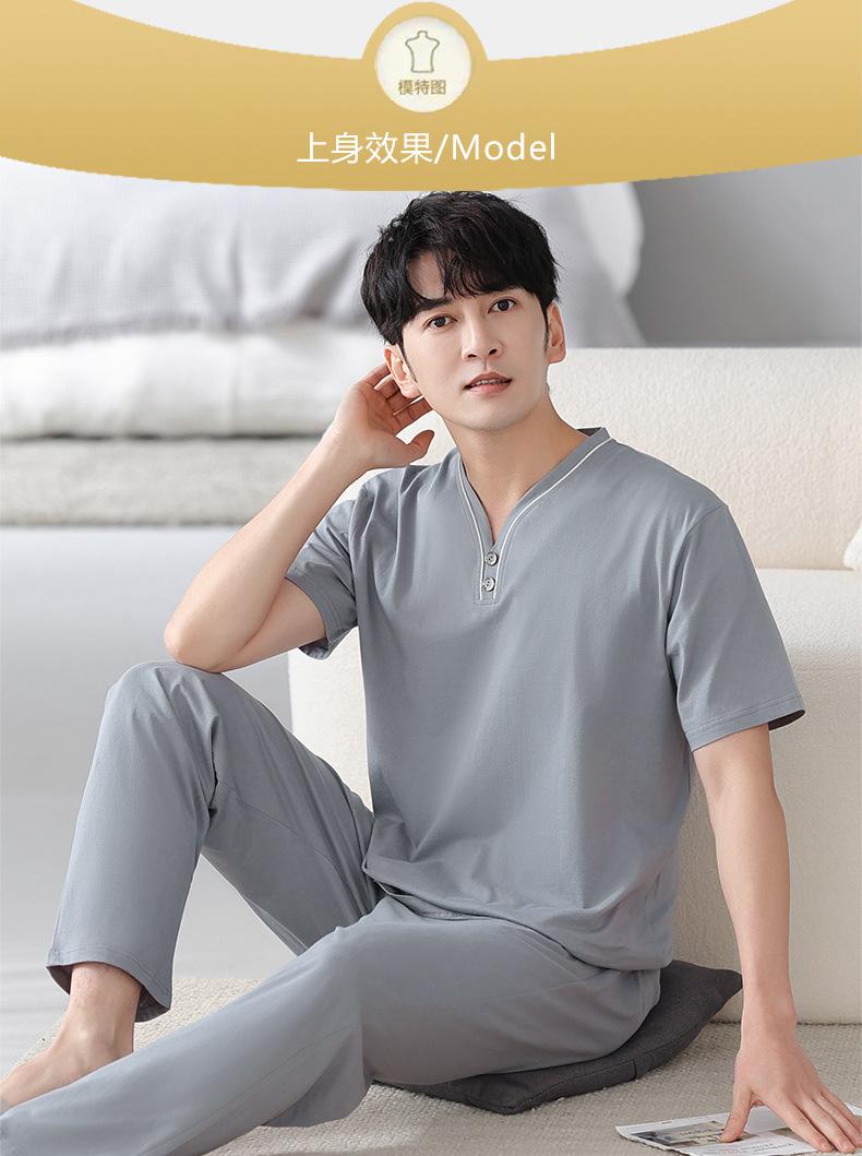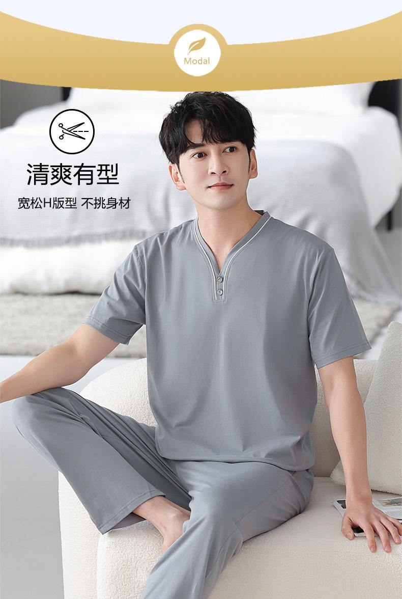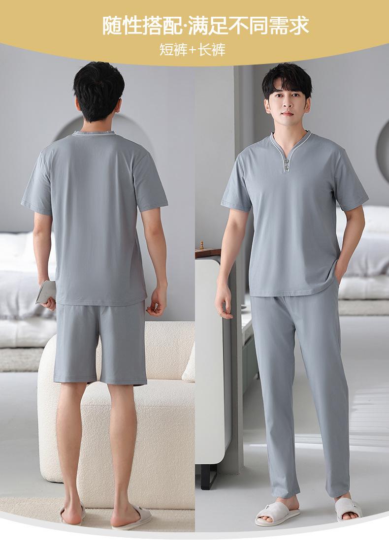 Pijama para Hombre Verano Modal Manga Corta Pantalones para Hombre Verano Delgado Casual Verano Manga Media Ropa para el Hogar Conjunto de Tres Piezas