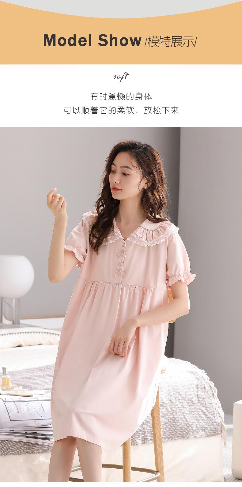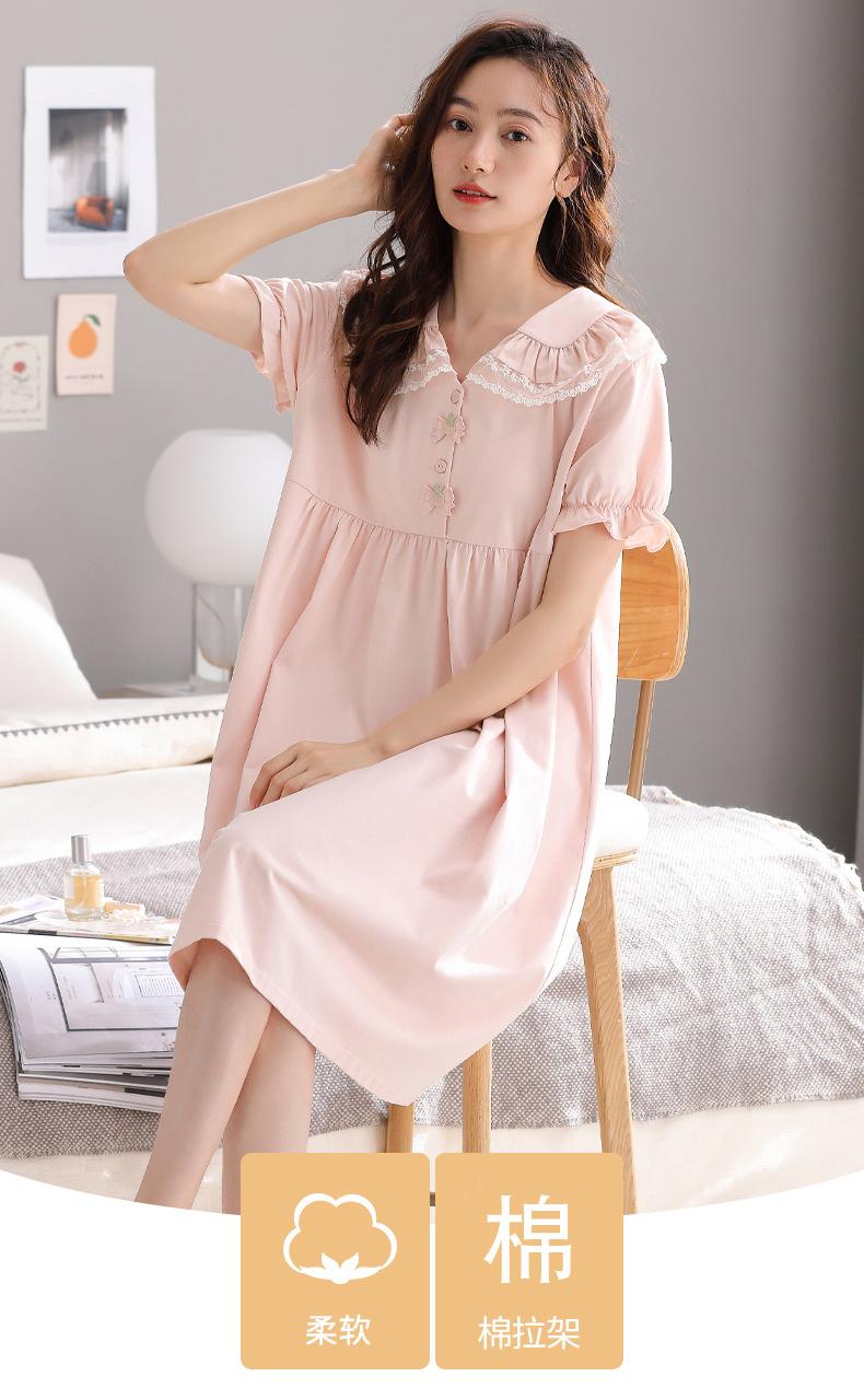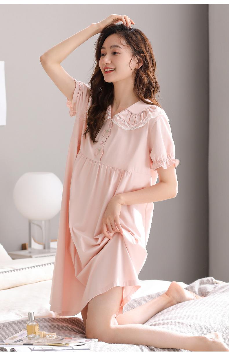 Camisón Estilo Princesa para Mujer Verano Delgado Algodón Puro Juvenil Camisón Fresco Talla Grande Ropa de Exterior Vestido de Encaje Dulce