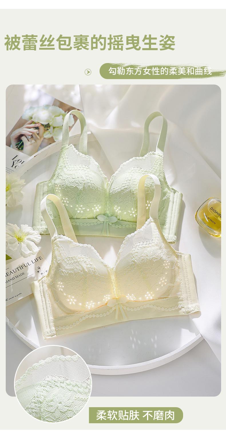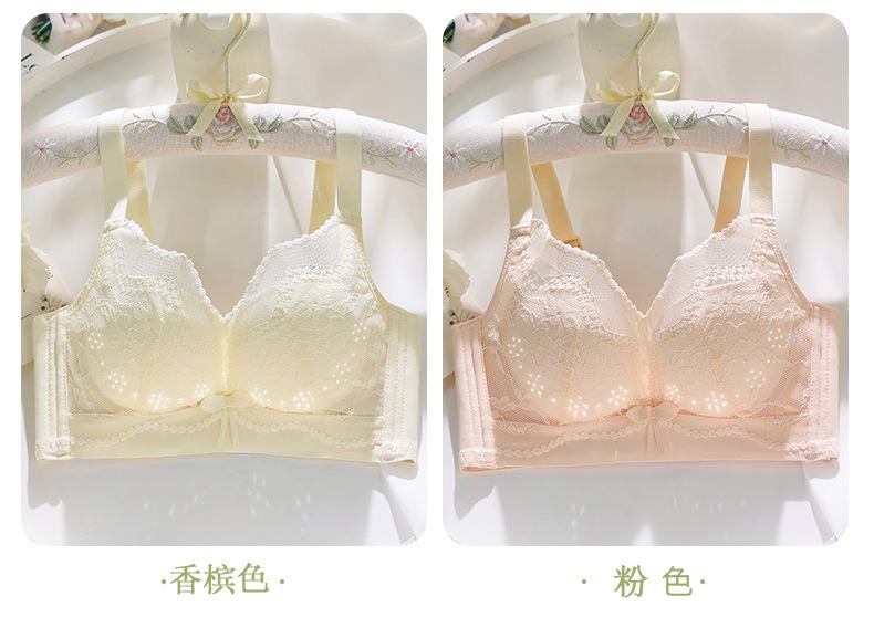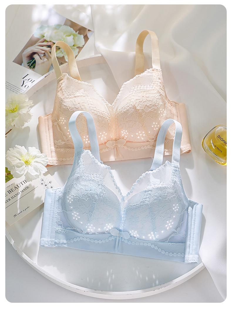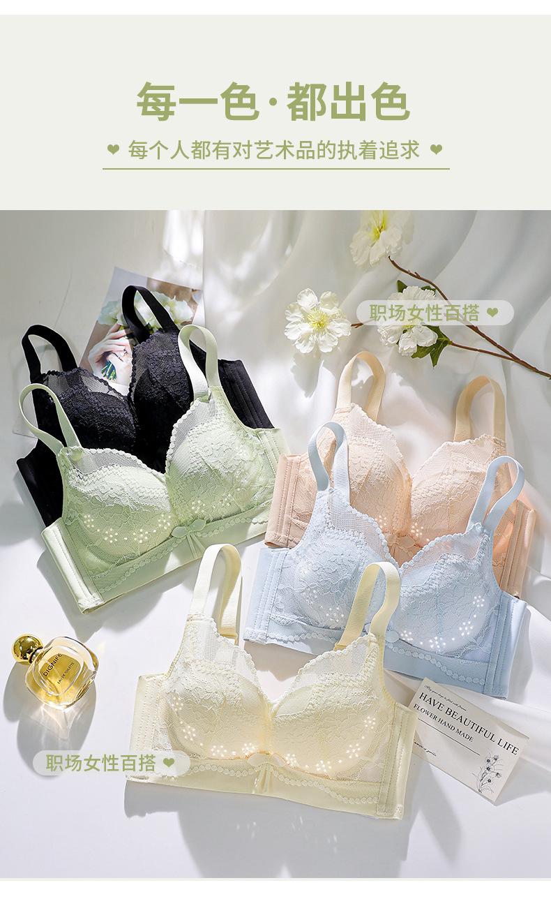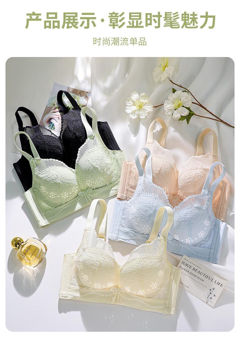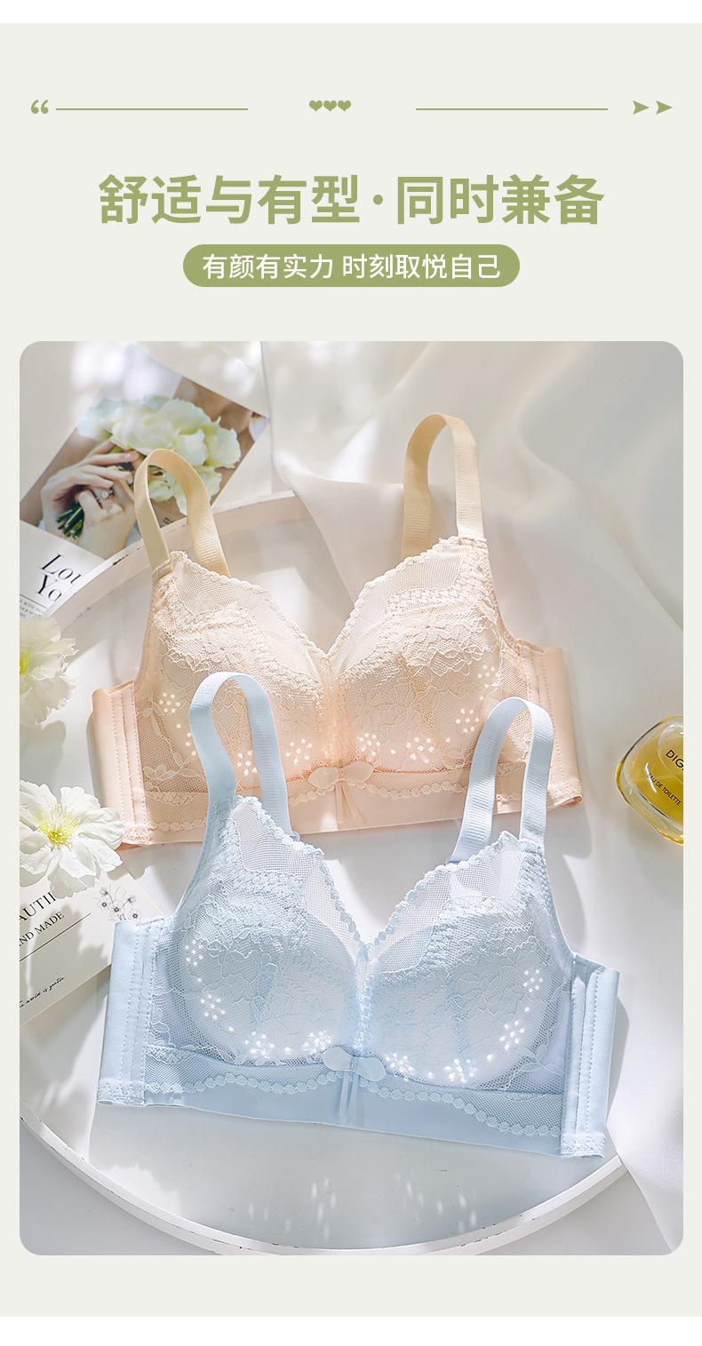 Ropa interior de mujer Pecho pequeño Reunido Soporte lateral Anticaída Delgada Transpirable Encaje sexy Sin varillas Ajustable