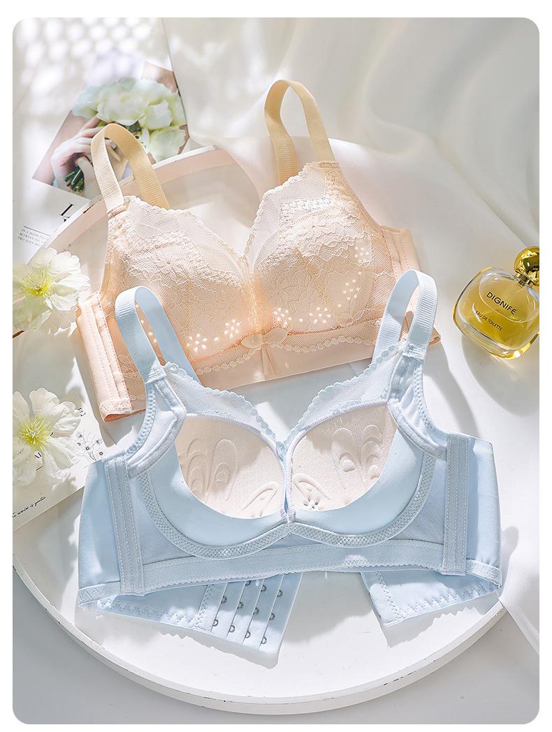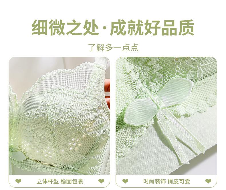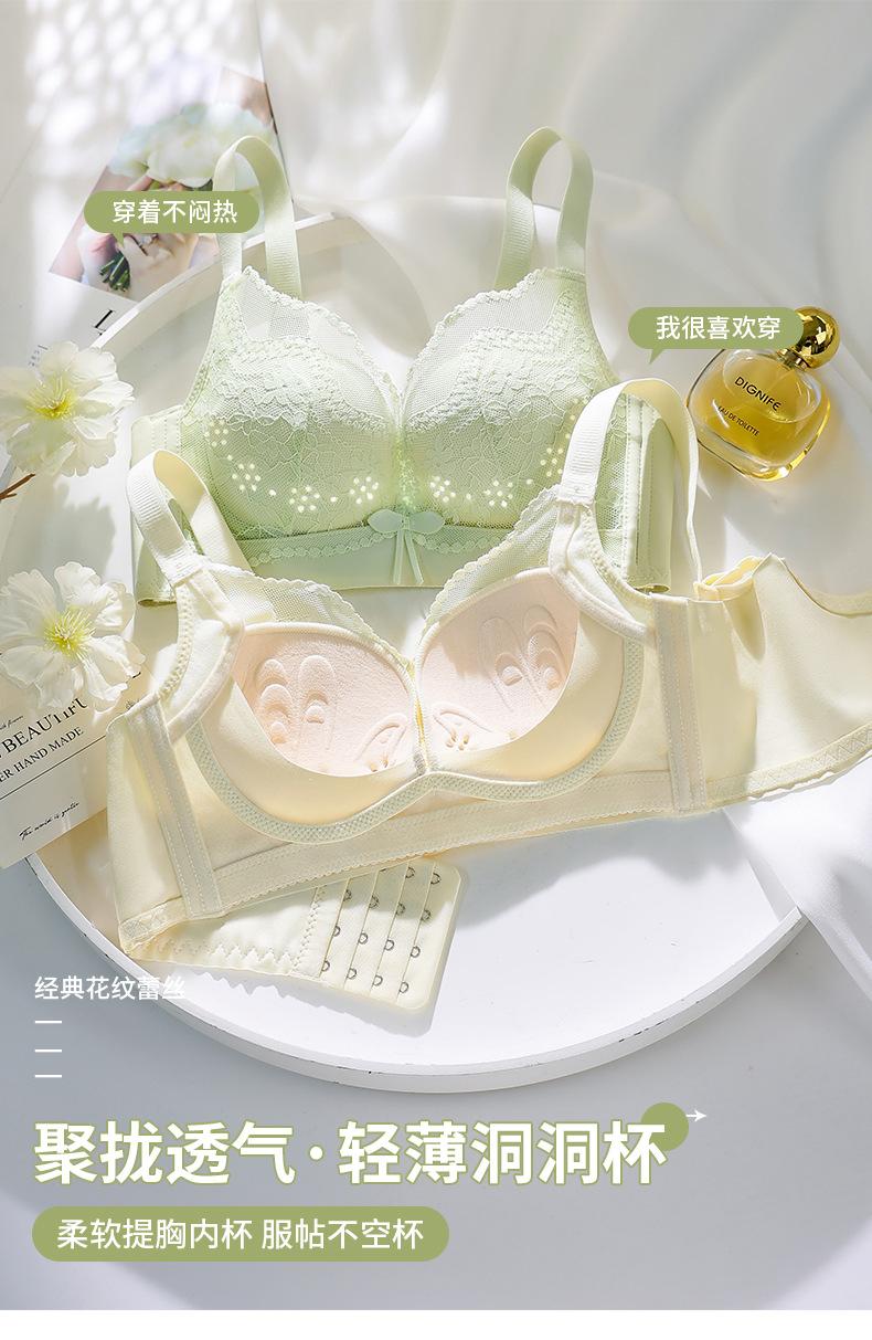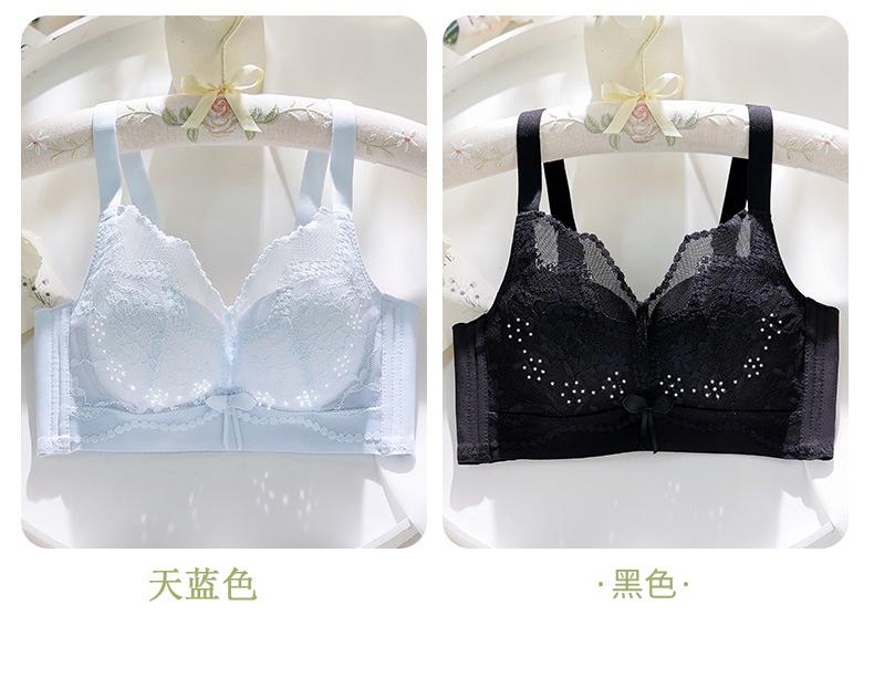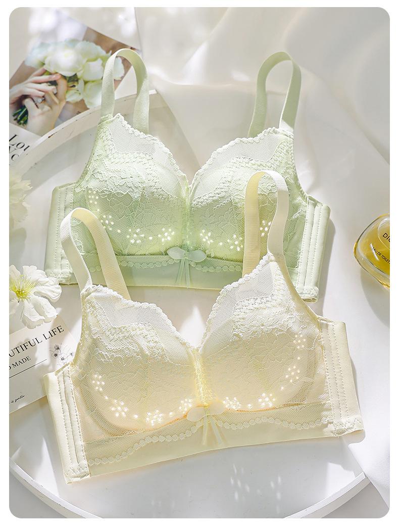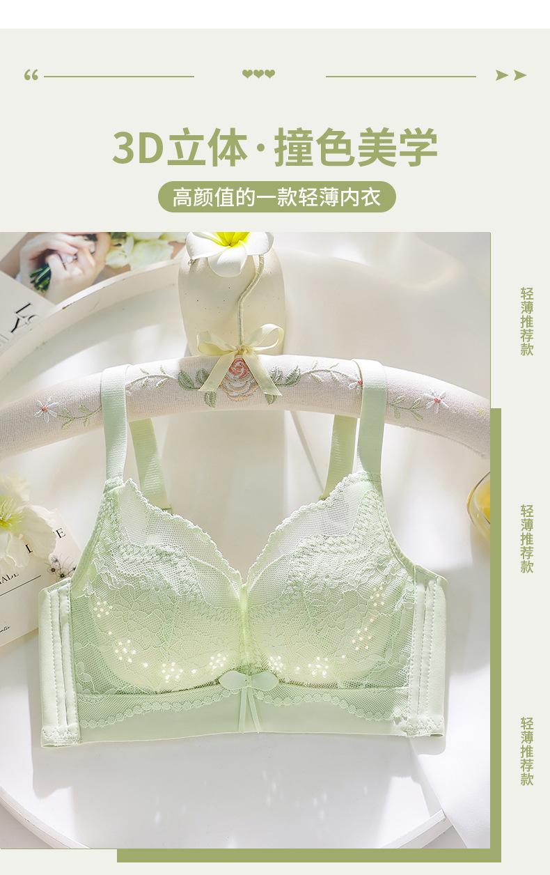 Ropa interior de mujer Pecho pequeño Reunido Soporte lateral Anticaída Delgada Transpirable Encaje sexy Sin varillas Ajustable