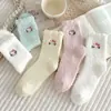 Calcetines para mujer Ojos grandes Calcetines de media caña Invierno Calcetines gruesos Dibujos animados Papas fritas Forro polar coral Cálidos para el hogar Dormir Piso