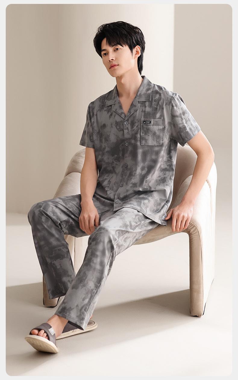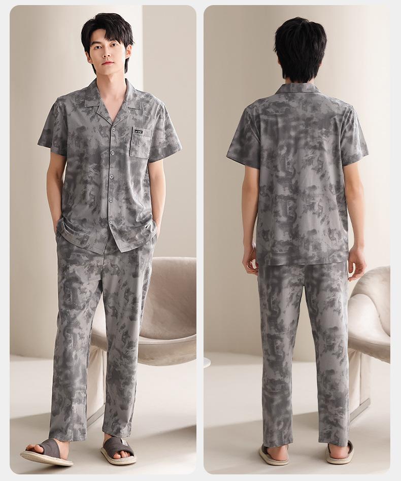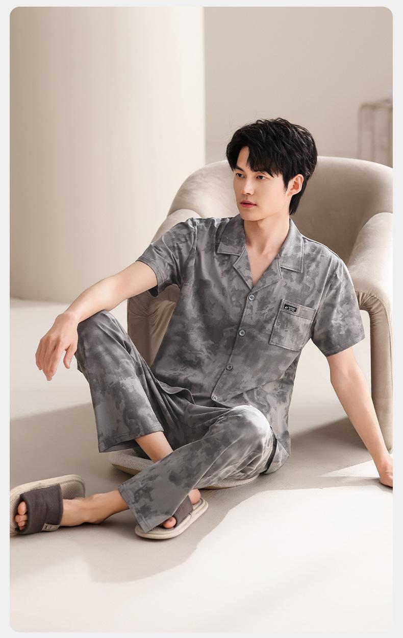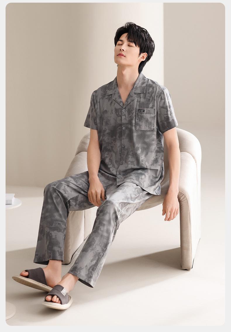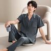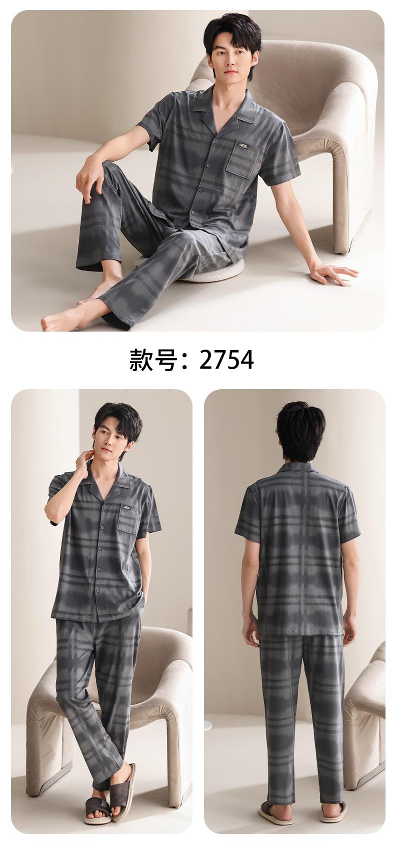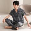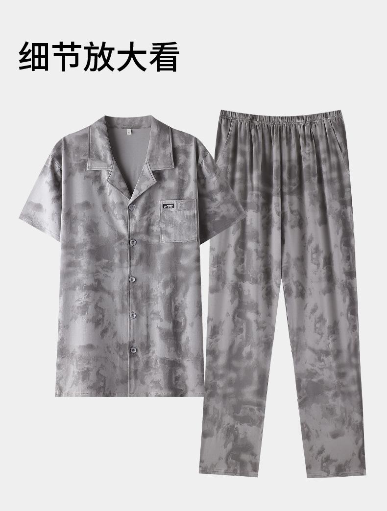 Pijama de Verano para Hombre de Algodón Puro de Manga Corta y Pantalón, Fino de Verano para Hombre de Talla Grande, Cárdigan de Verano para Hombre, Ropa para el Hogar