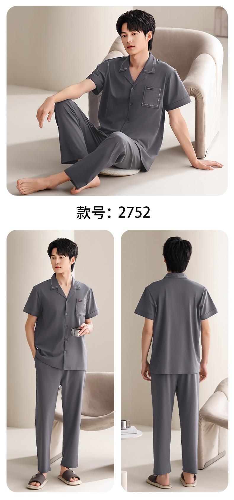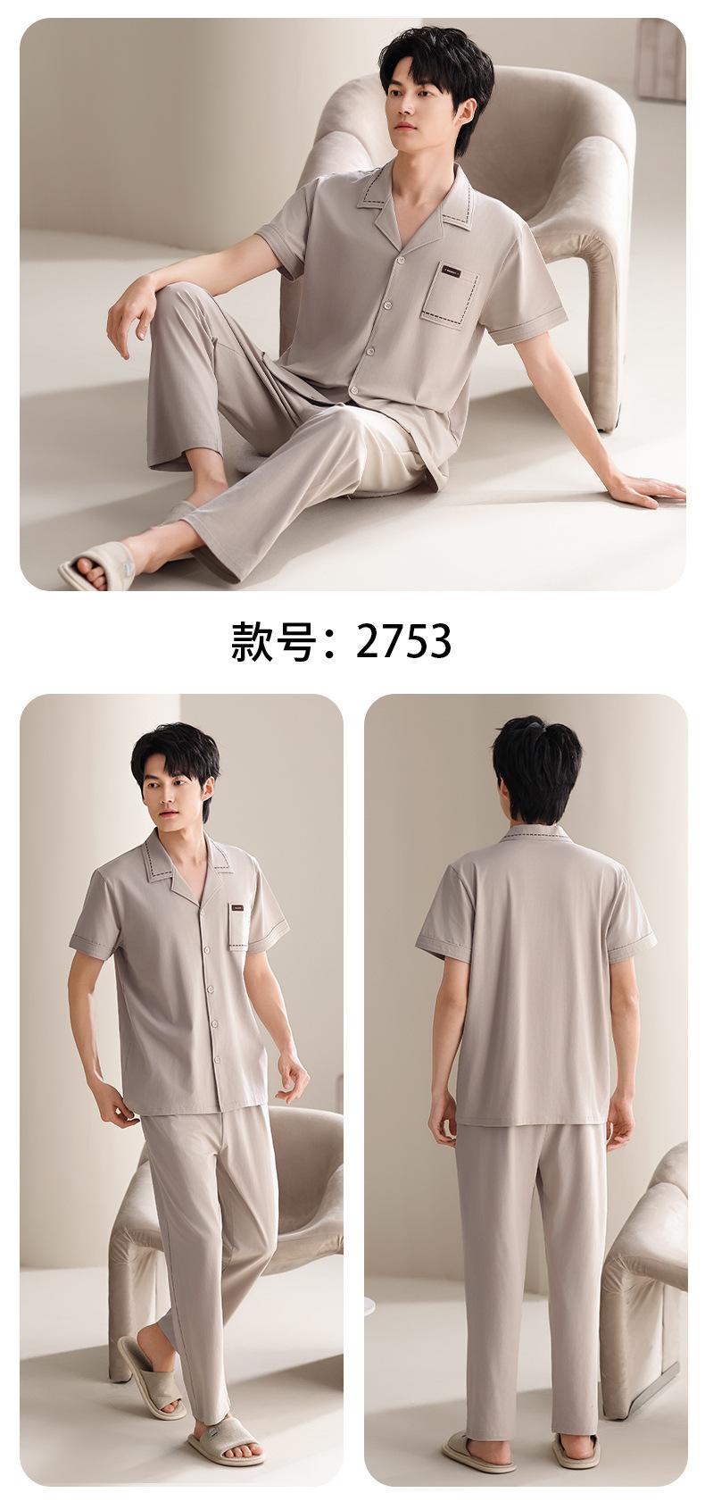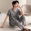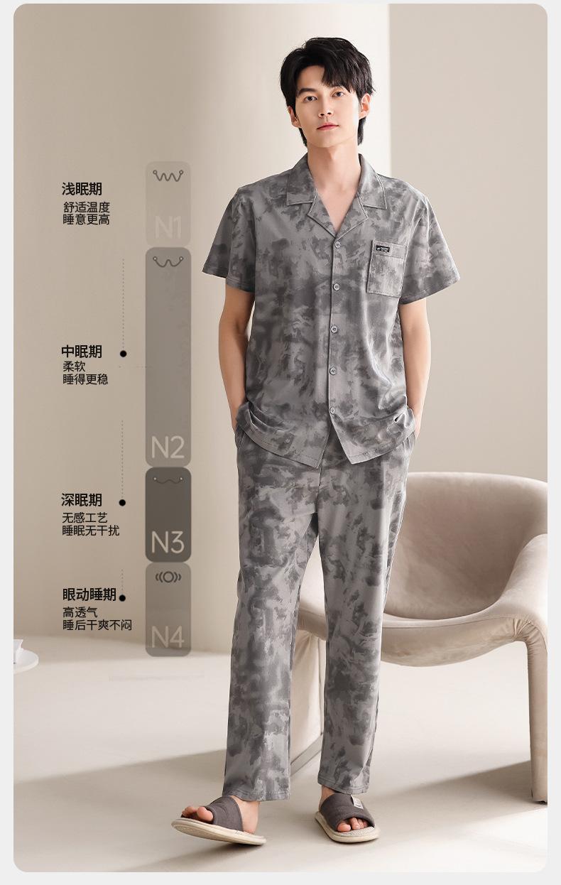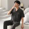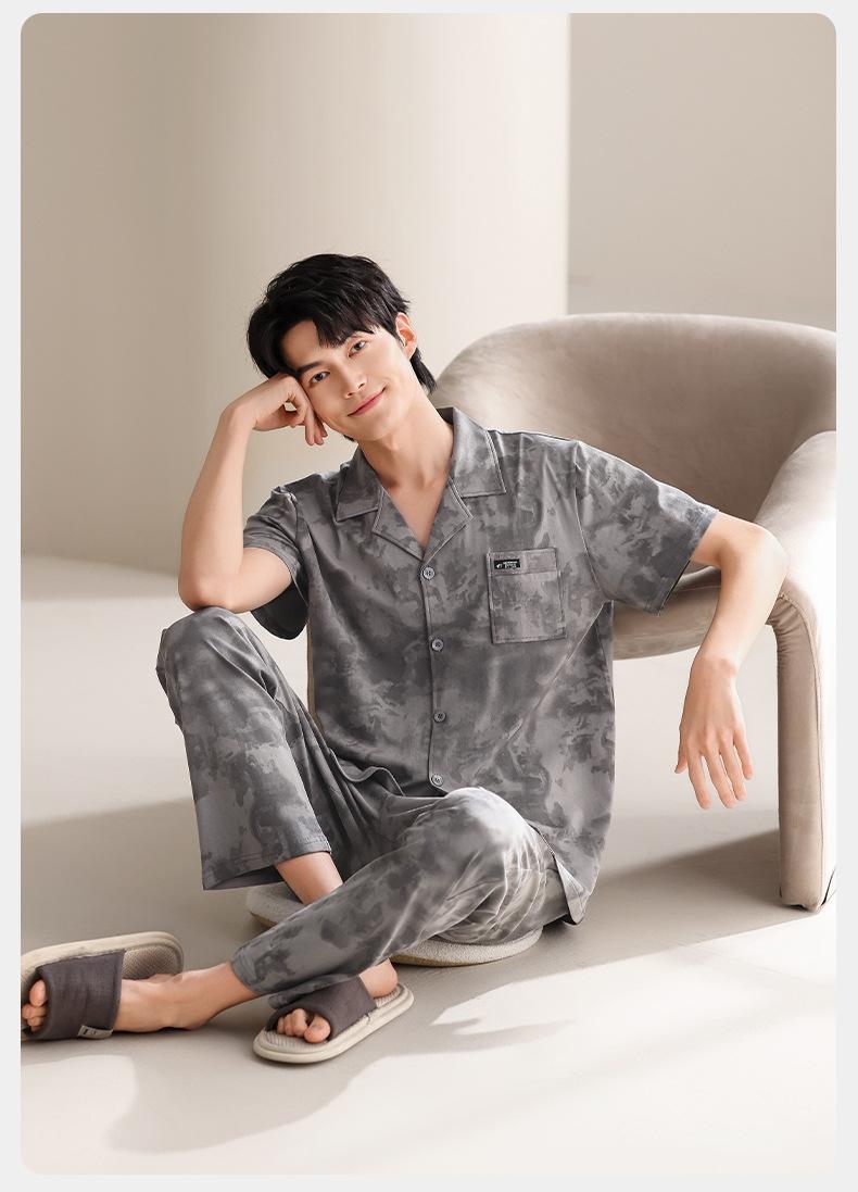 Pijama de Verano para Hombre de Algodón Puro de Manga Corta y Pantalón, Fino de Verano para Hombre de Talla Grande, Cárdigan de Verano para Hombre, Ropa para el Hogar