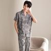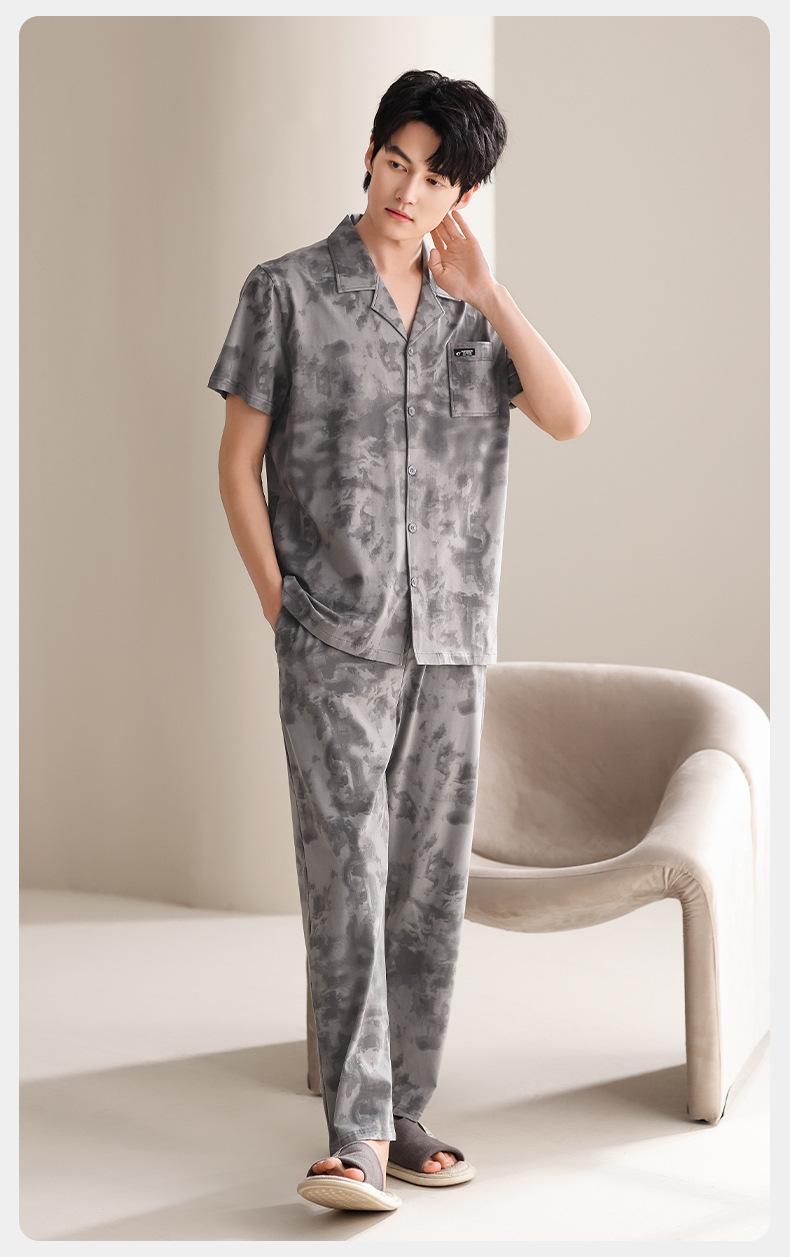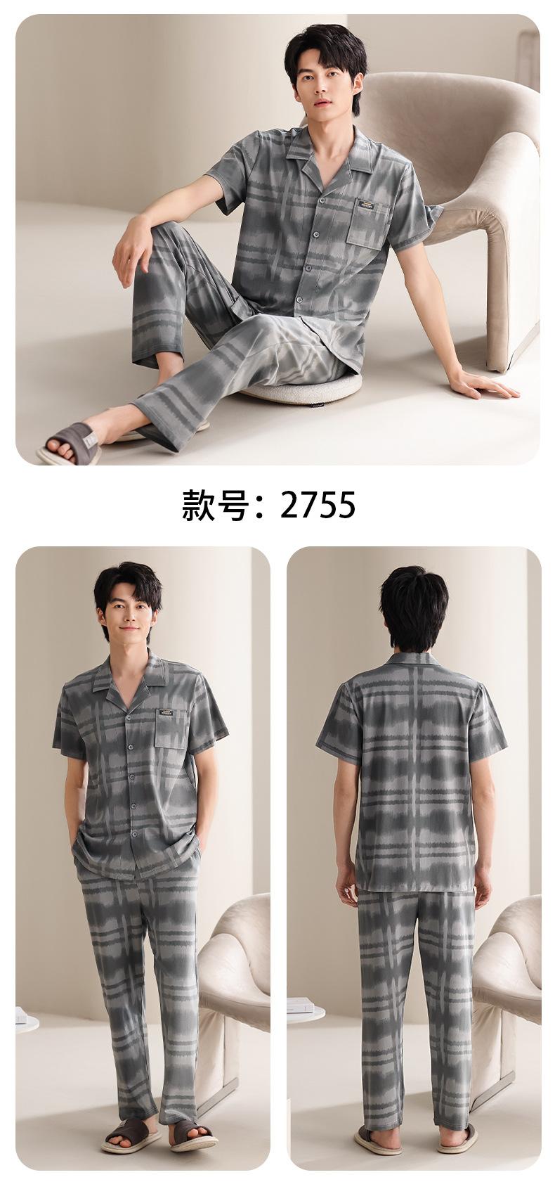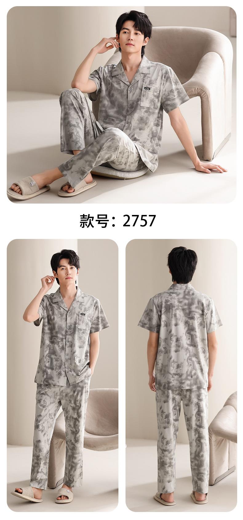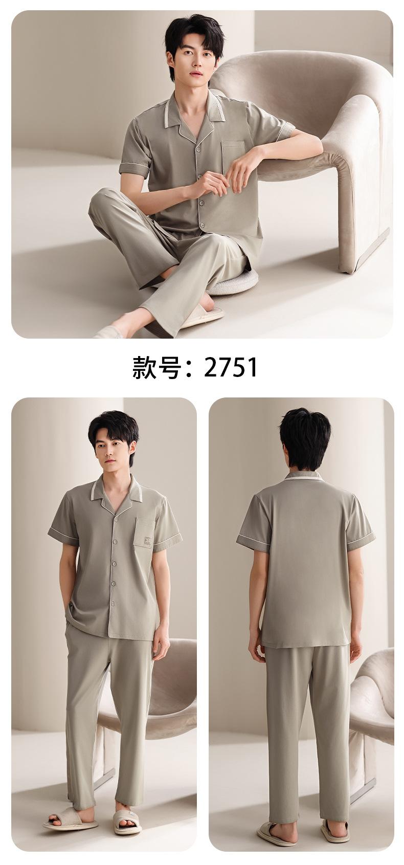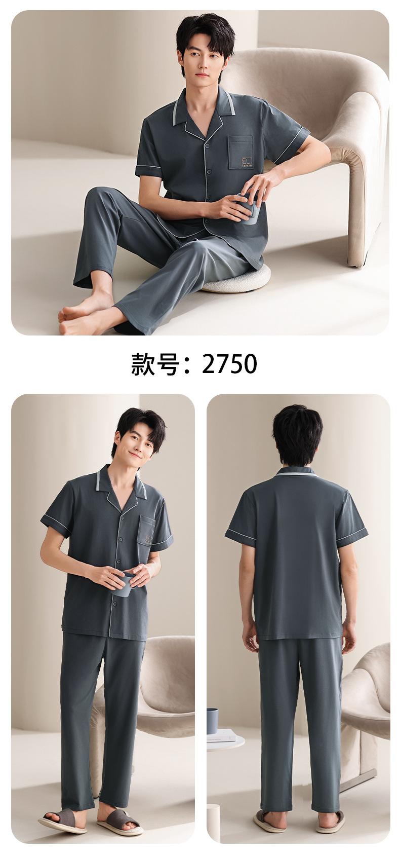 Pijama de Verano para Hombre de Algodón Puro de Manga Corta y Pantalón, Fino de Verano para Hombre de Talla Grande, Cárdigan de Verano para Hombre, Ropa para el Hogar