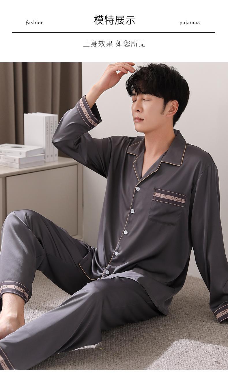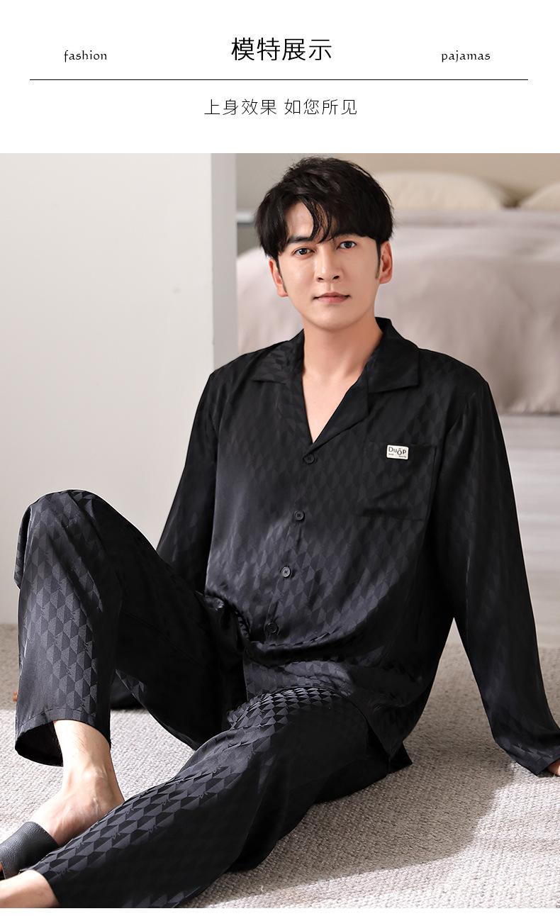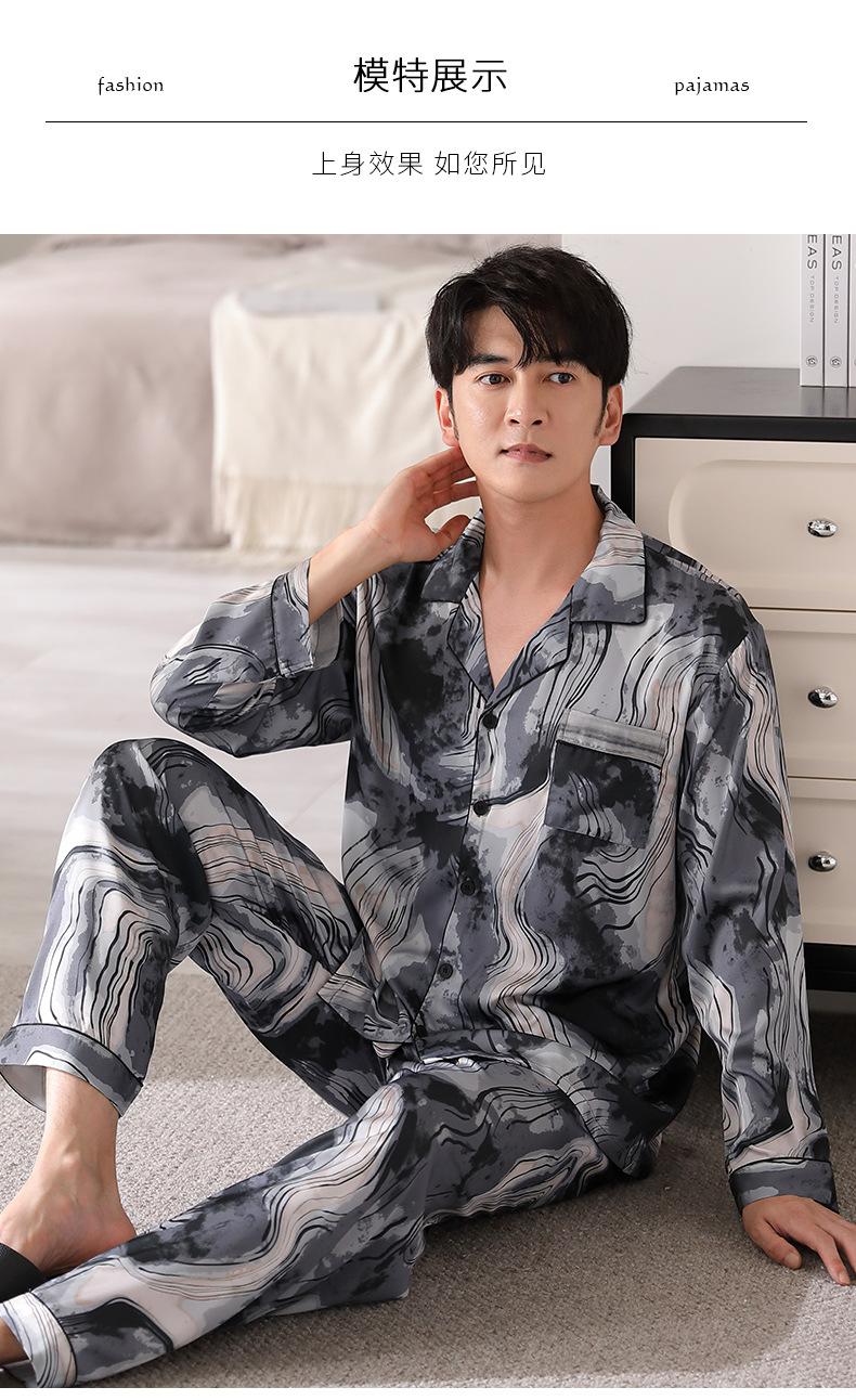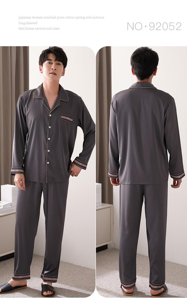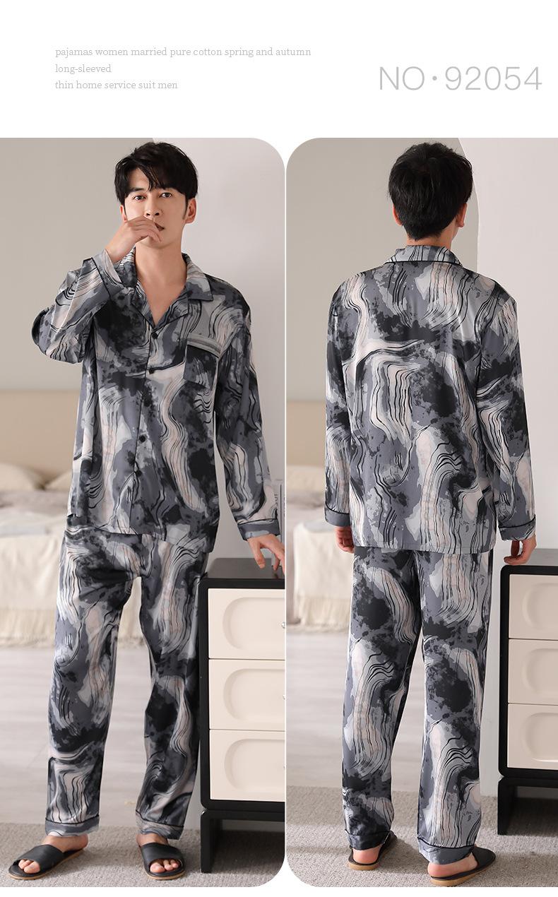 Pijama para hombre de primavera y otoño de seda de hielo de manga larga delgada de verano seda artificial de alta calidad traje para uso doméstico al aire libre
