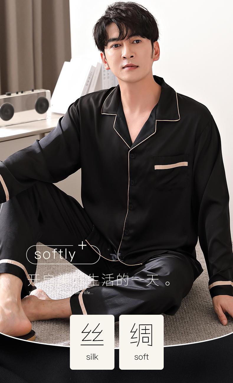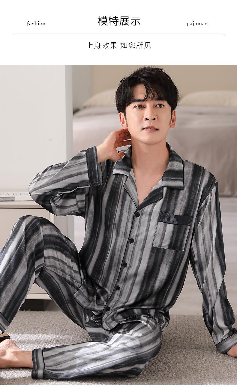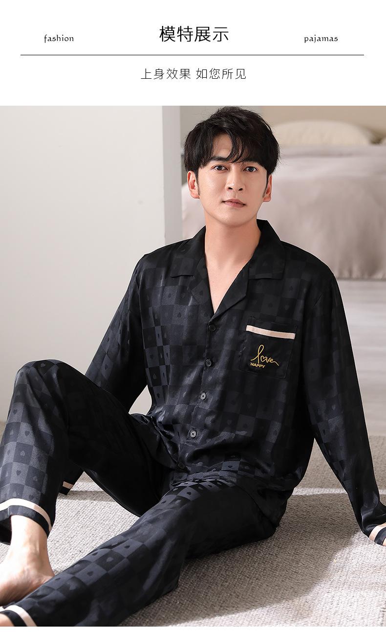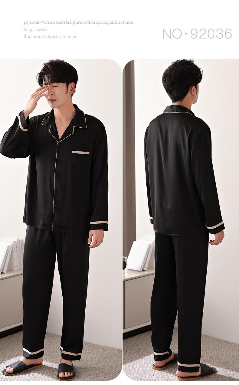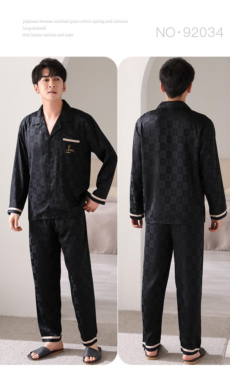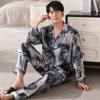 Pijama para hombre de primavera y otoño de seda de hielo de manga larga delgada de verano seda artificial de alta calidad traje para uso doméstico al aire libre