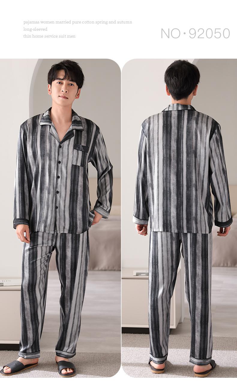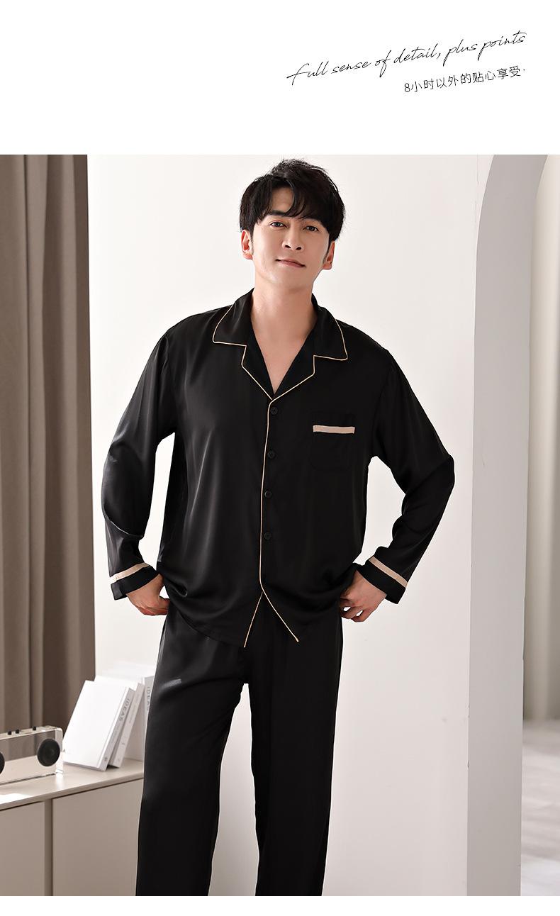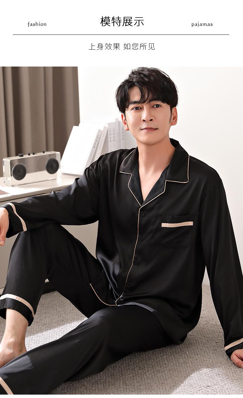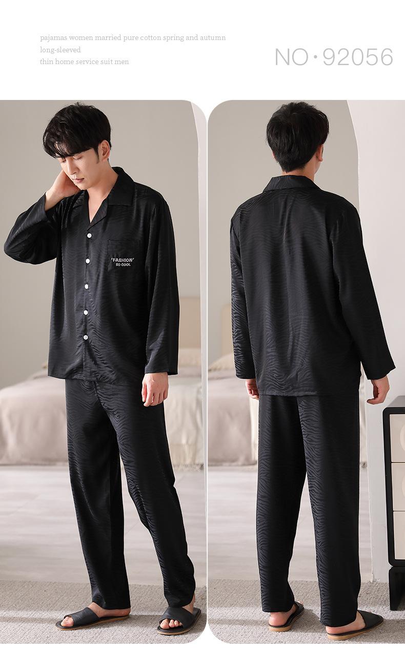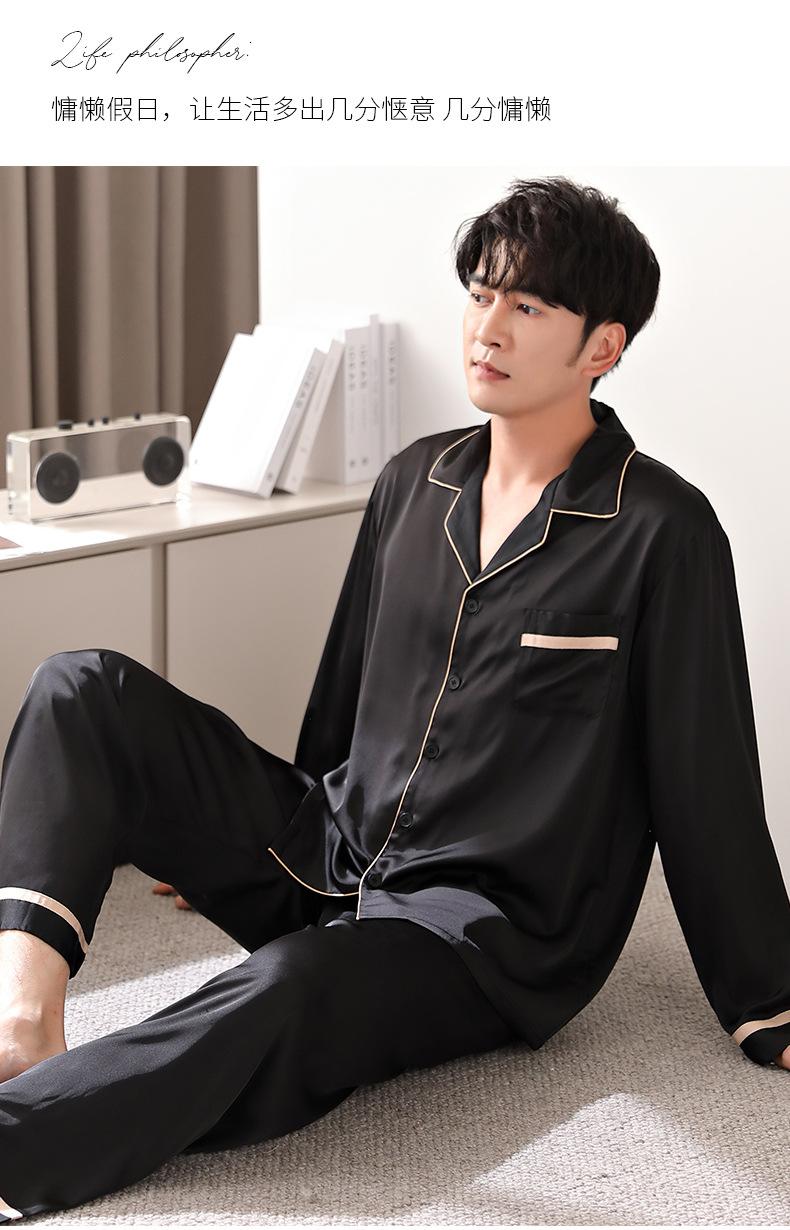 Pijama para hombre de primavera y otoño de seda de hielo de manga larga delgada de verano seda artificial de alta calidad traje para uso doméstico al aire libre