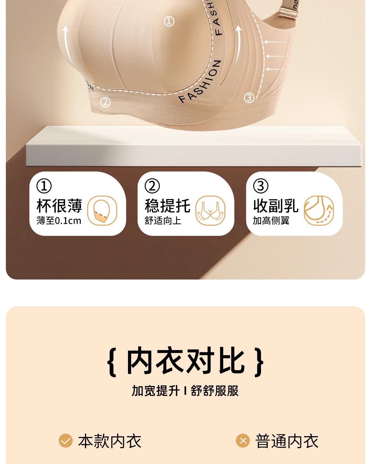 Sujetador de realce sin costuras para mujer, copa delgada, talla grande, hace que el busto grande parezca pequeño, sin varillas, con realce, anti-flacidez, espalda hermosa