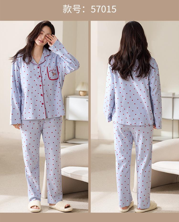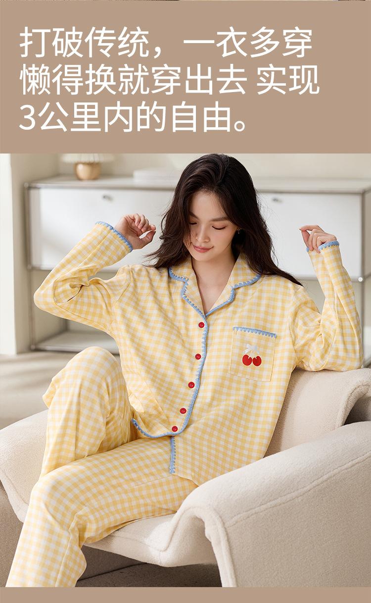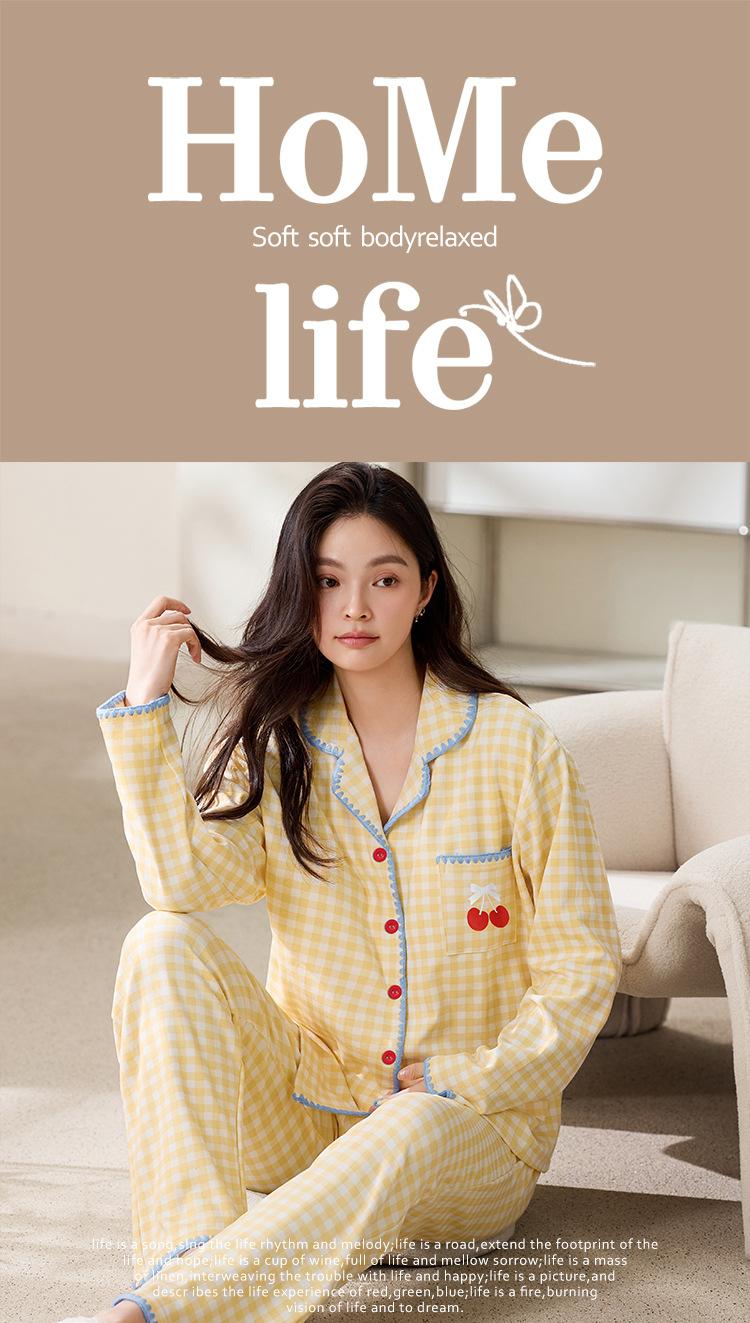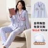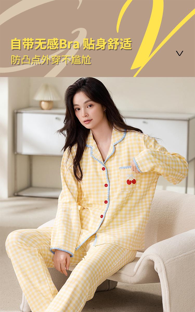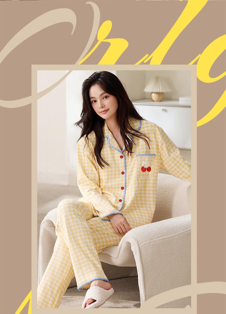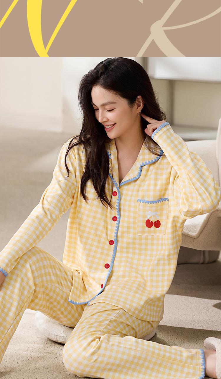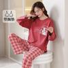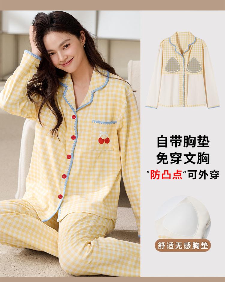 Pijama de Algodón Puro para Mujer Nuevo Estilo con Almohadillas en el Pecho Manga Larga Pantalón Largo Otoño e Invierno Ropa de Casa Dulce y Linda Se Puede Usar Afuera Set