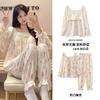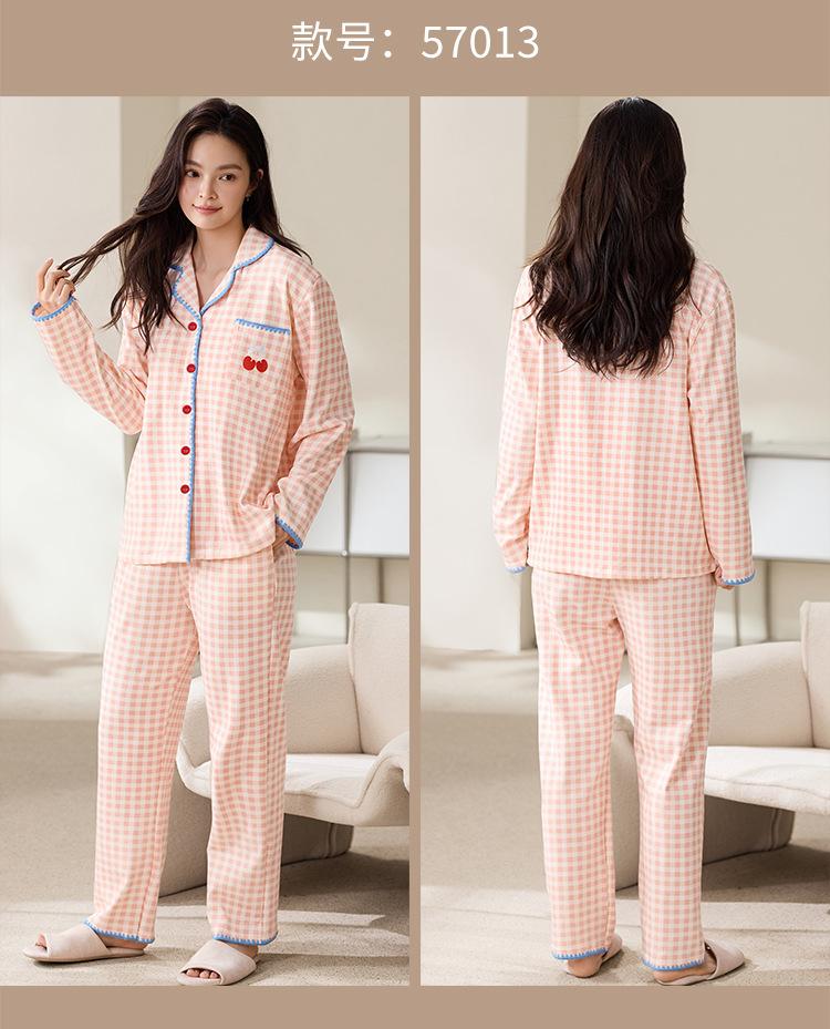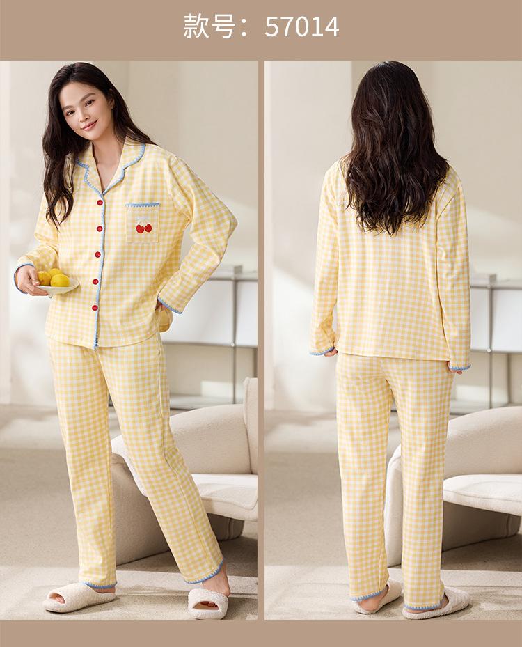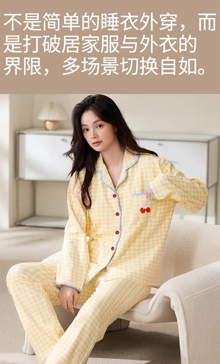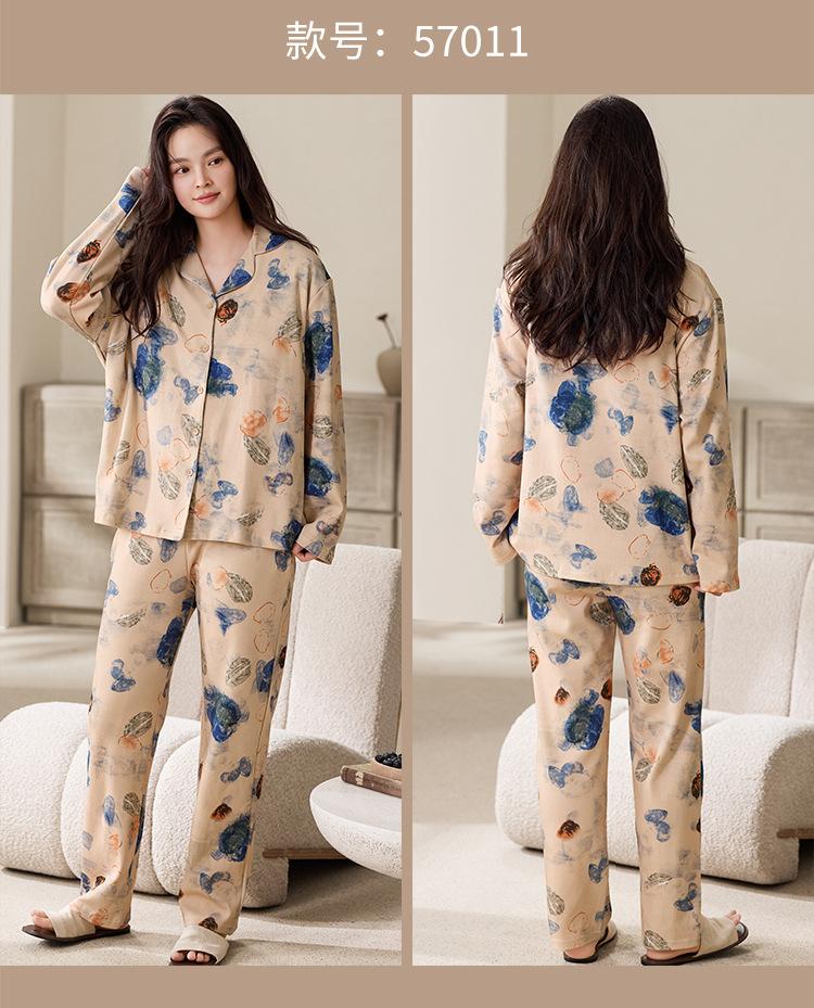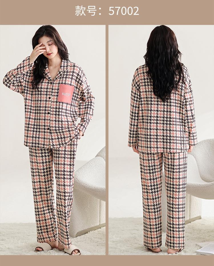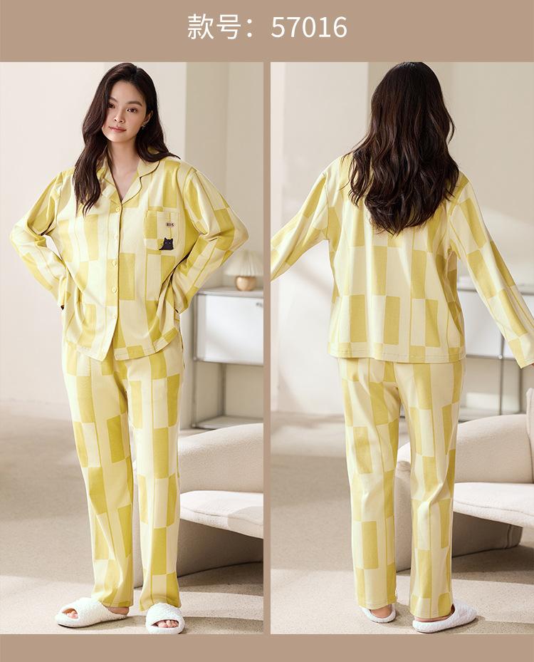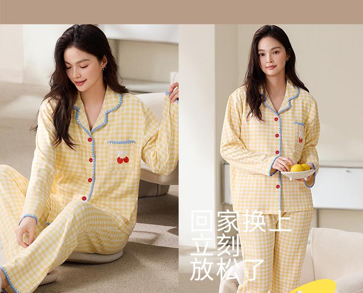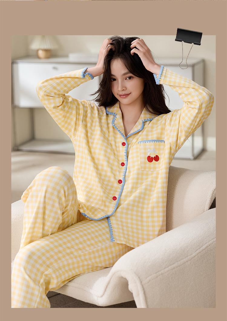 Pijama de Algodón Puro para Mujer Nuevo Estilo con Almohadillas en el Pecho Manga Larga Pantalón Largo Otoño e Invierno Ropa de Casa Dulce y Linda Se Puede Usar Afuera Set