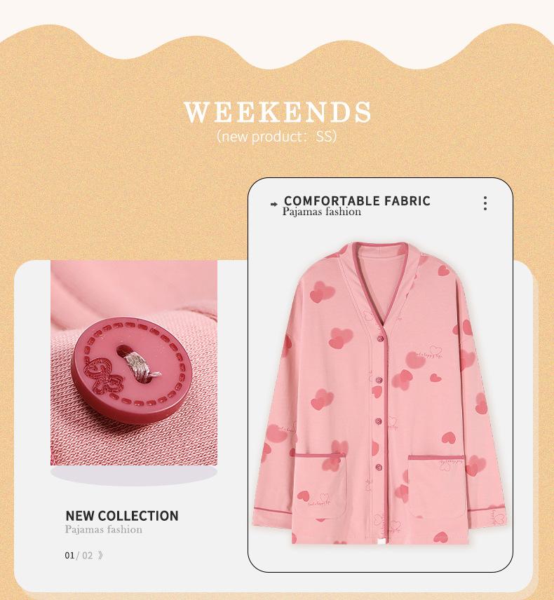Pijama para Mujer Primavera y Otoño Algodón Puro Cárdigan Manga Larga Otoño Dulce y Lindo Ropa de Casa 2025 Nuevo Traje Casual