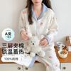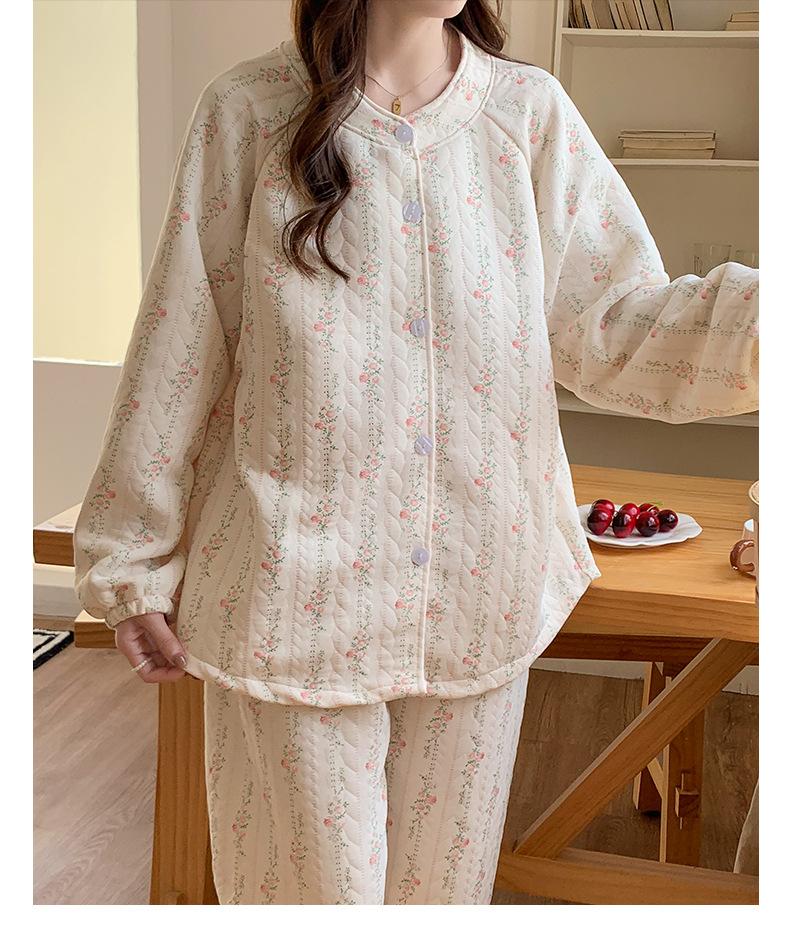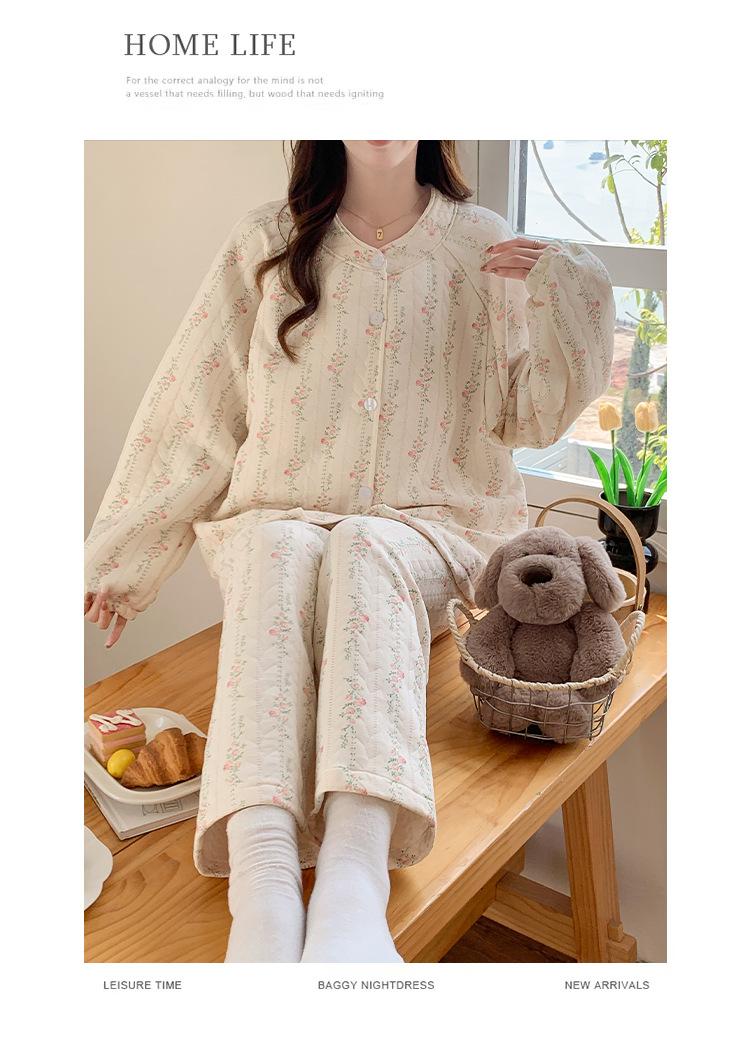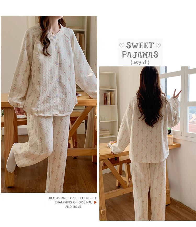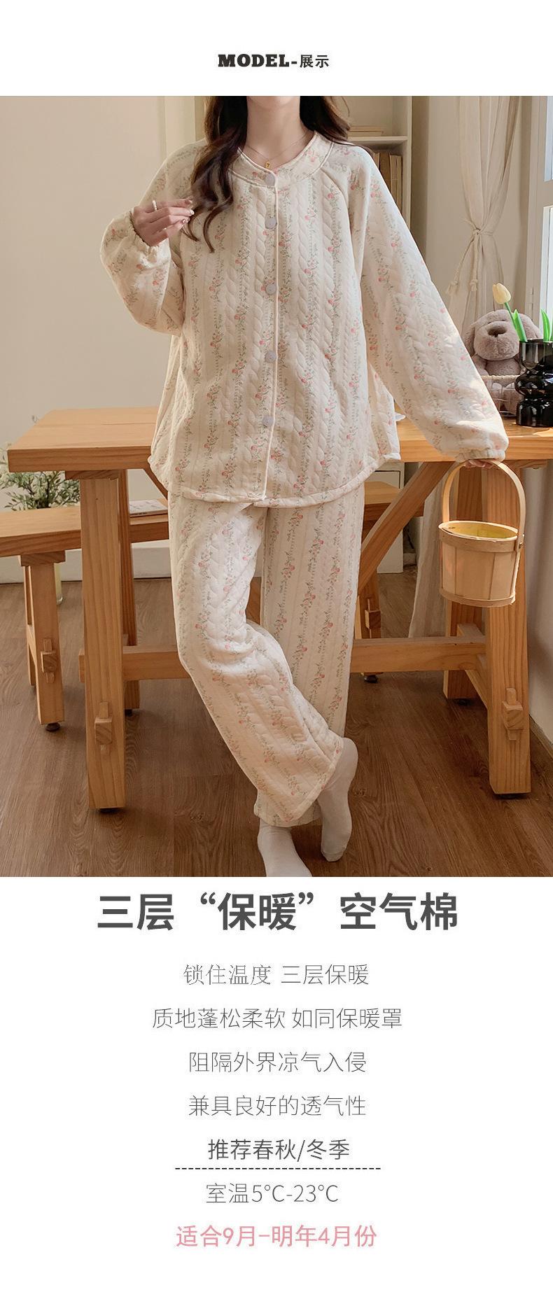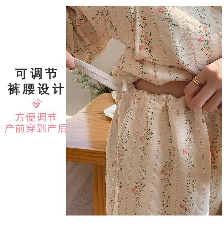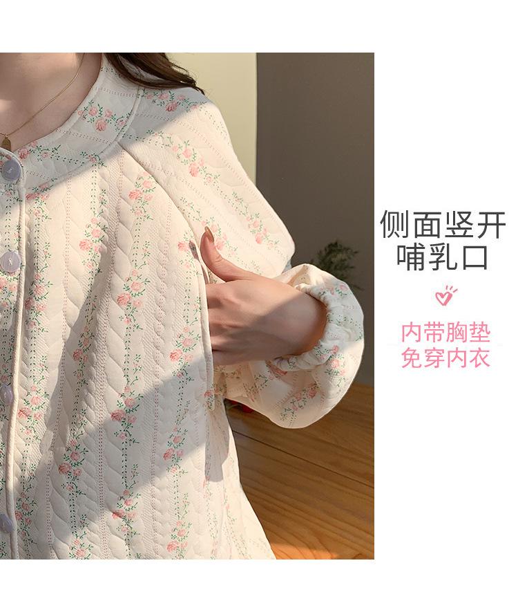 Happy Moon Ropa de Maternidad al por Mayor con Almohadillas para el Pecho Invierno Entrecapa Algodón Aire Pijama Postparto Maternidad Holgado Grueso Ropa para el Hogar