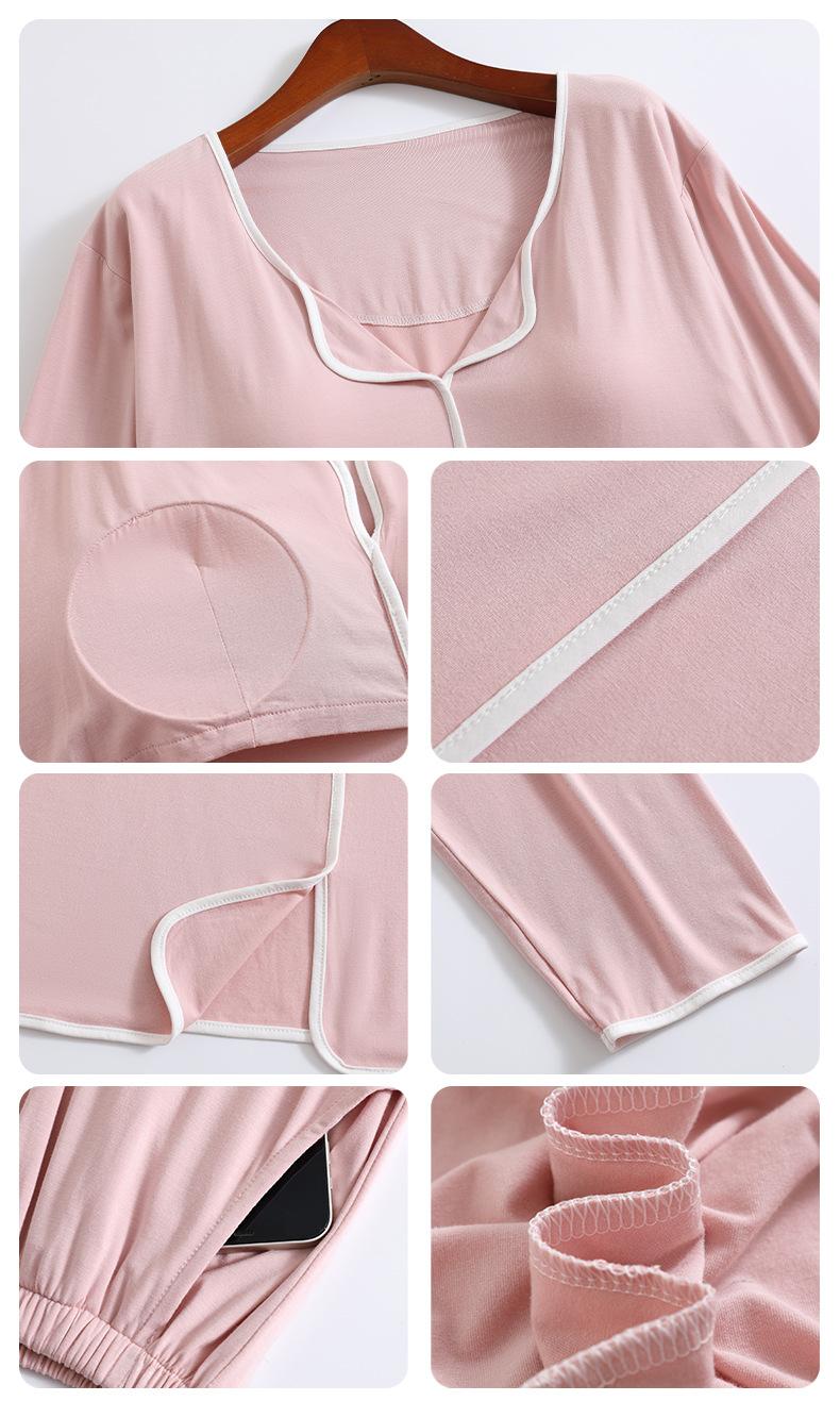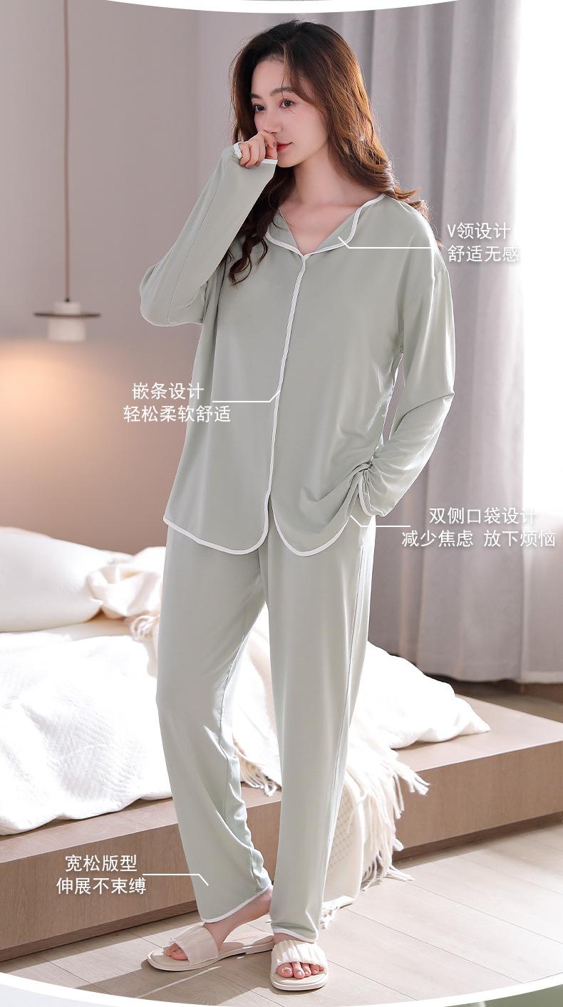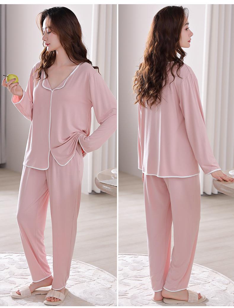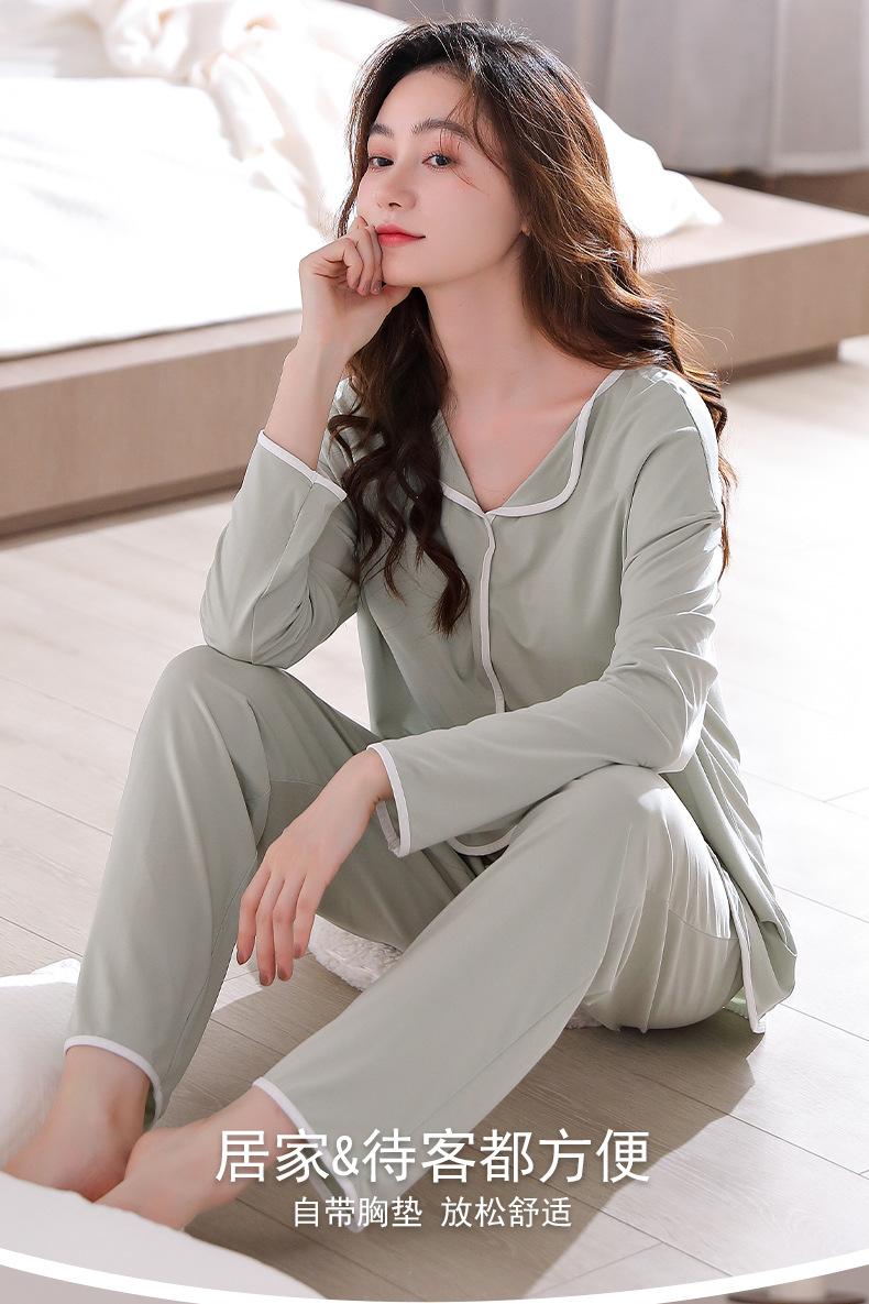 Pijama de mujer con almohadilla en el pecho primavera y otoño modal manga larga otoño delgado casual para exteriores talla grande traje de ropa para el hogar