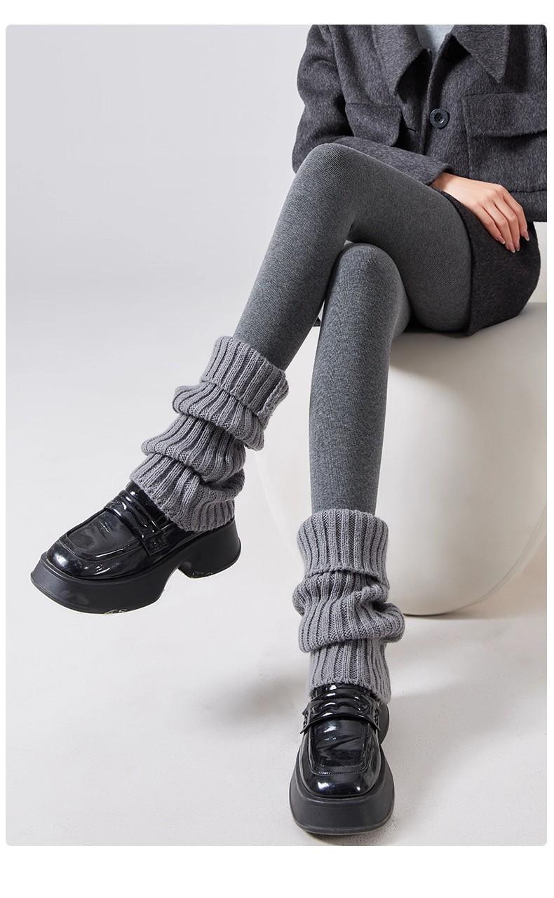 Japón Nueva Artesanía Pantimedias de Algodón con Talón en Ángulo Recto No Vinculante con Forma de Pie Otoño Invierno Adelgazantes Negro Gris Leggings Forrados de Lana