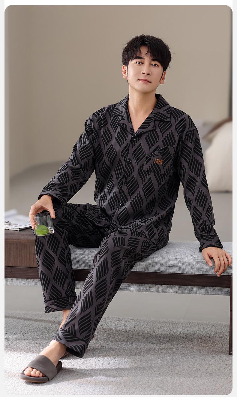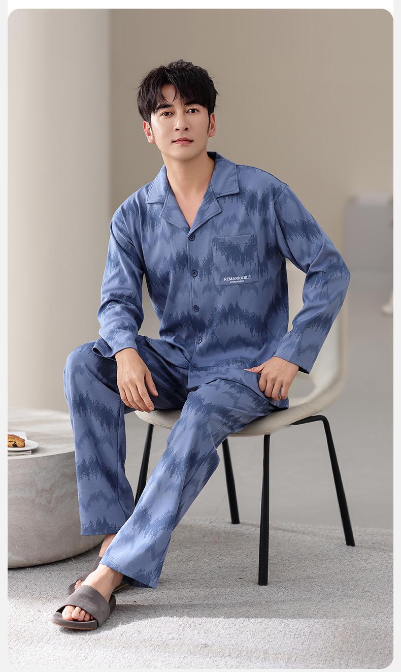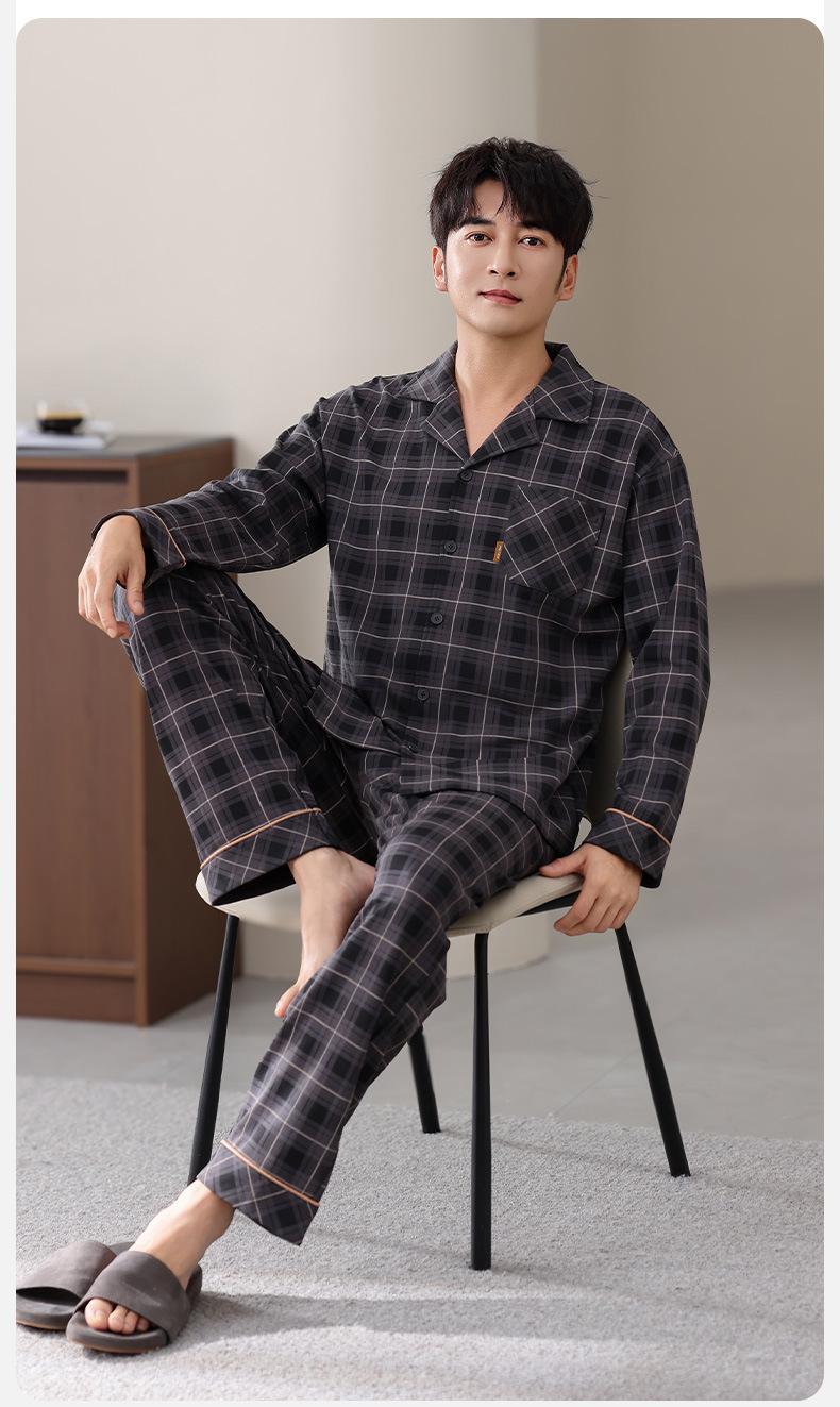 Pijamas para hombre Estilo de primavera y otoño Algodón puro Manga larga 2025 Nuevo estilo Ropa de exterior para hombre para otoño Conjunto de ropa para el hogar