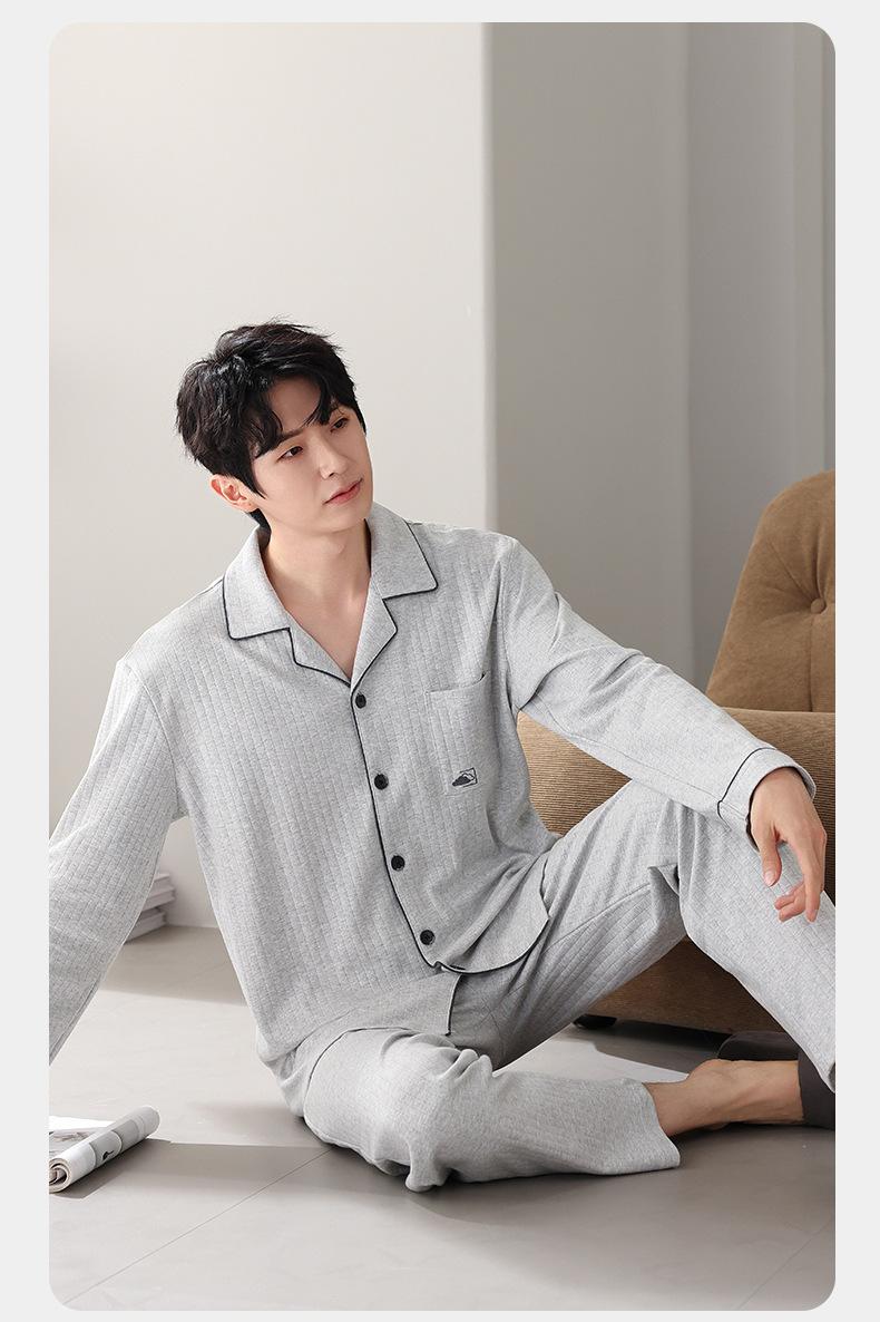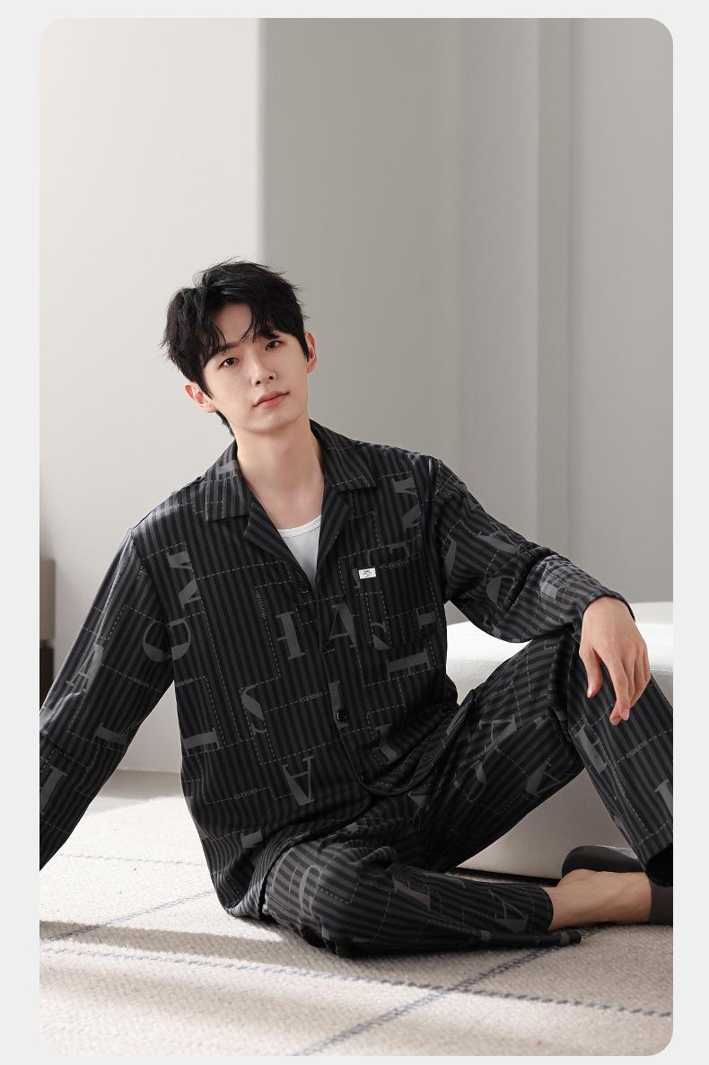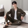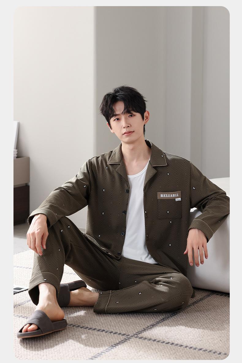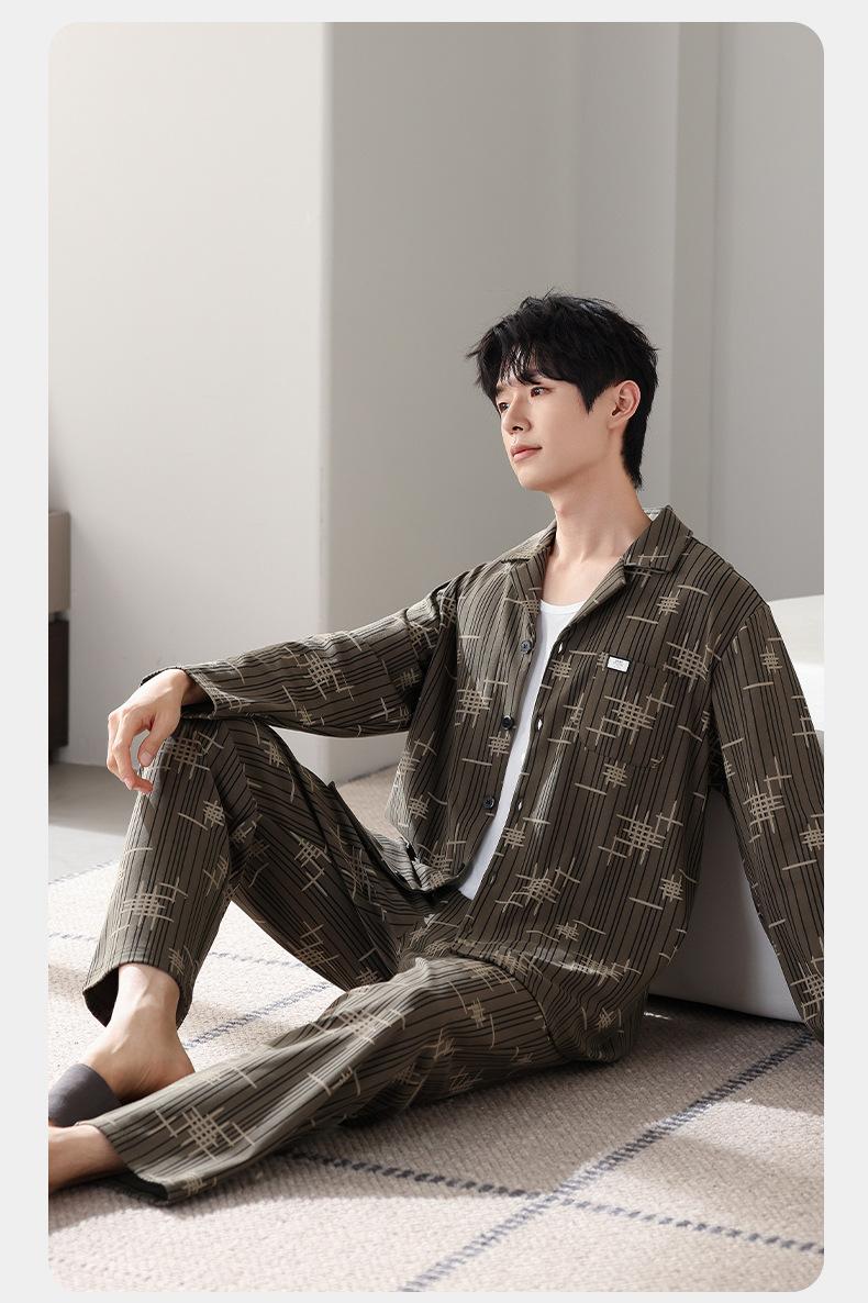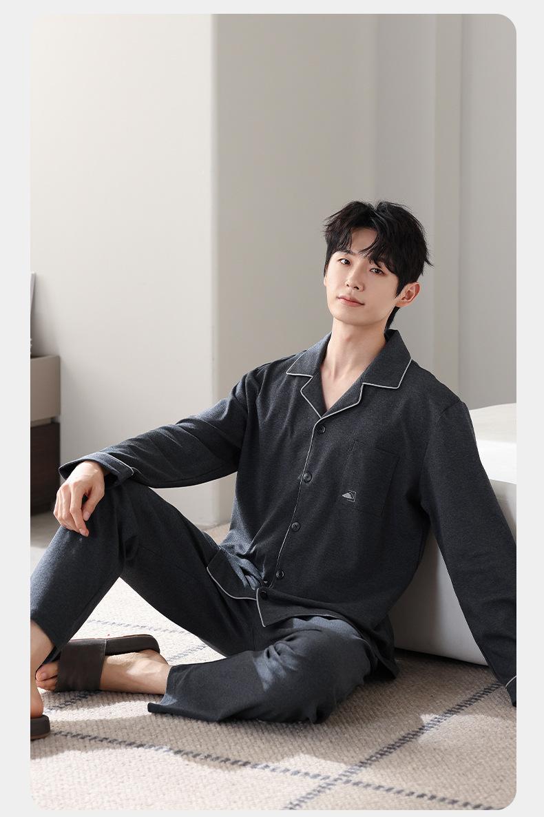 Pijama de Algodón Puro para Hombre, Estilo Primavera y Otoño, Manga Larga y Pantalón Largo, Modelo Nuevo 2025, Ropa de Dormir para Hombre de Otoño Todo Algodón, Se Puede Usar Afuera, Conjunto