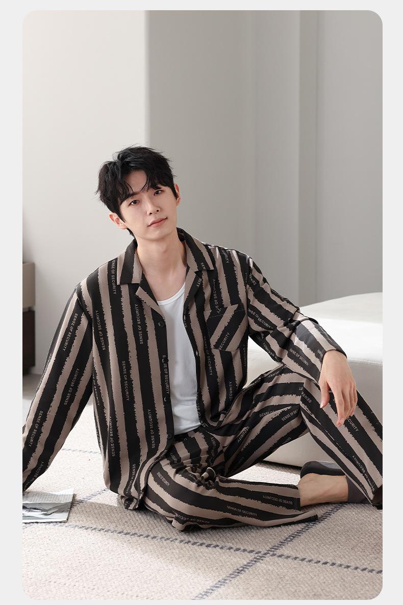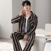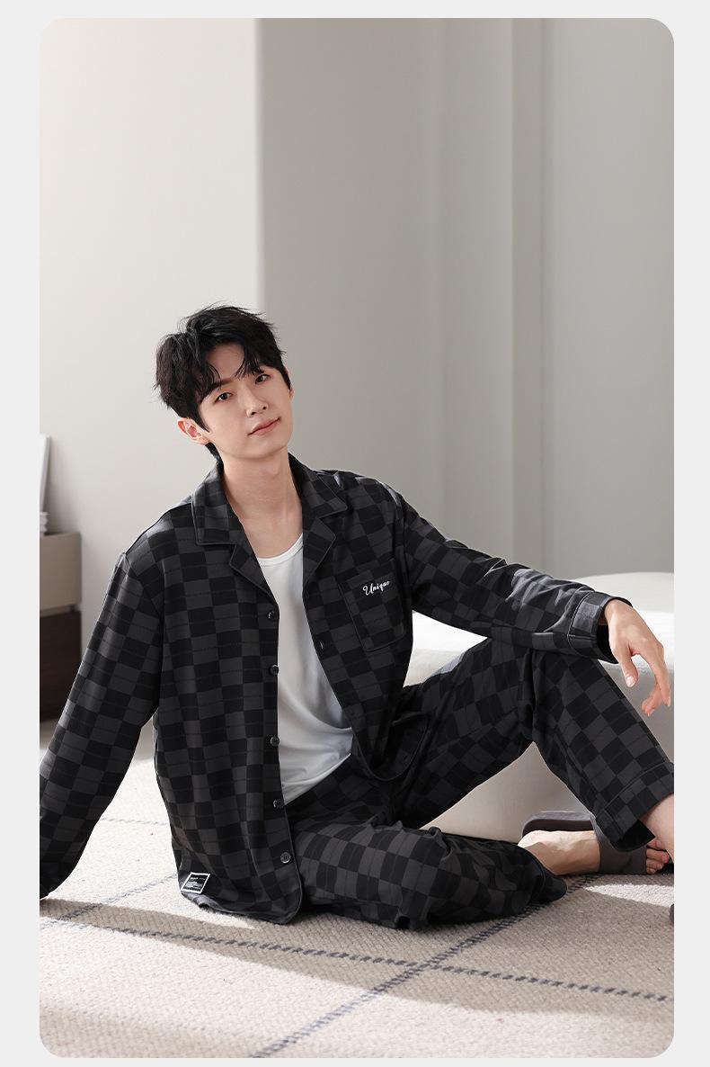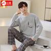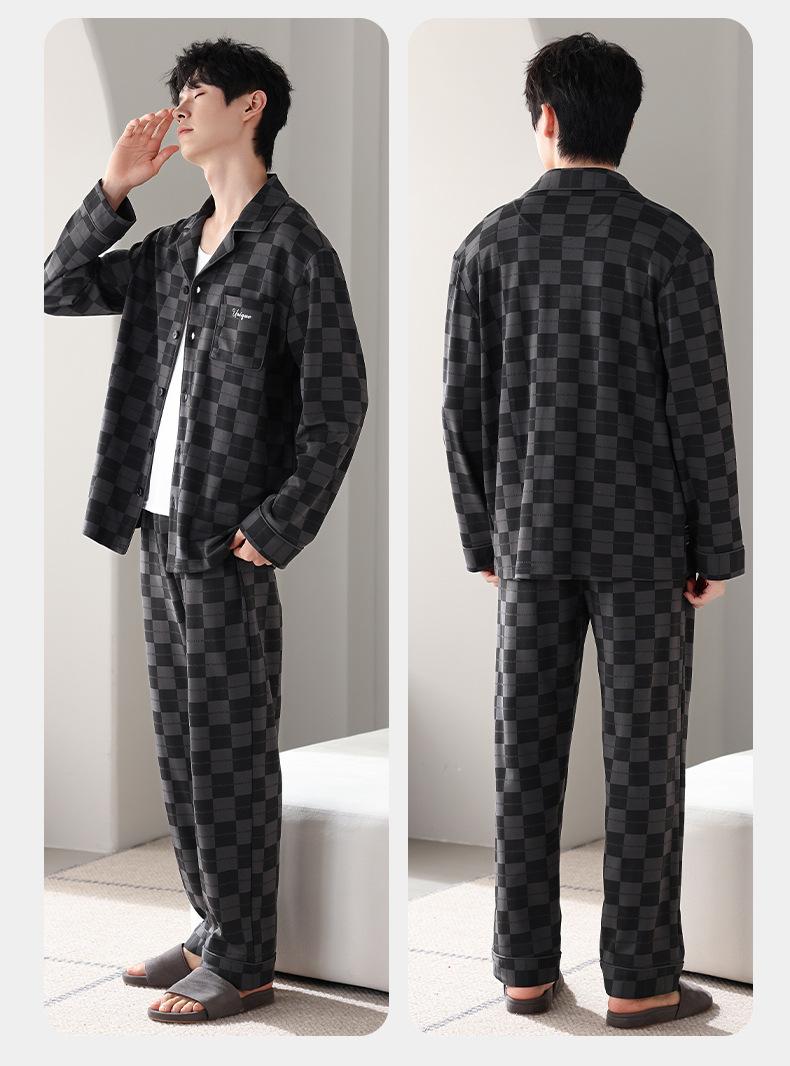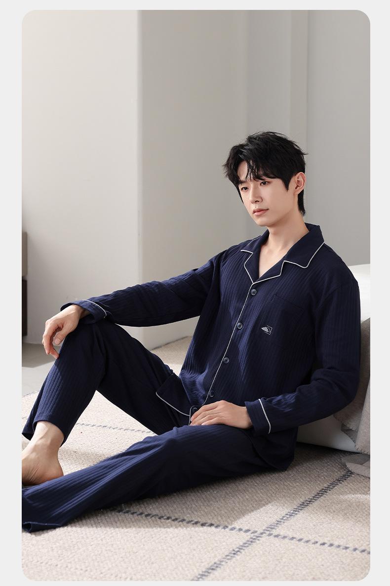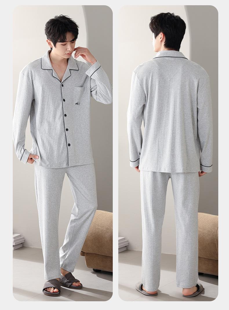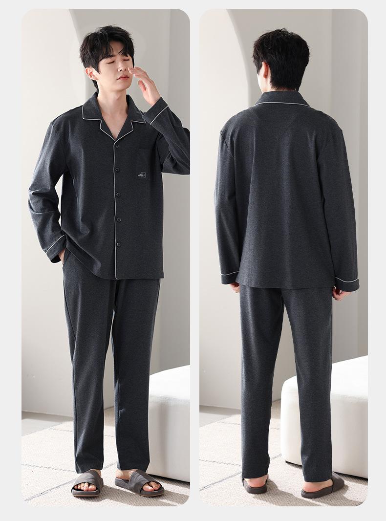 Pijama de Algodón Puro para Hombre, Estilo Primavera y Otoño, Manga Larga y Pantalón Largo, Modelo Nuevo 2025, Ropa de Dormir para Hombre de Otoño Todo Algodón, Se Puede Usar Afuera, Conjunto