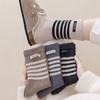 Calcetines de Lana de Media Caña para Mujer Otoño e Invierno Cálidos Moda Versátiles Calcetines Largos Serie Bloque de Color Rayado Etiqueta de Tela Calcetines Postparto