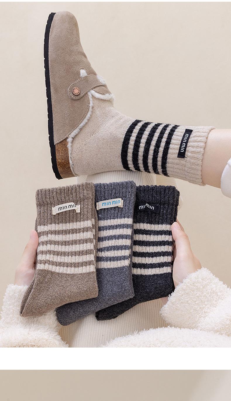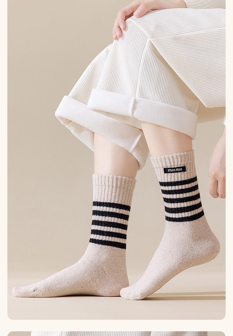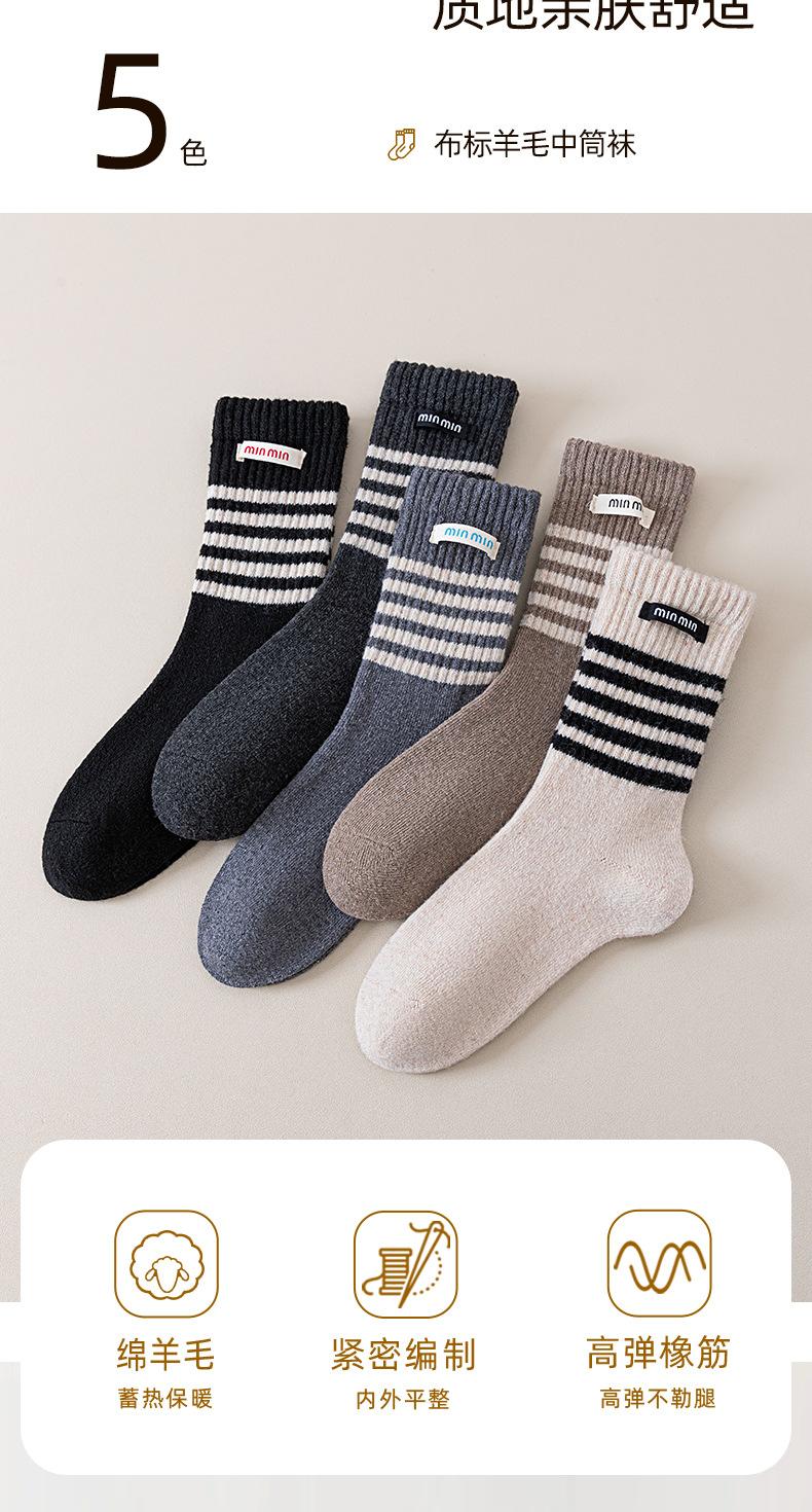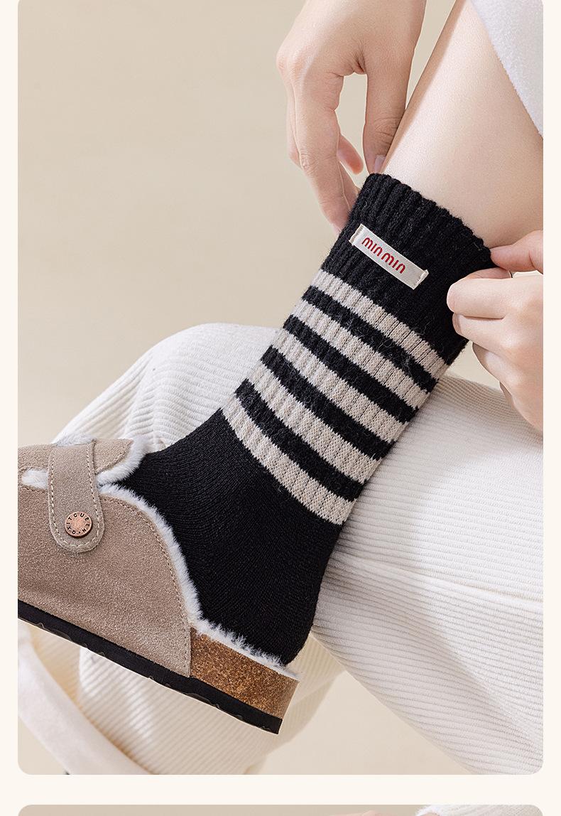 Compra Calcetines de Lana de Media Caña para Mujer Otoño e Invierno Cálidos Moda Versátiles Calcetines Largos Serie Bloque de Color Rayado Etiqueta de Tela Calcetines Postparto al por mayor en Joom.pro