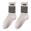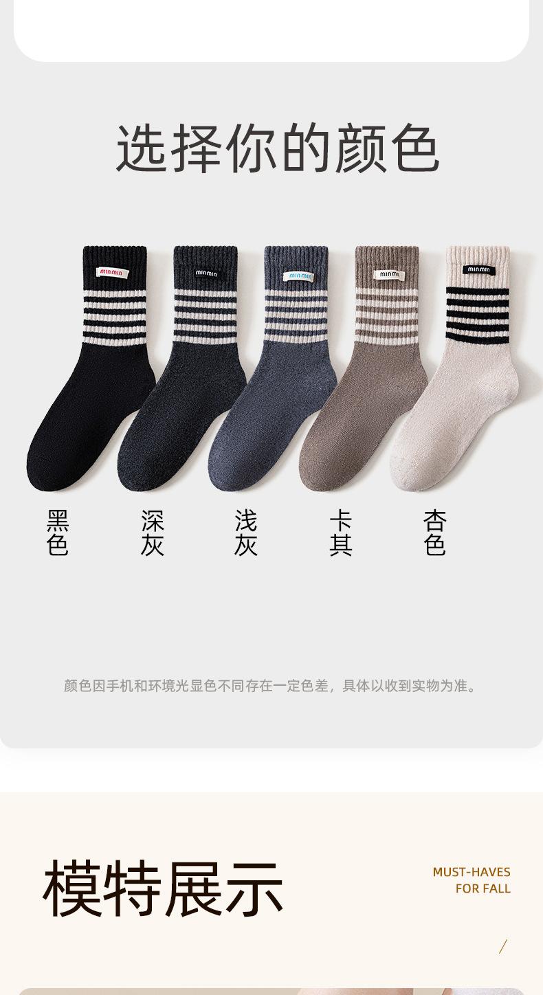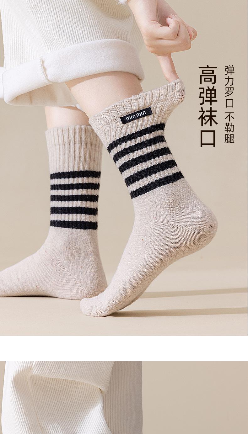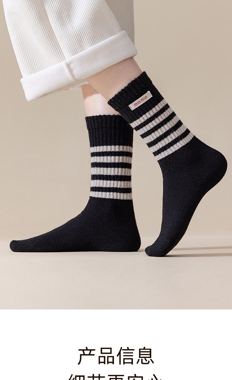 Compra Calcetines de Lana de Media Caña para Mujer Otoño e Invierno Cálidos Moda Versátiles Calcetines Largos Serie Bloque de Color Rayado Etiqueta de Tela Calcetines Postparto al por mayor en Joom.pro