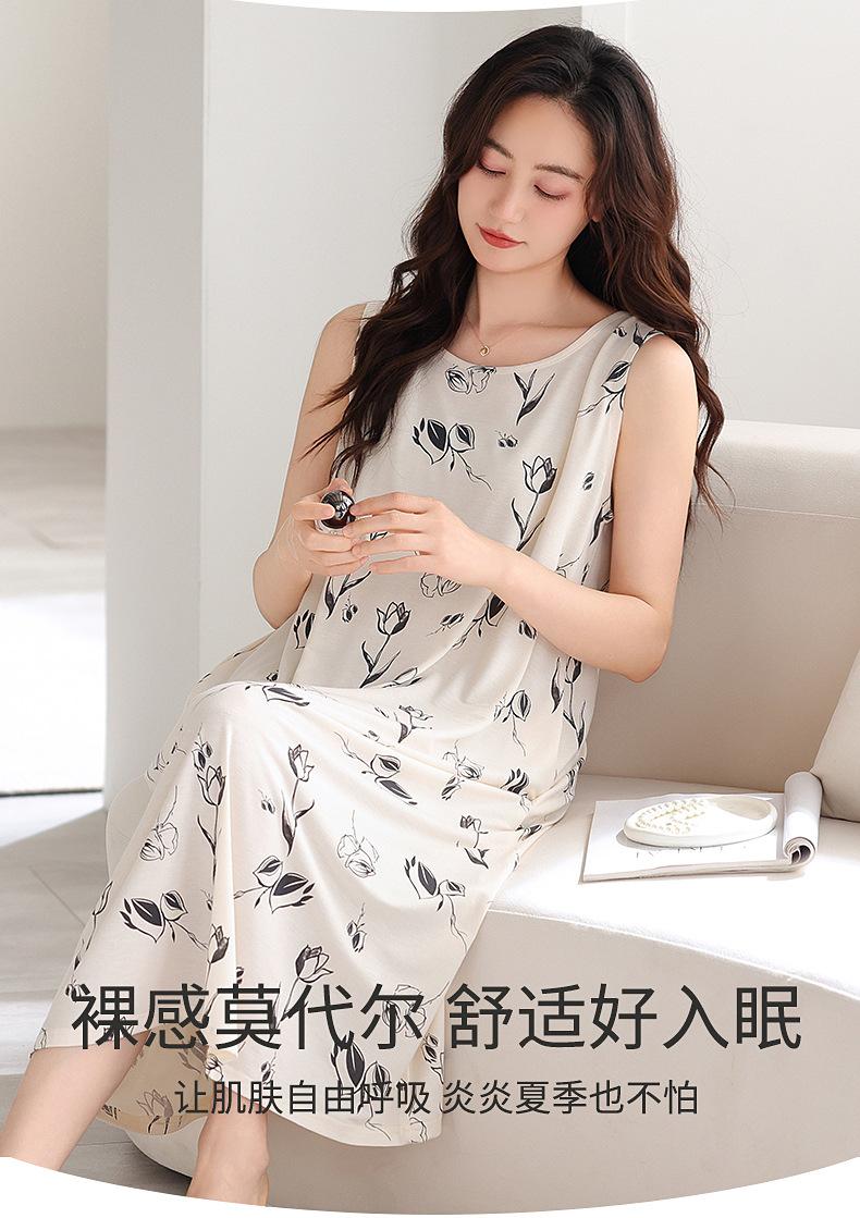 Camisón Modal para Mujer Verano 2025 Nuevo Estilo Chaleco con Almohadillas en el Busto para Mujer Verano Delgado Ropa para el Hogar Pijama sin Mangas
