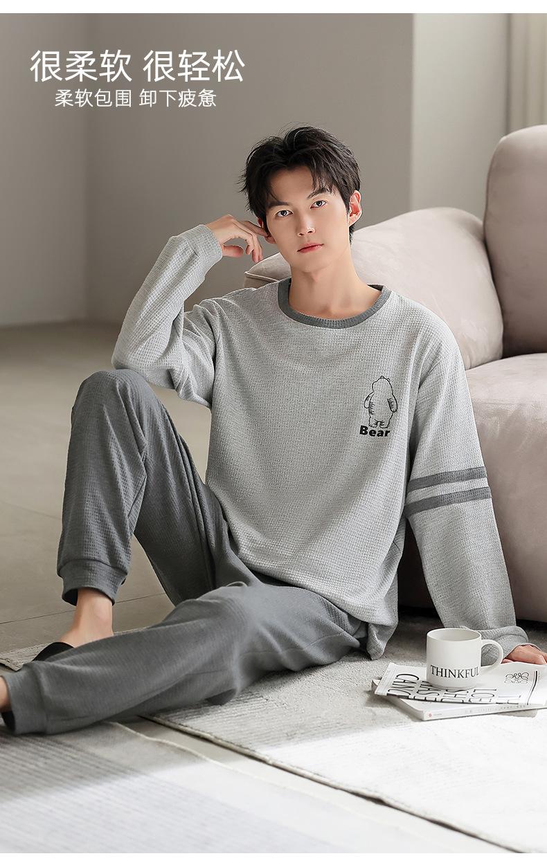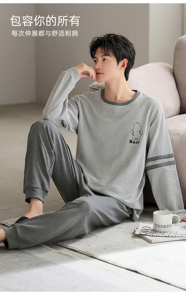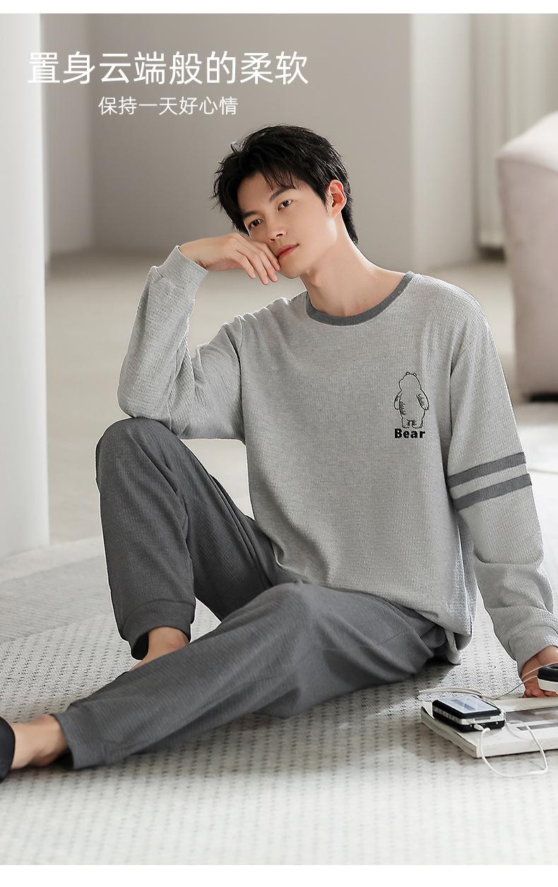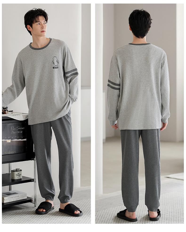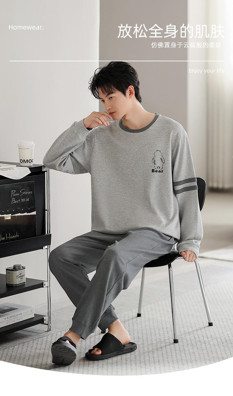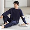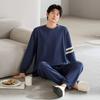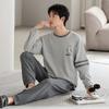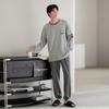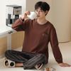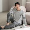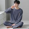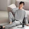 2025 Primavera Nuevo Jersey de Algodón Puro de Doble Vista Suelto Cómodo Pijama Manga Larga Pantalón Largo Conjunto de Dos Piezas Conjunto para Hombre