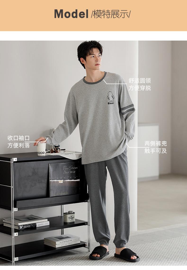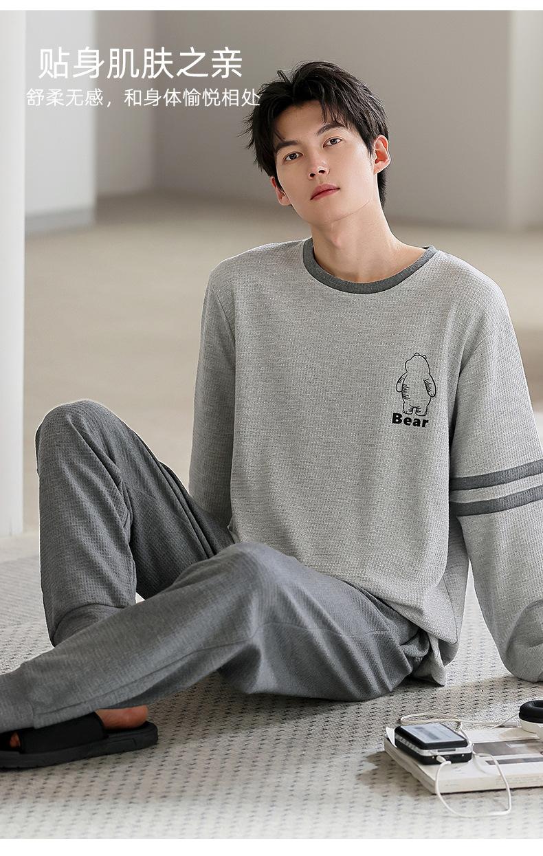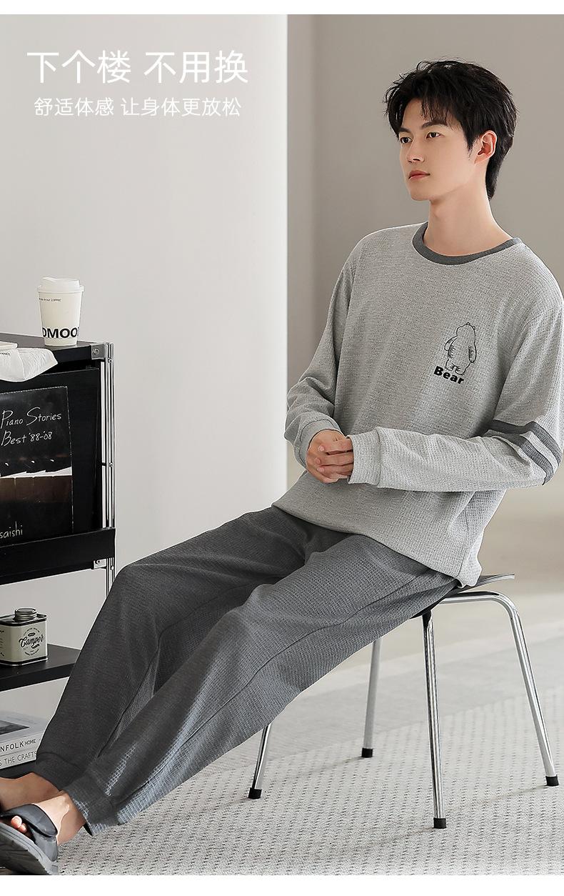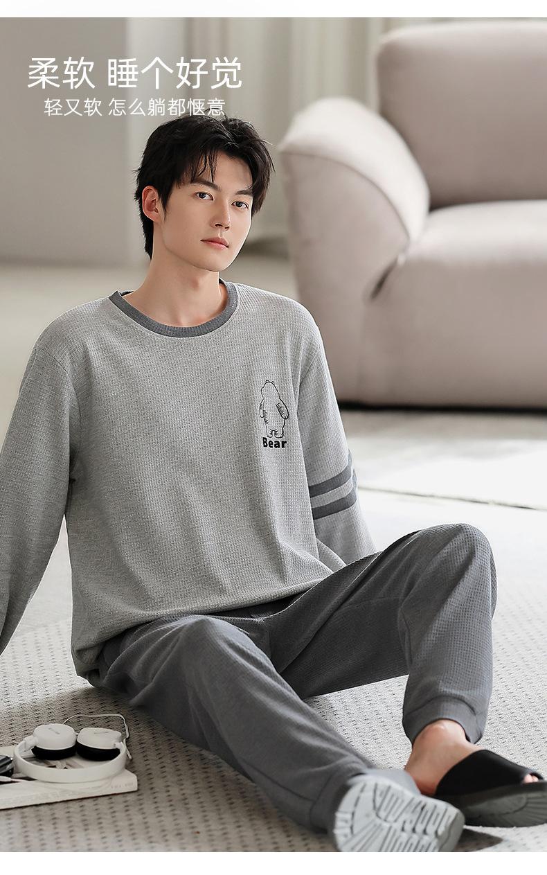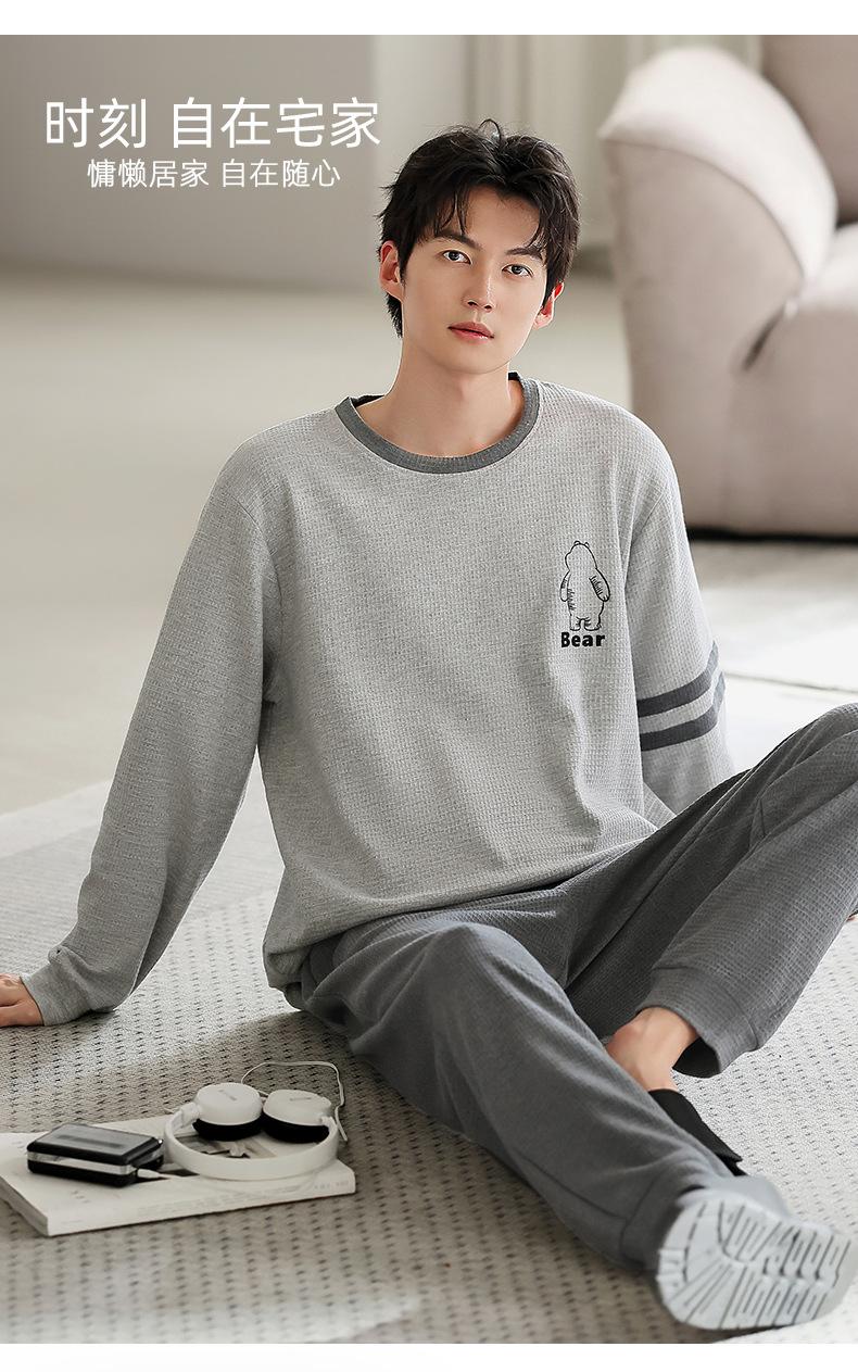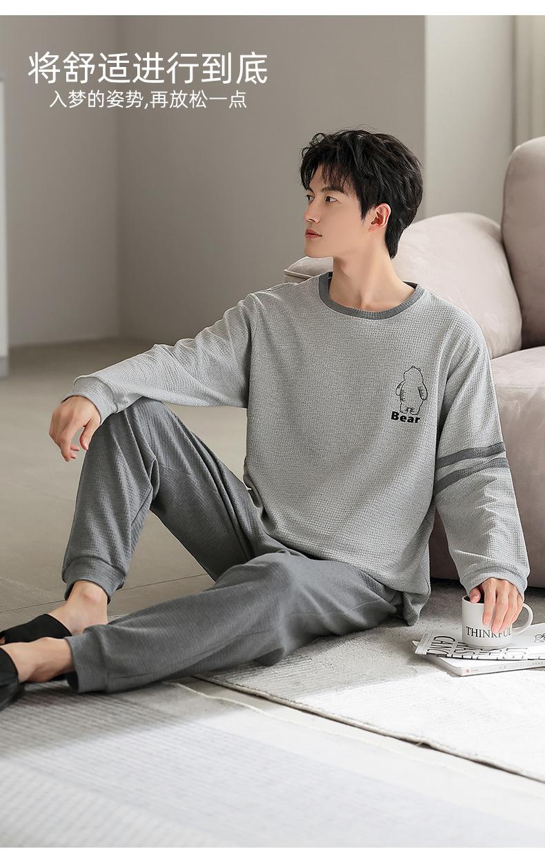 2025 Primavera Nuevo Jersey de Algodón Puro de Doble Vista Suelto Cómodo Pijama Manga Larga Pantalón Largo Conjunto de Dos Piezas Conjunto para Hombre