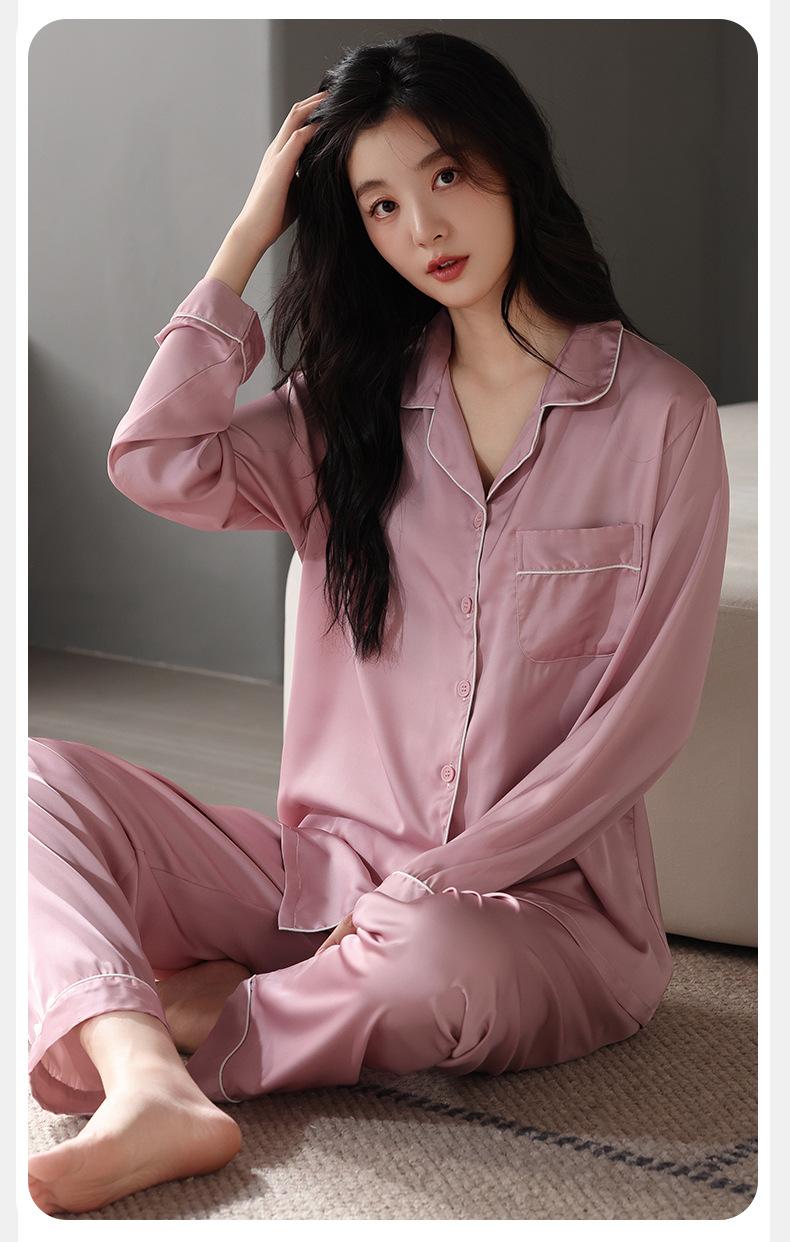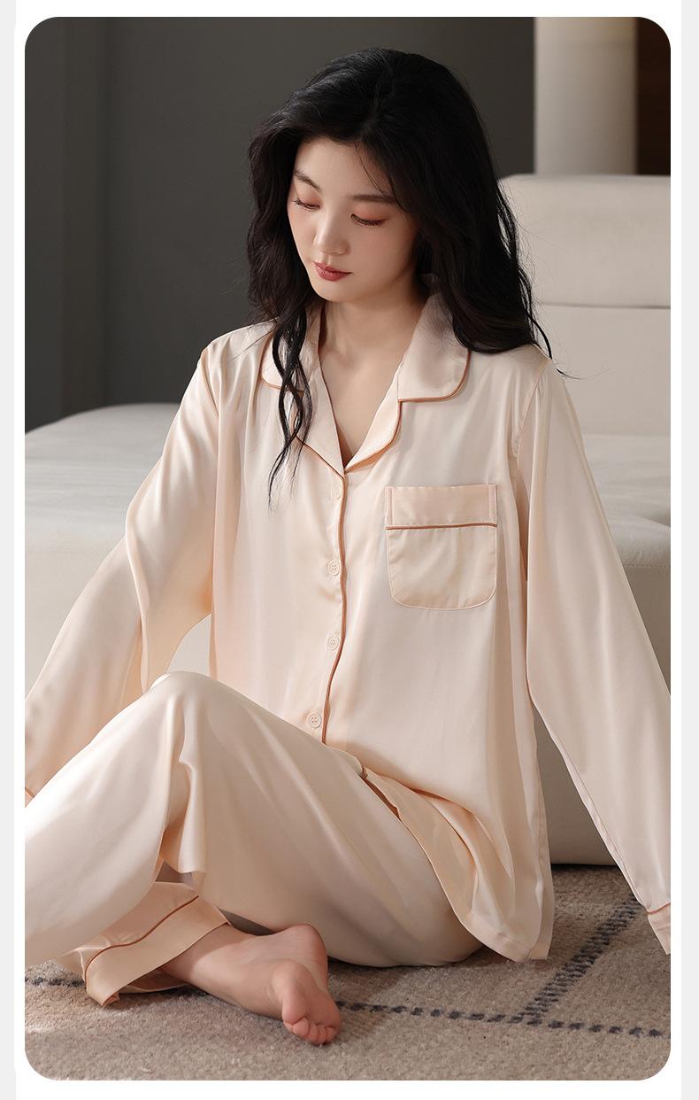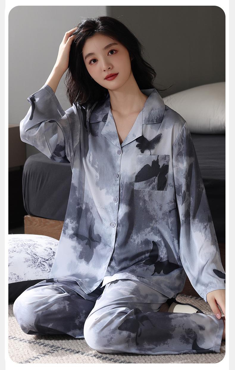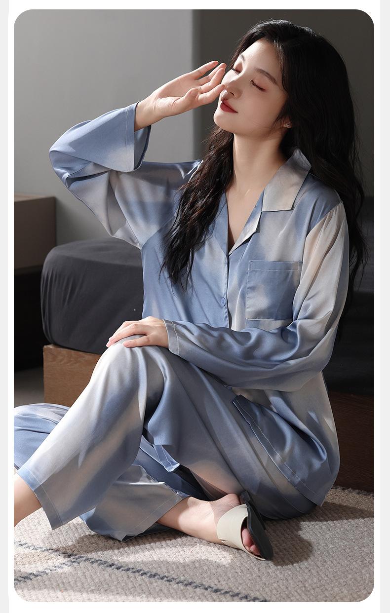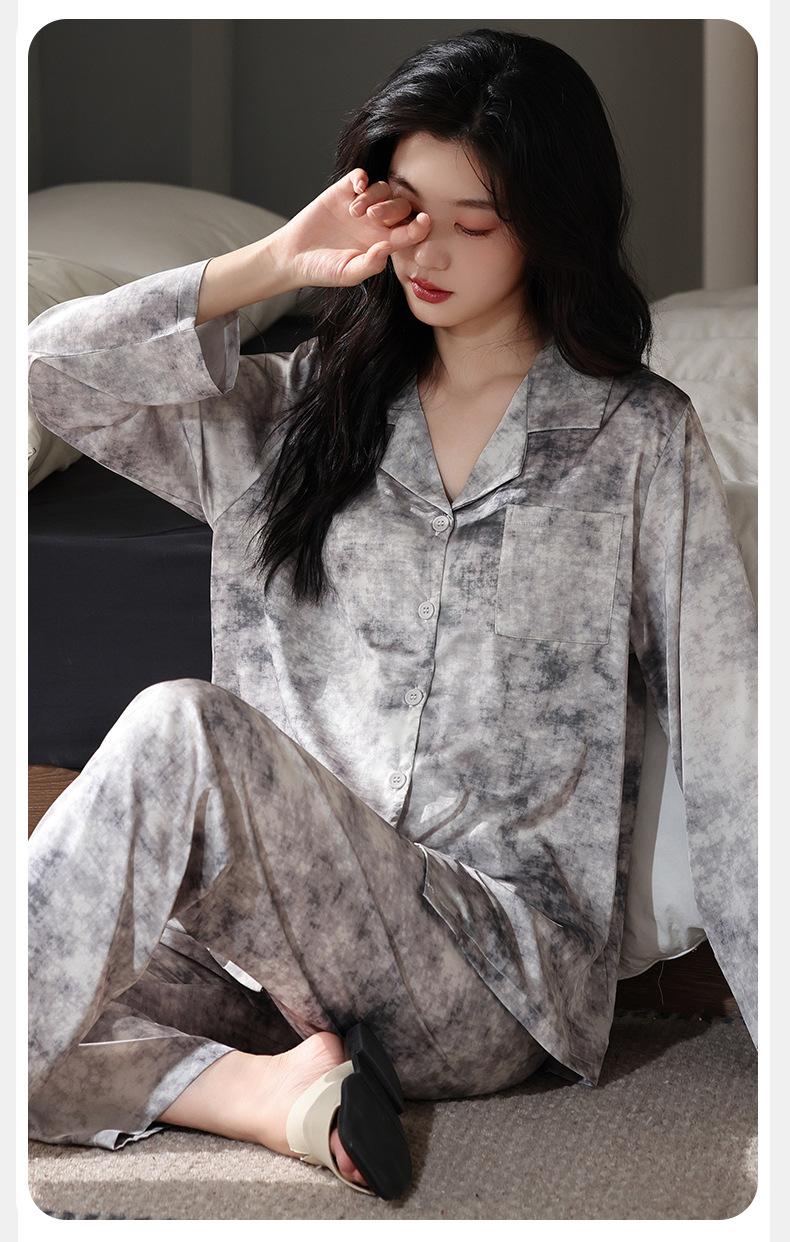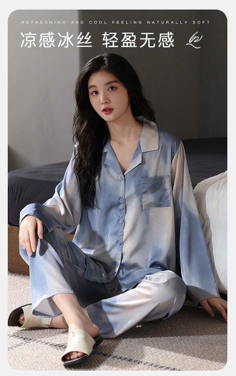 Pijama de Seda de Hielo para Mujer Primavera y Otoño Manga Larga Delgada Verano Alta Gama 2025 Nuevo Conjunto de Ropa para Casa de Seda Simulada