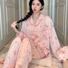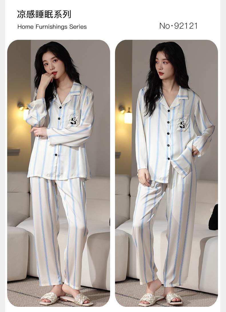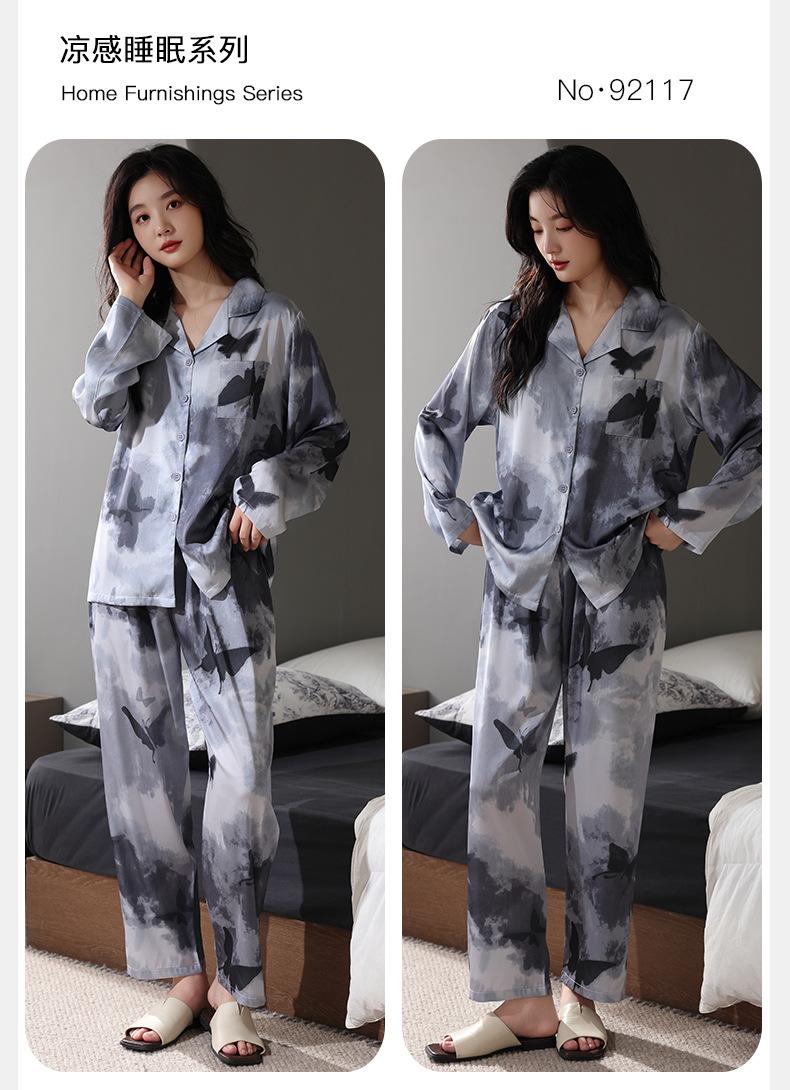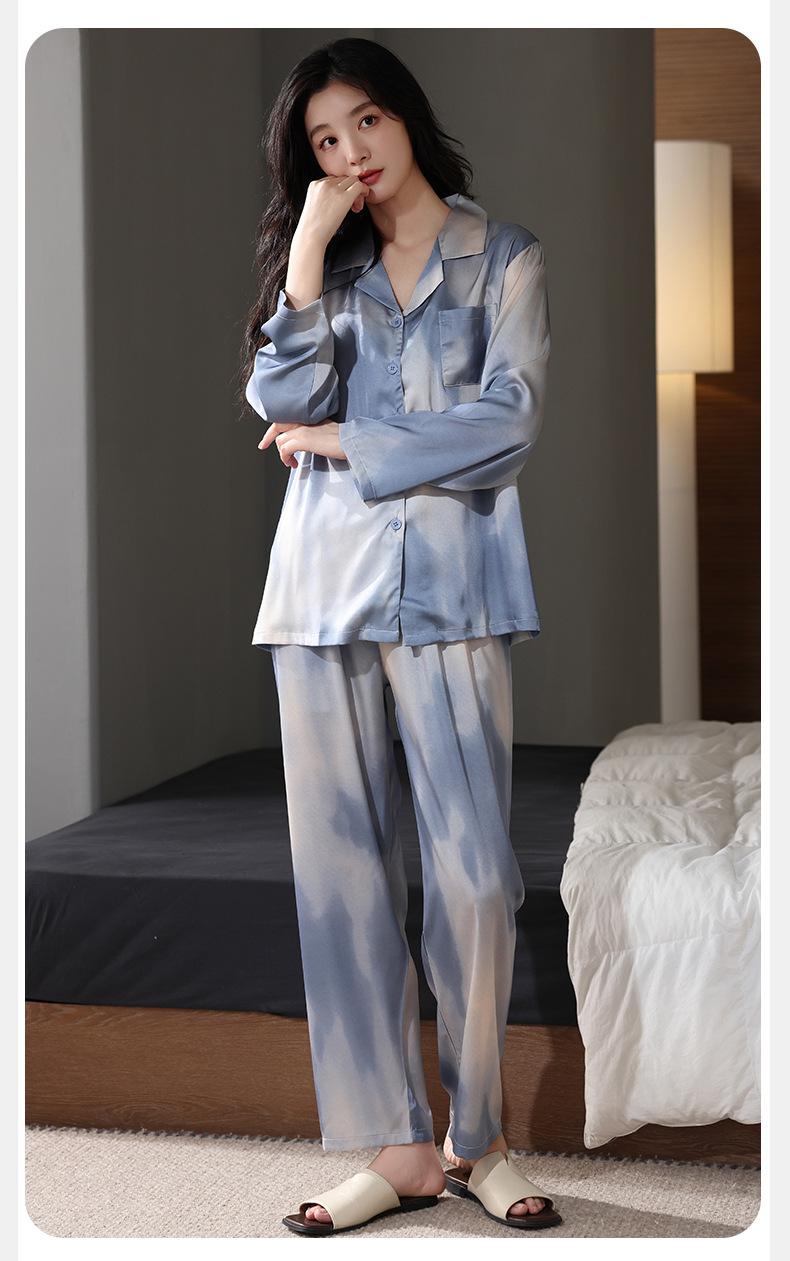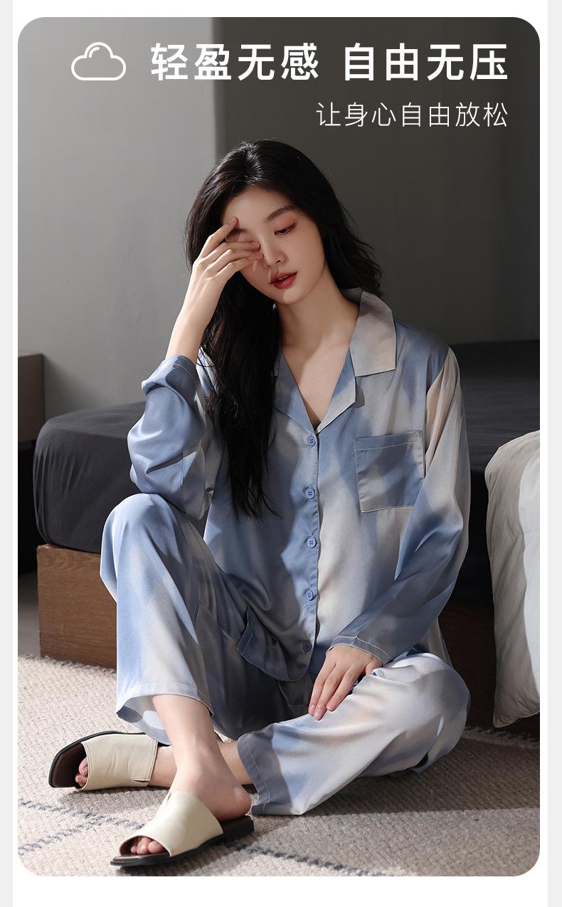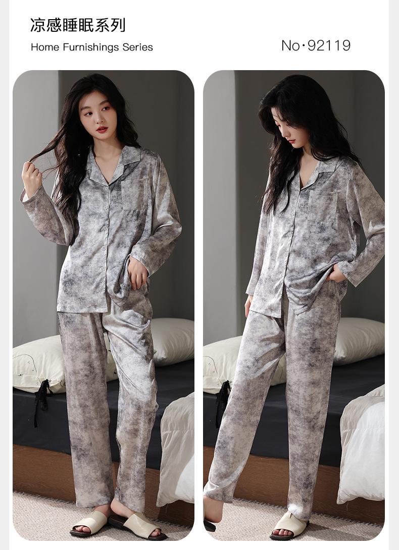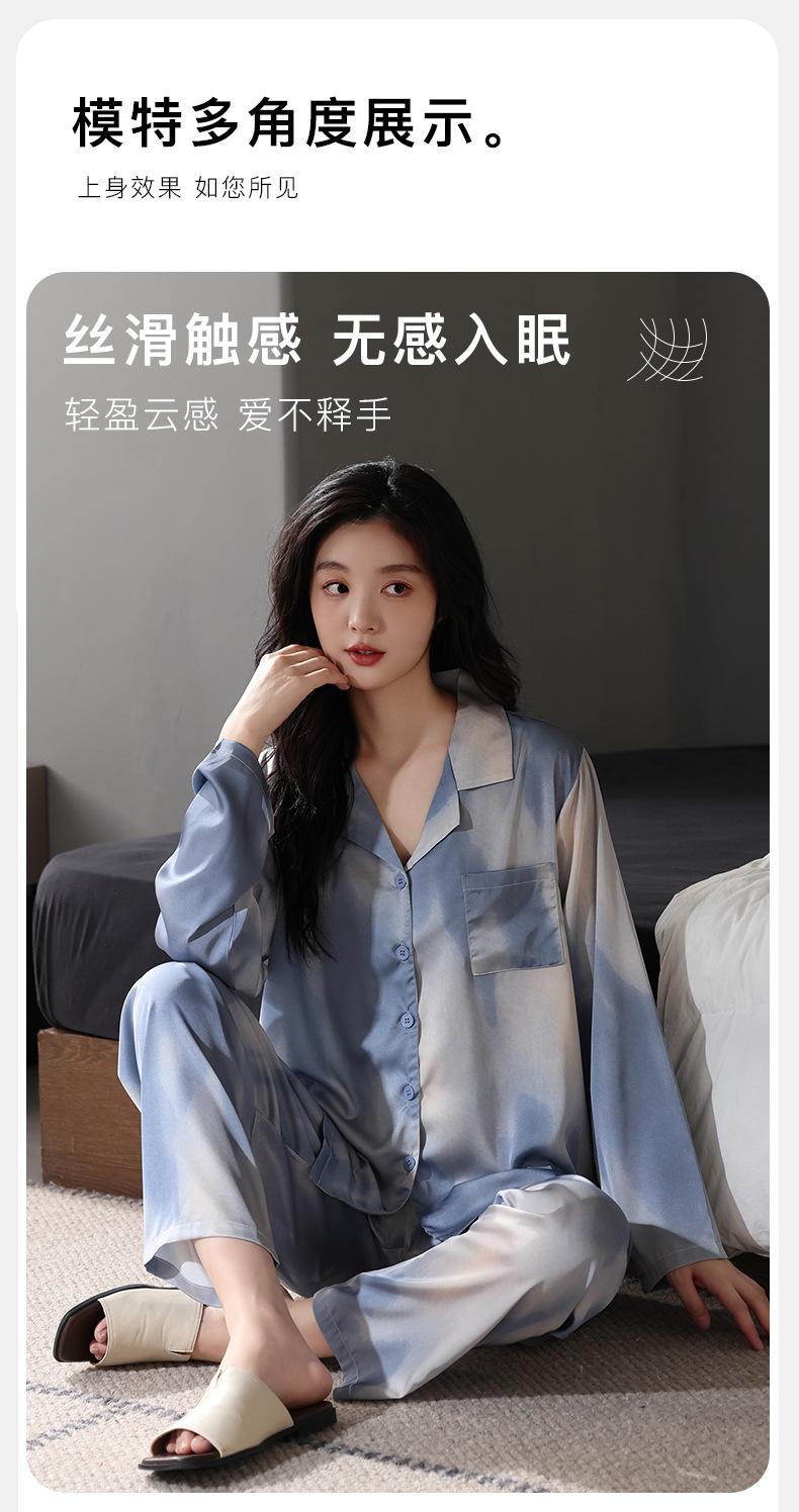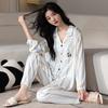 Pijama de Seda de Hielo para Mujer Primavera y Otoño Manga Larga Delgada Verano Alta Gama 2025 Nuevo Conjunto de Ropa para Casa de Seda Simulada