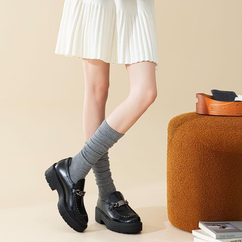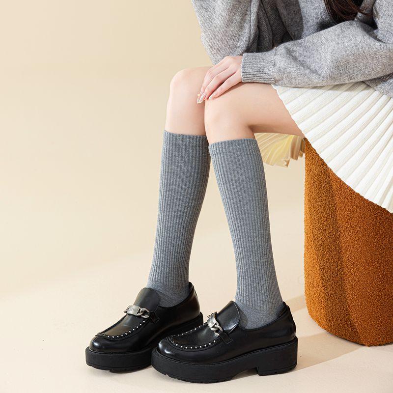Otoño e invierno micro-presión jk calcetines largos de mujer adelgazantes calcetines largos hasta la pierna calcetines altos hasta la rodilla de moda ins japoneses calcetines de pantorrilla cálidos para mujer