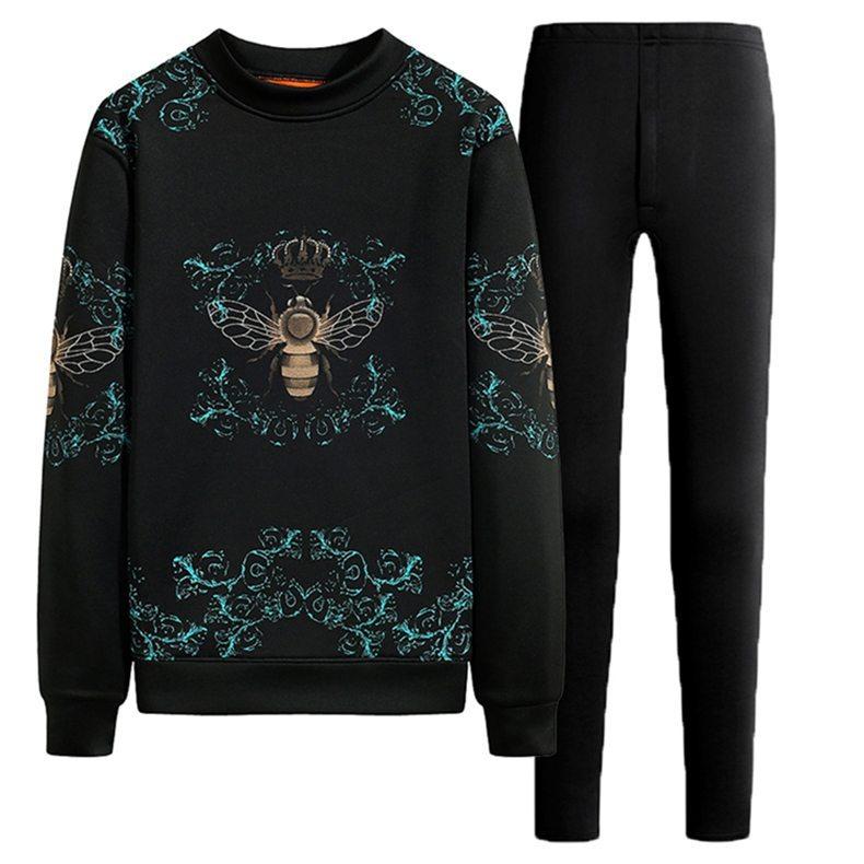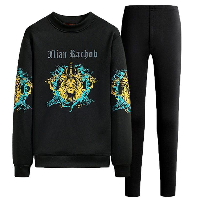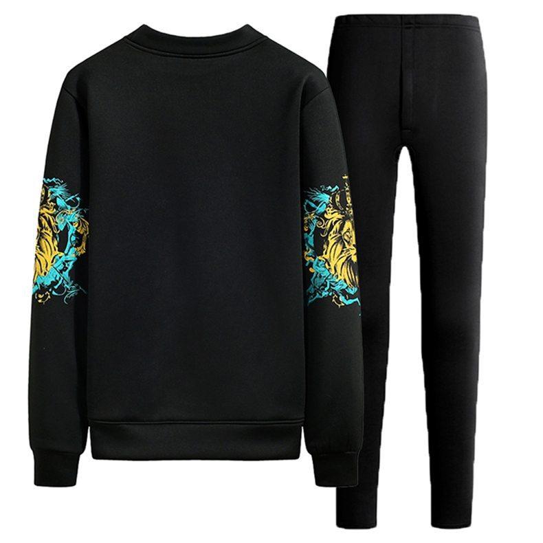 Nuevo Conjunto Casual Deportivo de Otoño para Hombre, Ropa Interior de Manga Larga, Moda Trendy, Sudadera Holgada de Cuello Redondo para Hombre, Conjunto de Dos Piezas