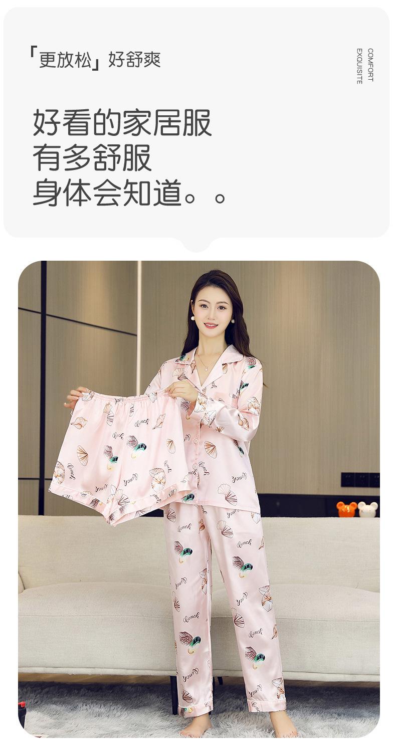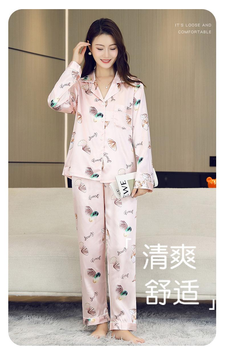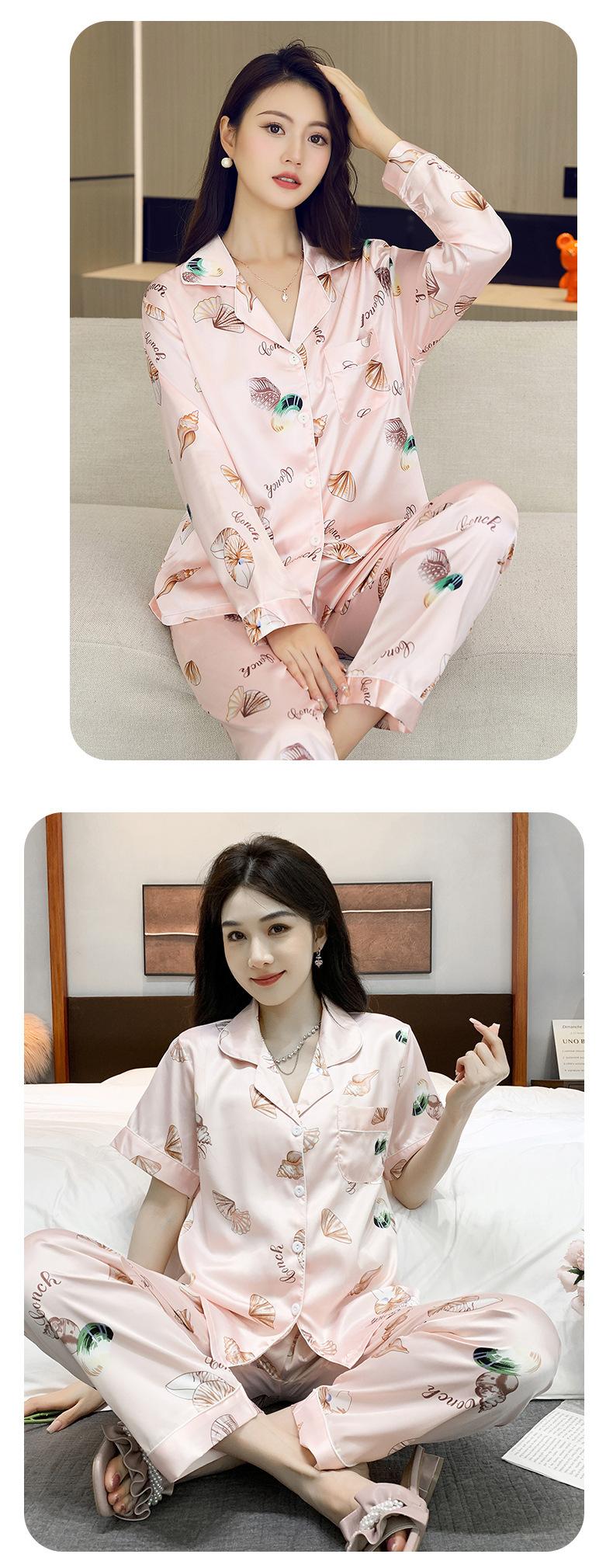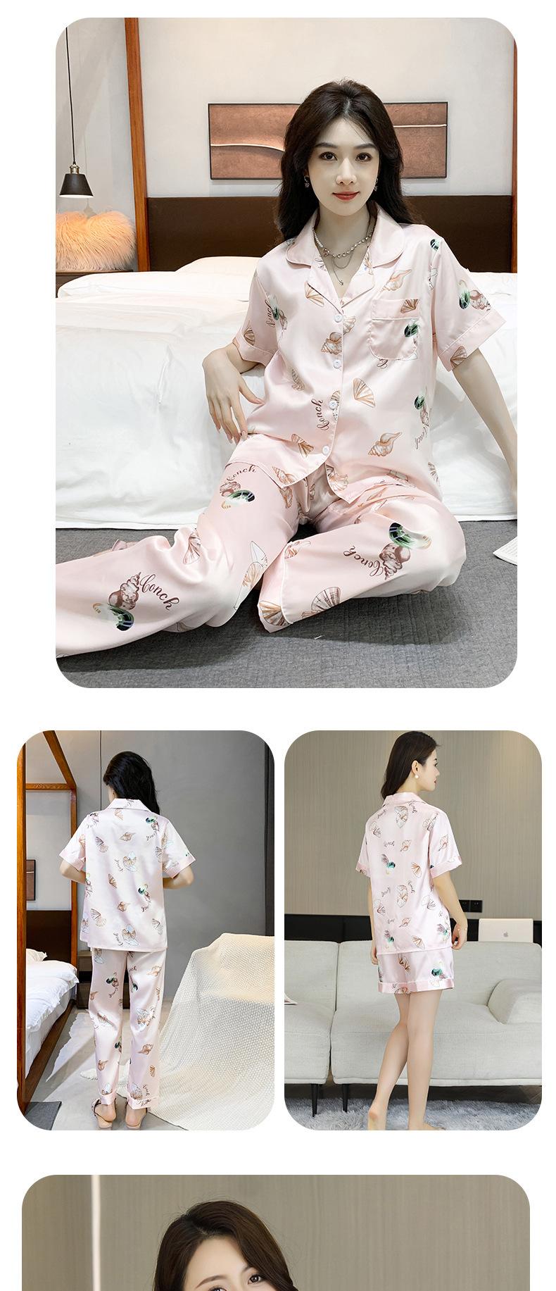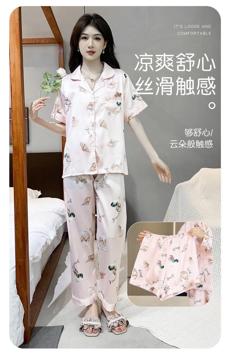 Compra Conjunto de Pijama de Manga Corta y Pantalón Largo de Seda de Hielo para Mujer, Estilo Primavera Verano, Estilo Delgado de Seda Imitación, Puede Usarse Fuera, Ropa para el Hogar, Sensación Holgada de Alta Gama al por mayor en Joom.pro