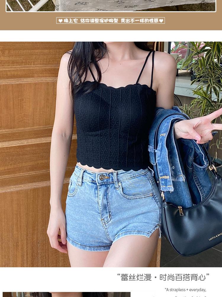Ropa interior de espalda hermosa anti-exposición chaleco interior con tirantes para mujer verano para usar afuera con almohadilla en el pecho top de tubo camisa básica top de deseo puro