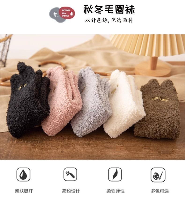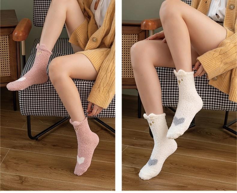 Calcetines de forro polar coral para mujer otoño e invierno calcetines de tubo medio más terciopelo gruesos cálidos calcetines de confinamiento para el hogar para dormir calcetines largos calcetines de piso