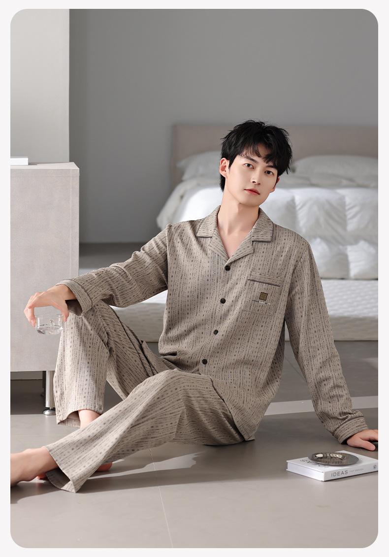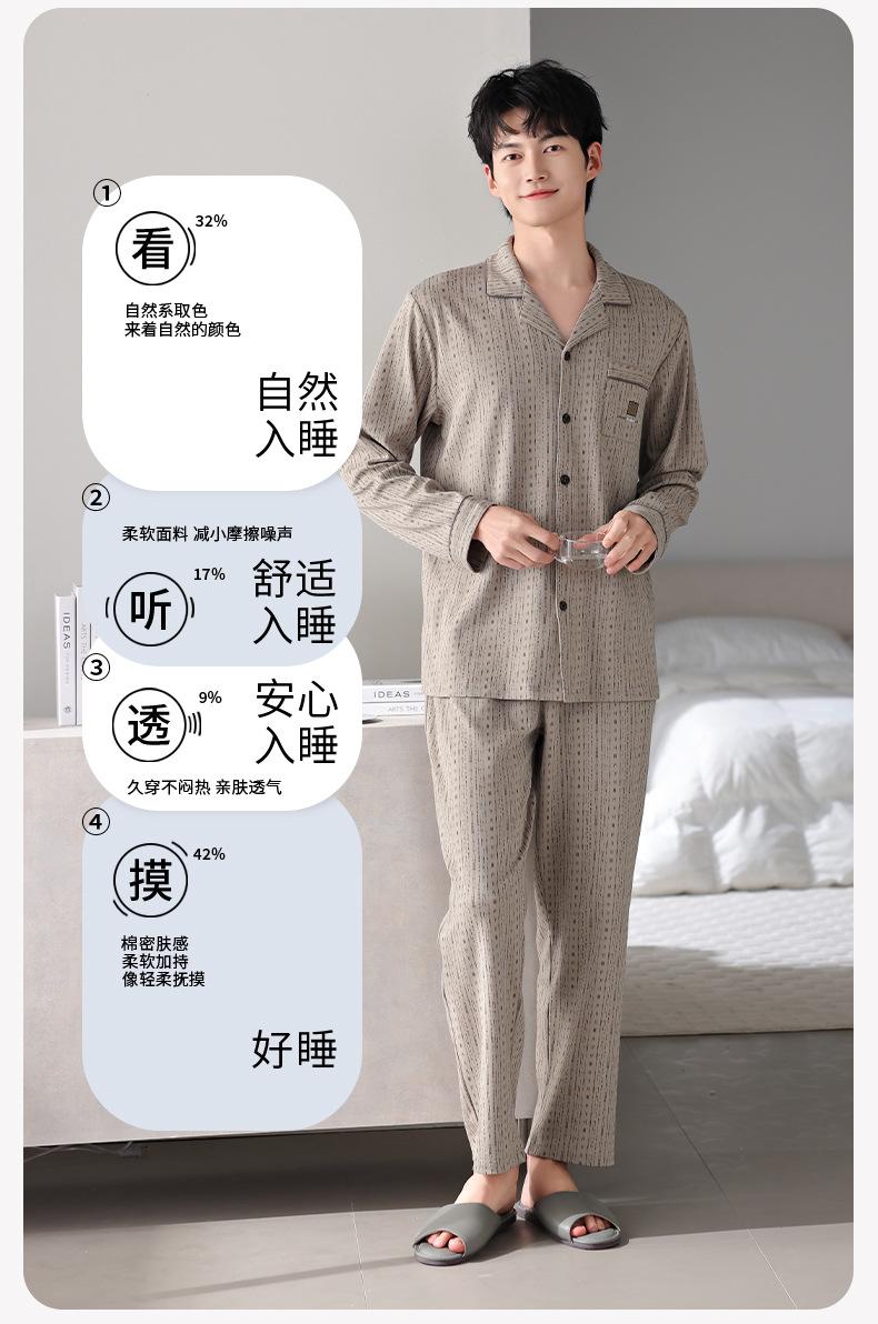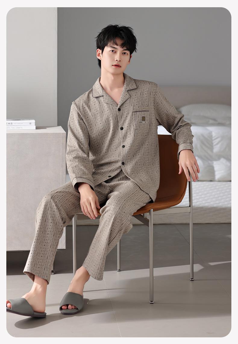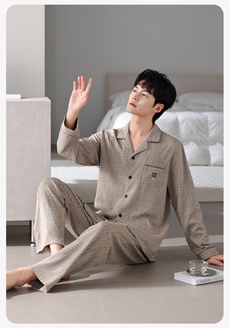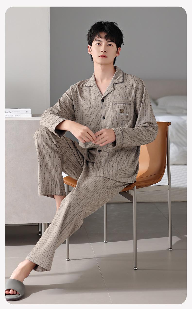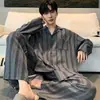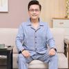 Pijamas para hombre Primavera y Otoño Algodón puro Traje cárdigan de manga larga a rayas Suelto Casual talla grande Ropa para el hogar para papás de mediana edad