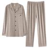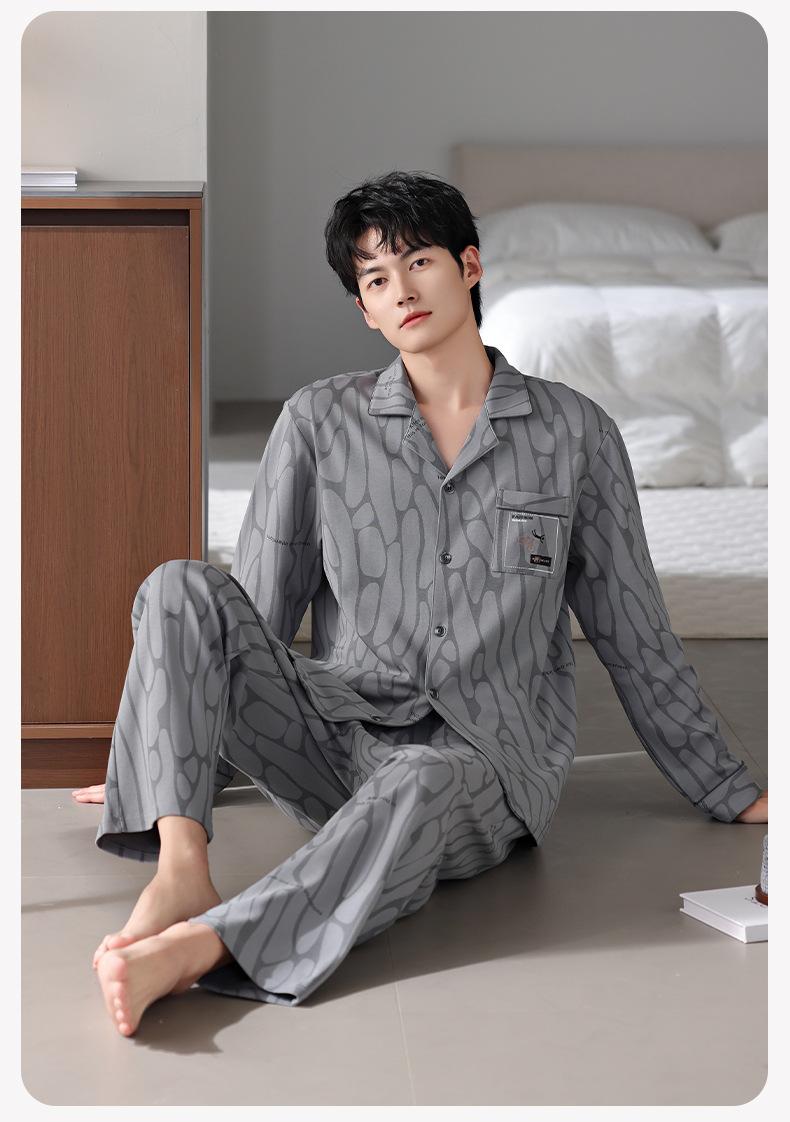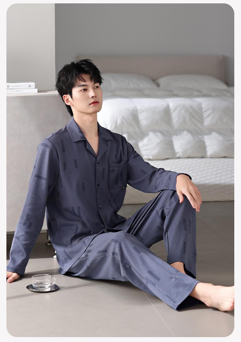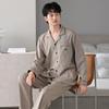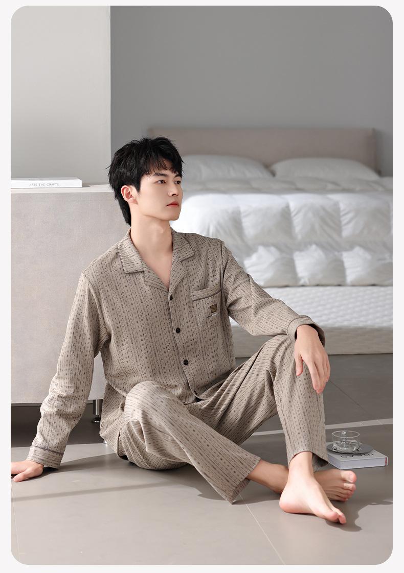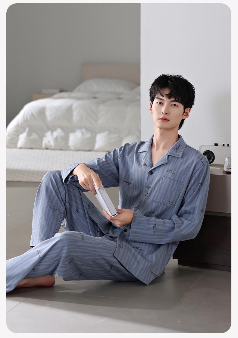 Pijamas para hombre Primavera y Otoño Algodón puro Traje cárdigan de manga larga a rayas Suelto Casual talla grande Ropa para el hogar para papás de mediana edad