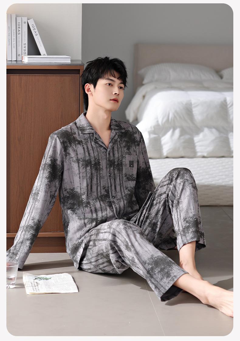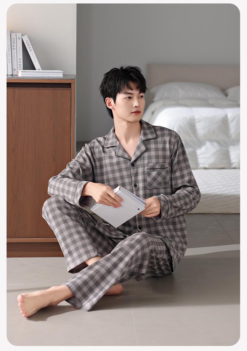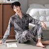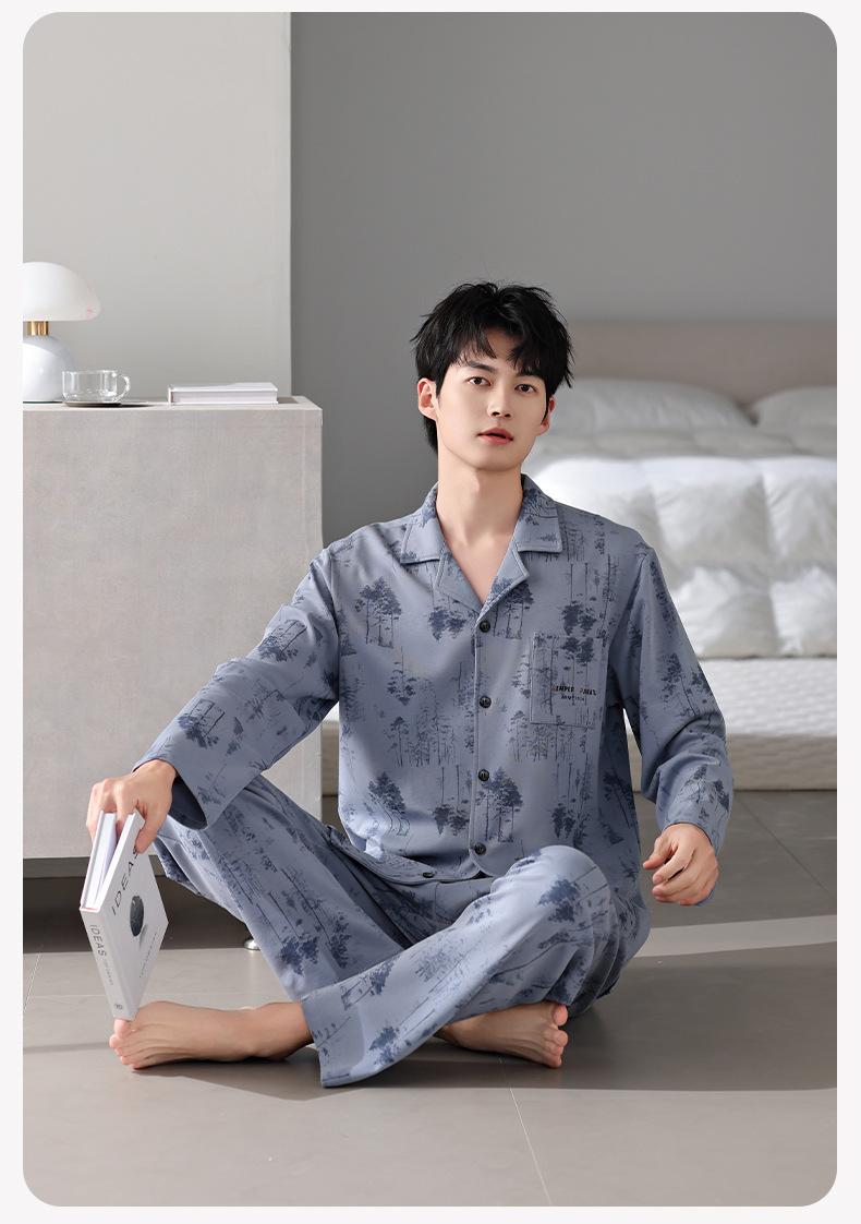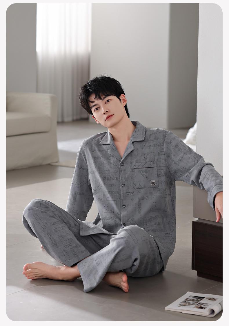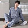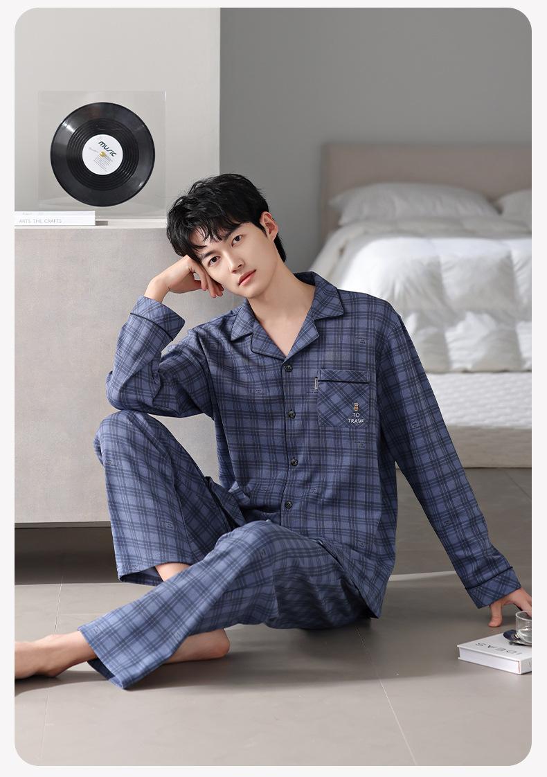 Pijamas para hombre Primavera y Otoño Algodón puro Traje cárdigan de manga larga a rayas Suelto Casual talla grande Ropa para el hogar para papás de mediana edad