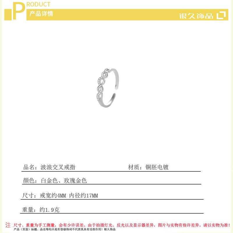 Anillo Cruz Onda Nueva Ins Celebridad de Internet Nicho Versátil Incrustado de Diamantes Zircón Anillo de Dedo Abierto Suministro de Comercio Exterior