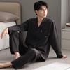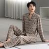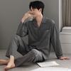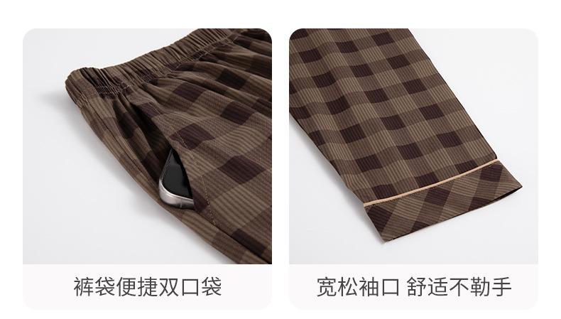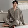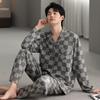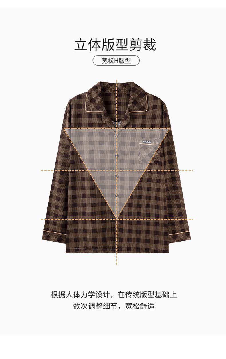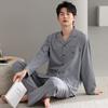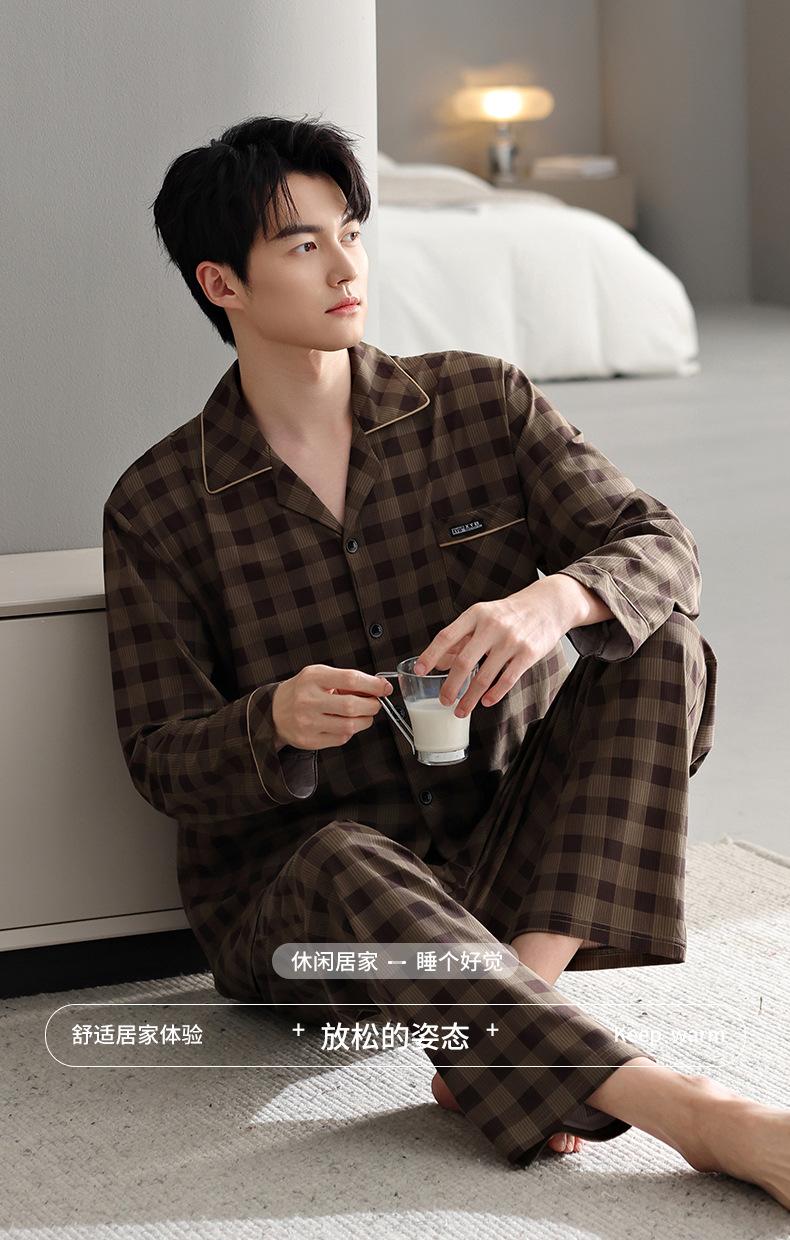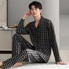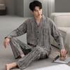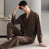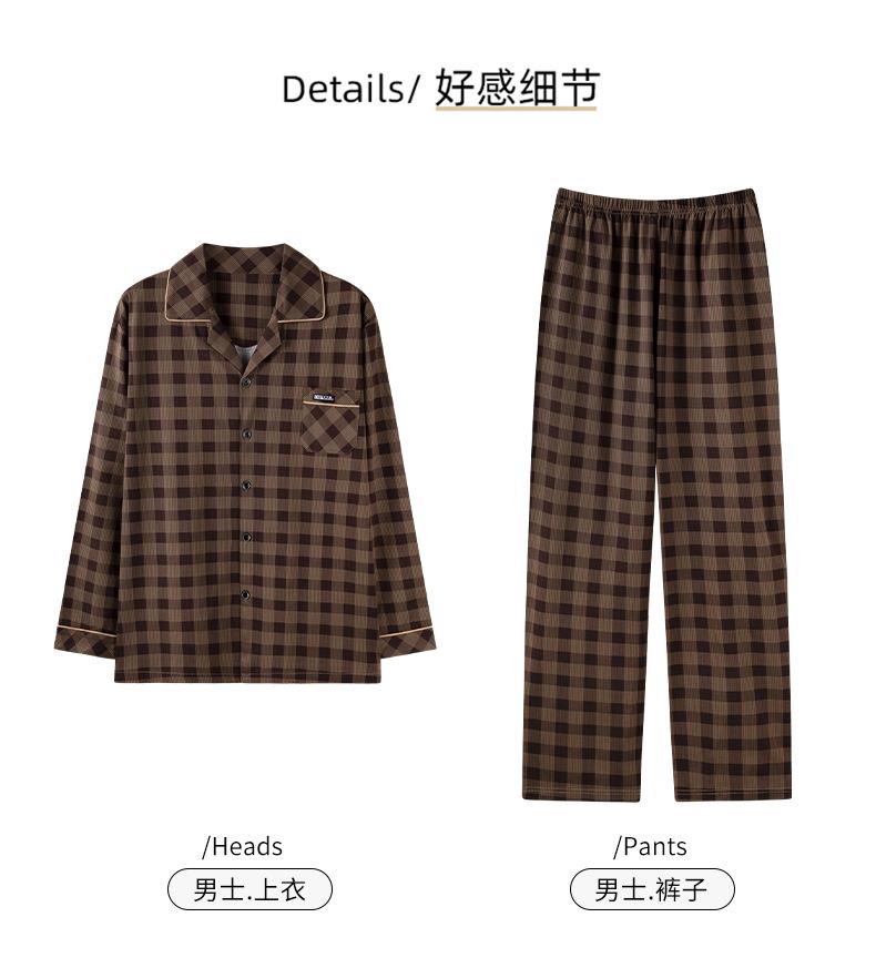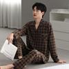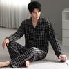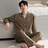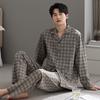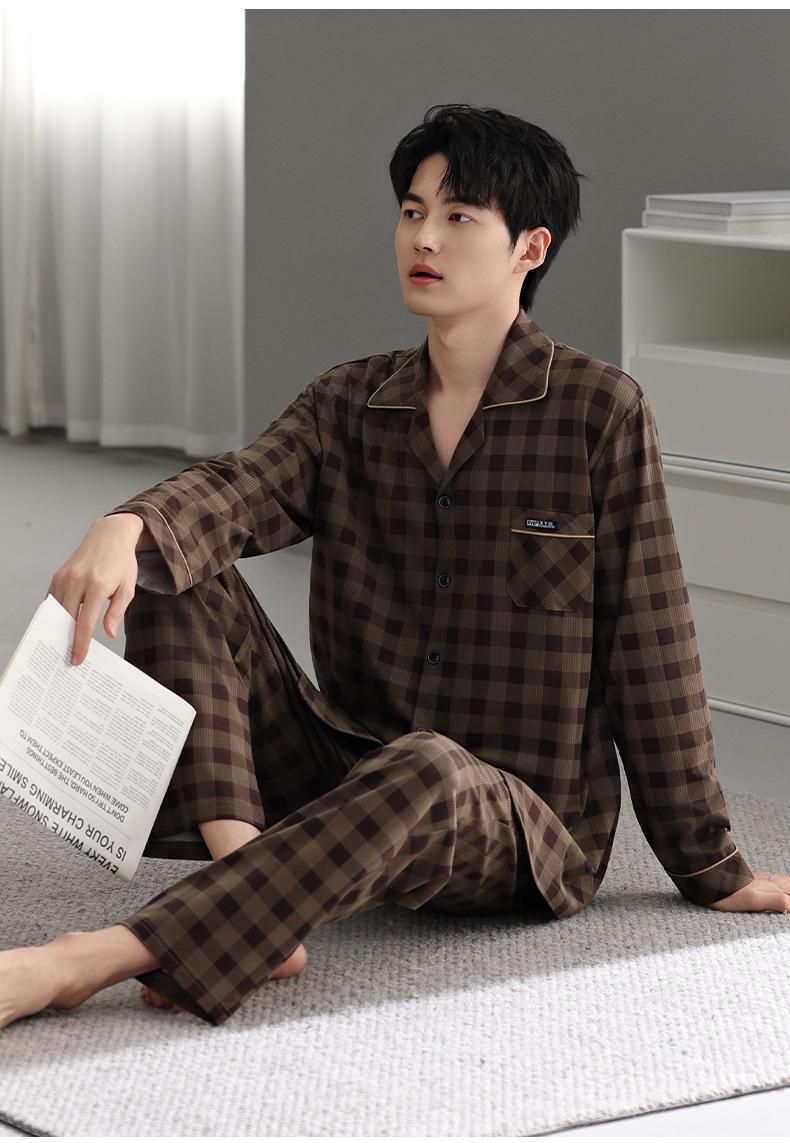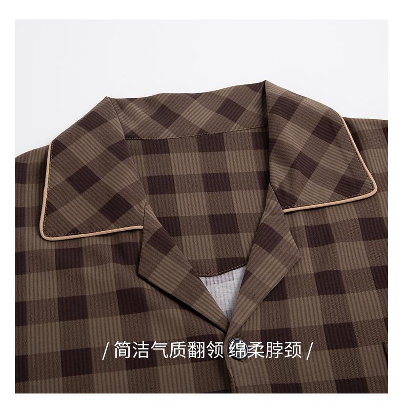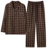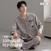 Pijama para Hombre Otoño Algodón Puro Manga Larga Cuadros Set Cárdigan Pijama para Hombre Primavera Otoño Papá de Mediana Edad Ropa de Casa de Alta Gama